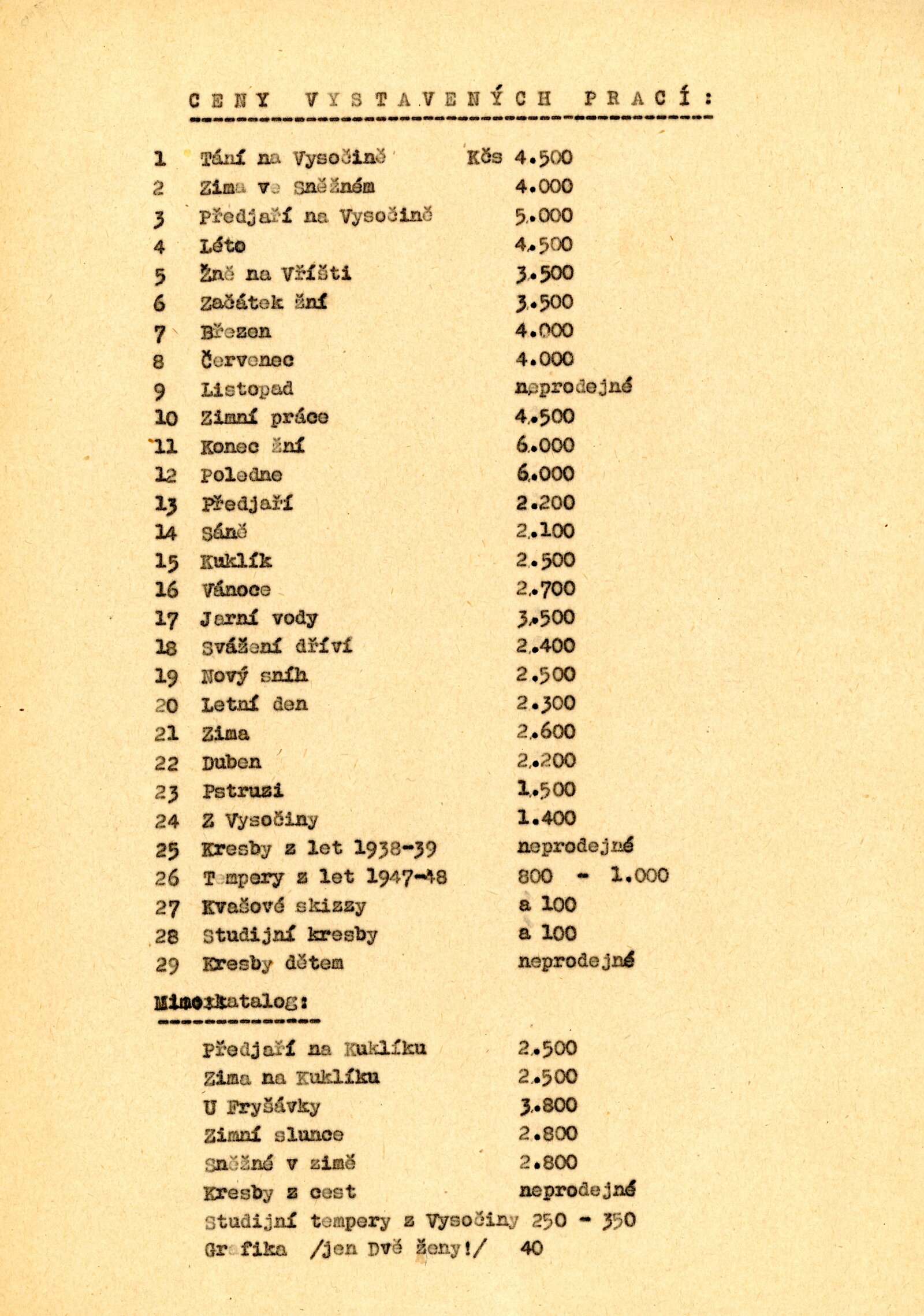 František Emler. Obrazy z Vysočiny: Dům umění v Brně, Síň Jaroslava Krále, 15. 1. – 12. 2. 1956 / Text: Ludvík Kundera. – Brno: Dům umění města Brně, 1956. – 16 s., obr., medailonek umělce, životopis, DU 239. – MZK