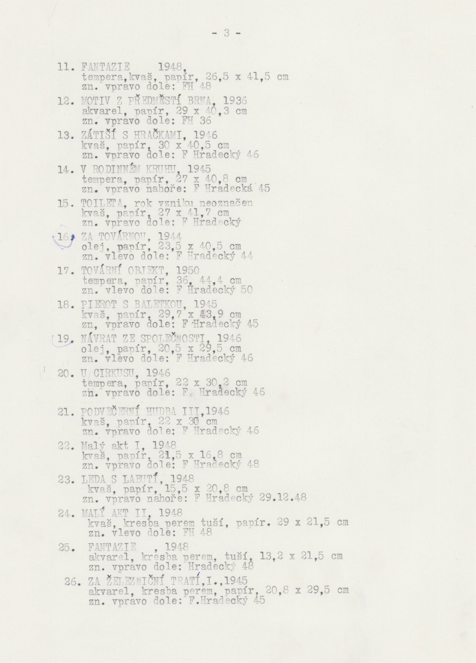 František Hradecký – obrazy, kresby, grafika