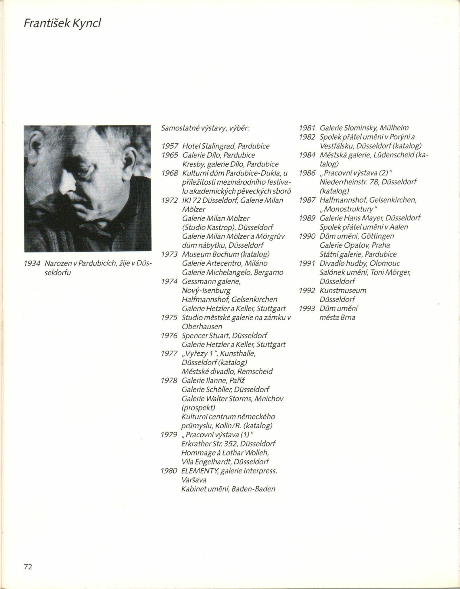 František Kyncl. Monostruktury: ... Dům umění města Brna 13. 4. – 23. 5. 1993 / Text Hans Albers Peters, Karel Moudrý, Stephan von Wiese, Jiří Valoch. - Düsseldorf: Kunstmuseum, - 73 s., obr Portrét, výstavy DU 942; MG