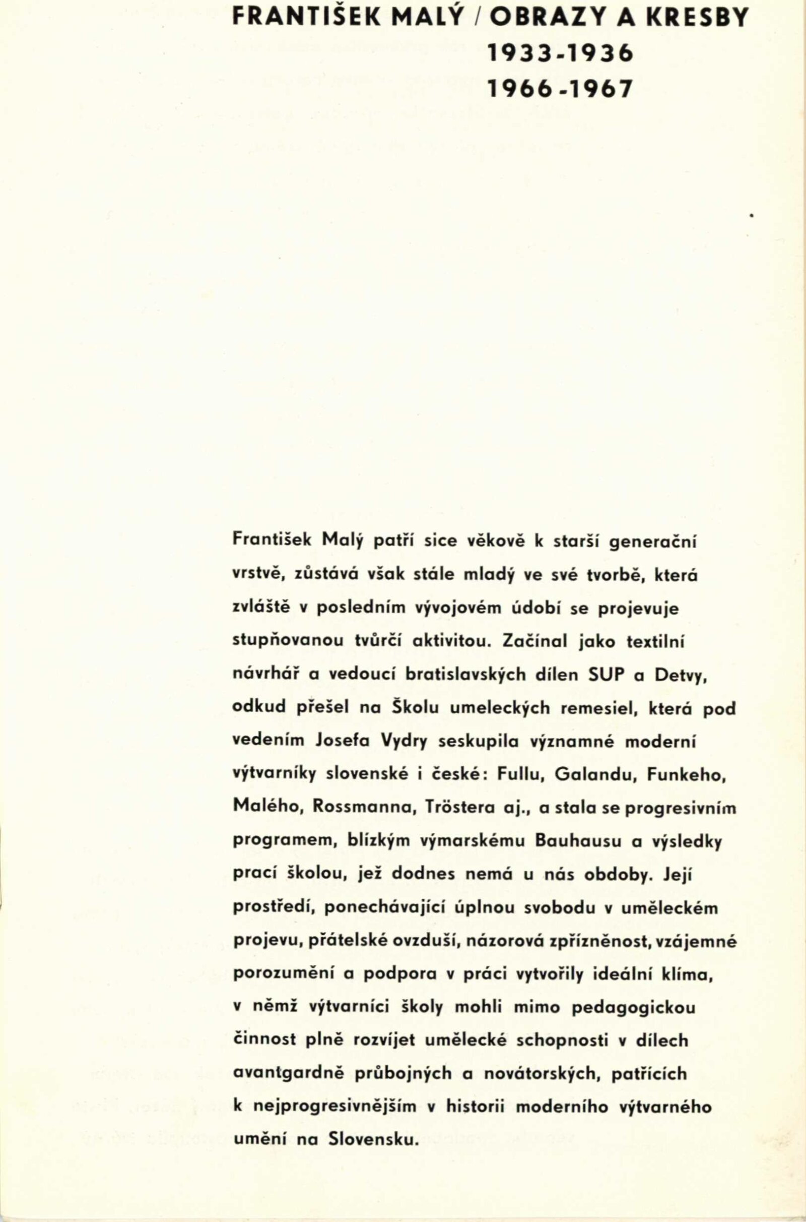 František Malý – obrazy a kresby 1933–1936, 1966–1967