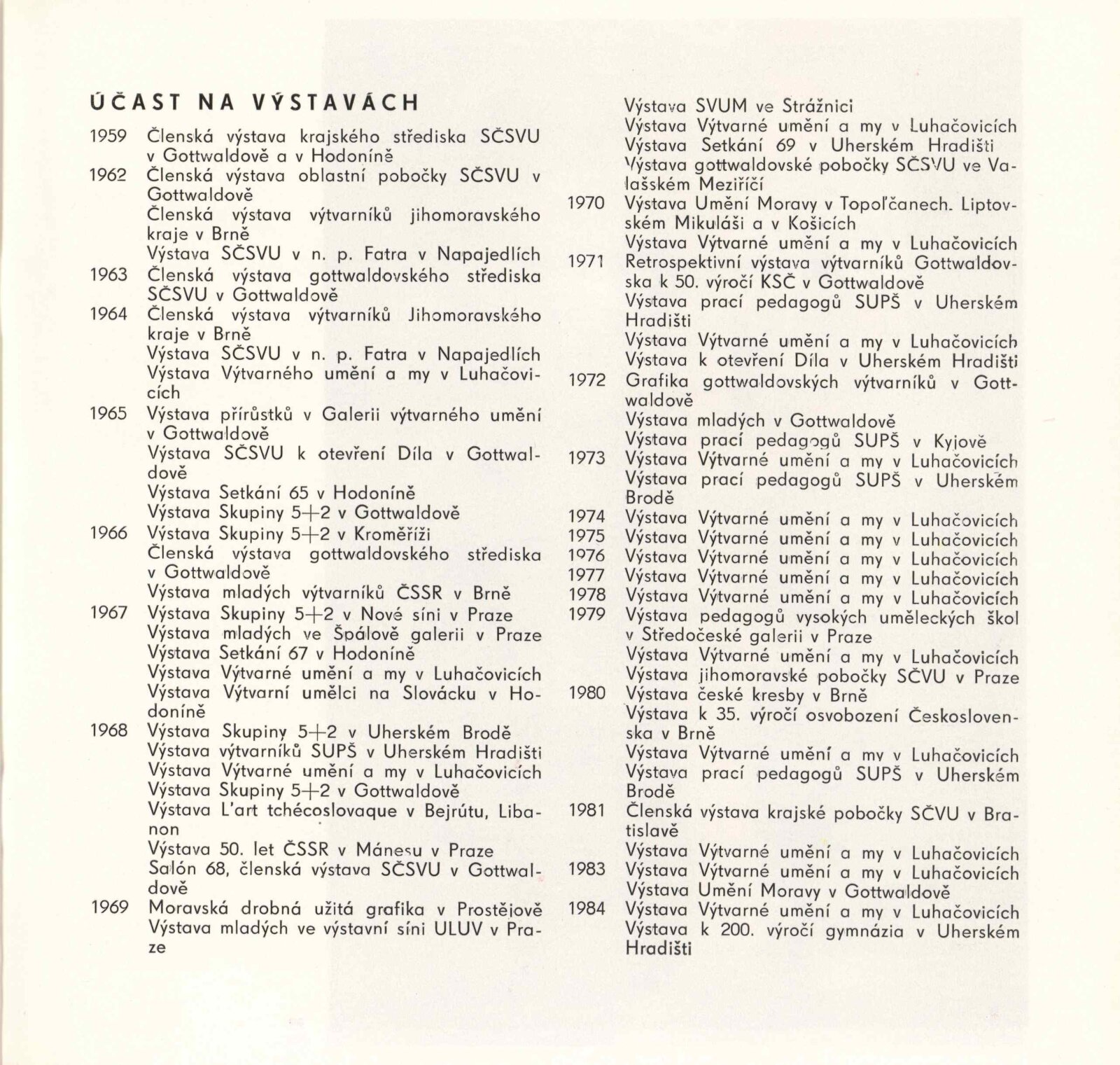 Výstava se konala v Brně a v Hodoníně. Měla společný katalog.