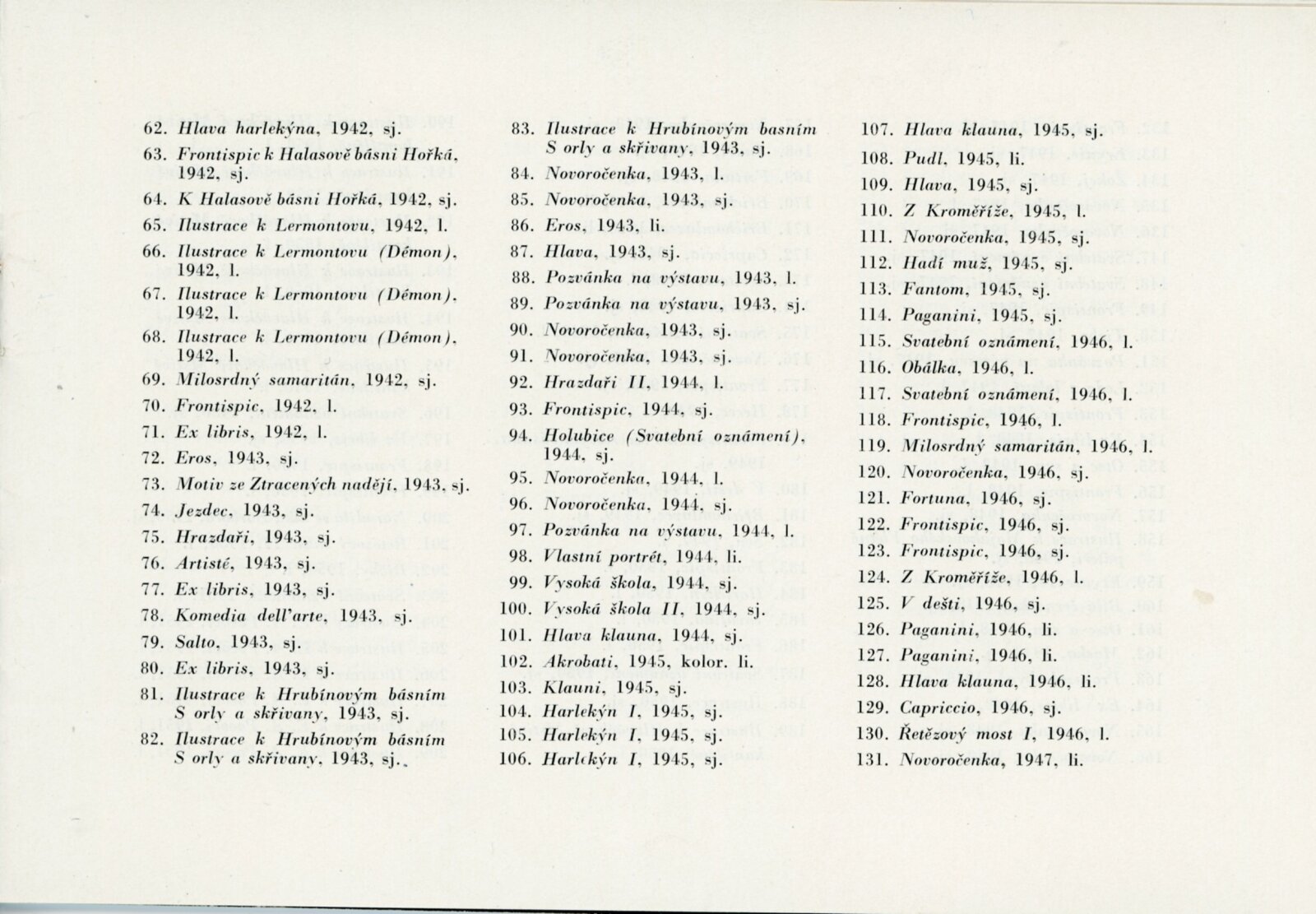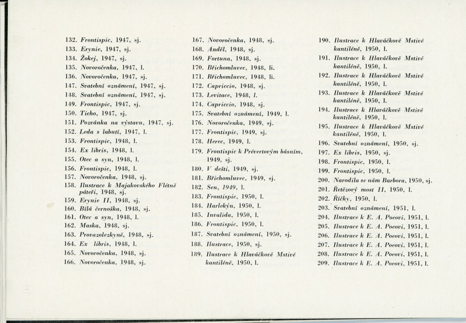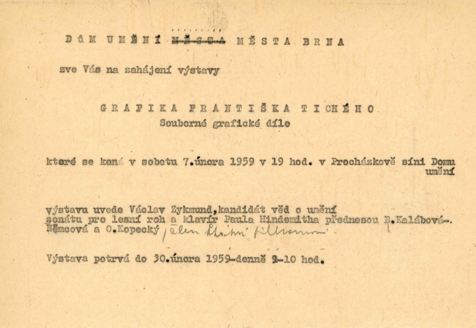 Souborná výstava grafiky Františka Tichého: Dům umění, 7. 2. – 30. 3. 1959 / Text: Václav Zykmund. – Brno: DUmB, 1959. – 17 s., obr., DU 324. – MZK; MG