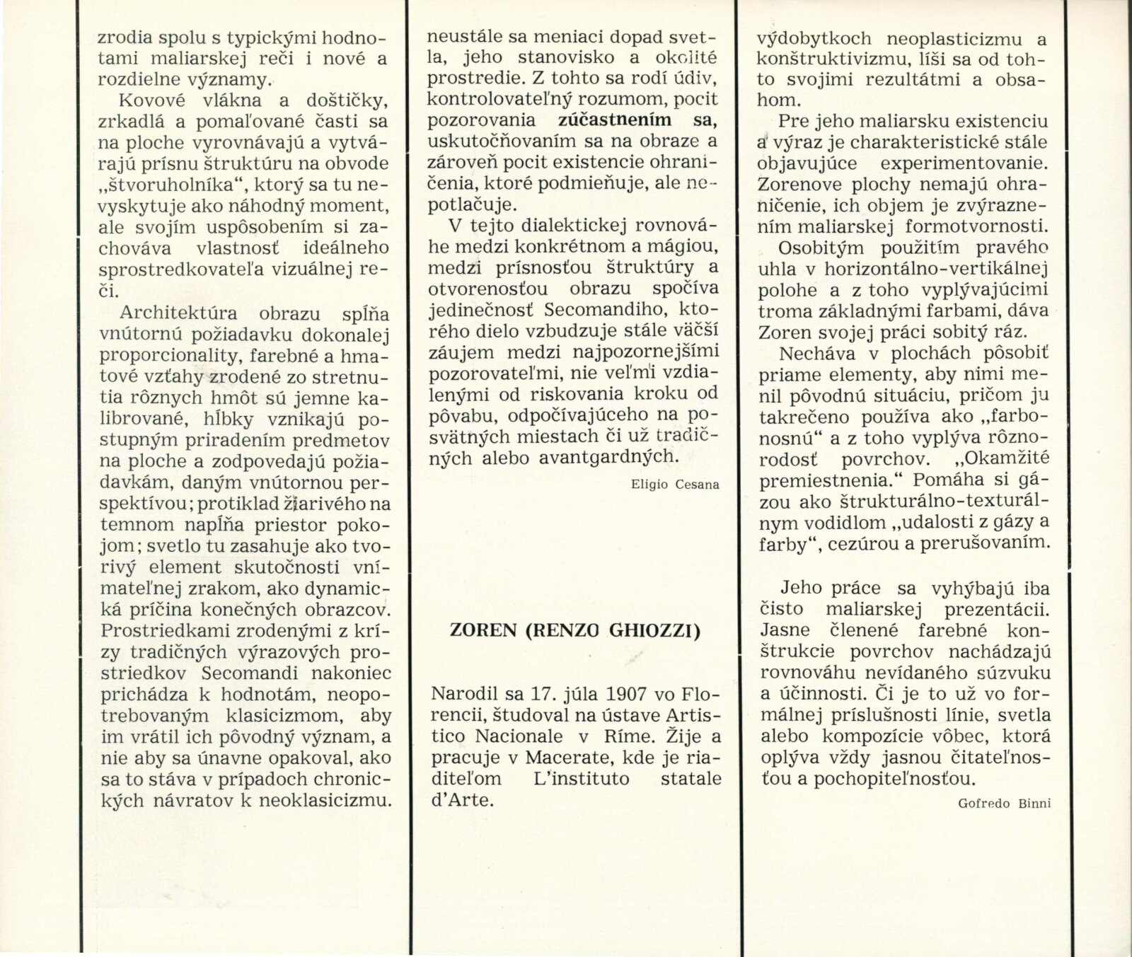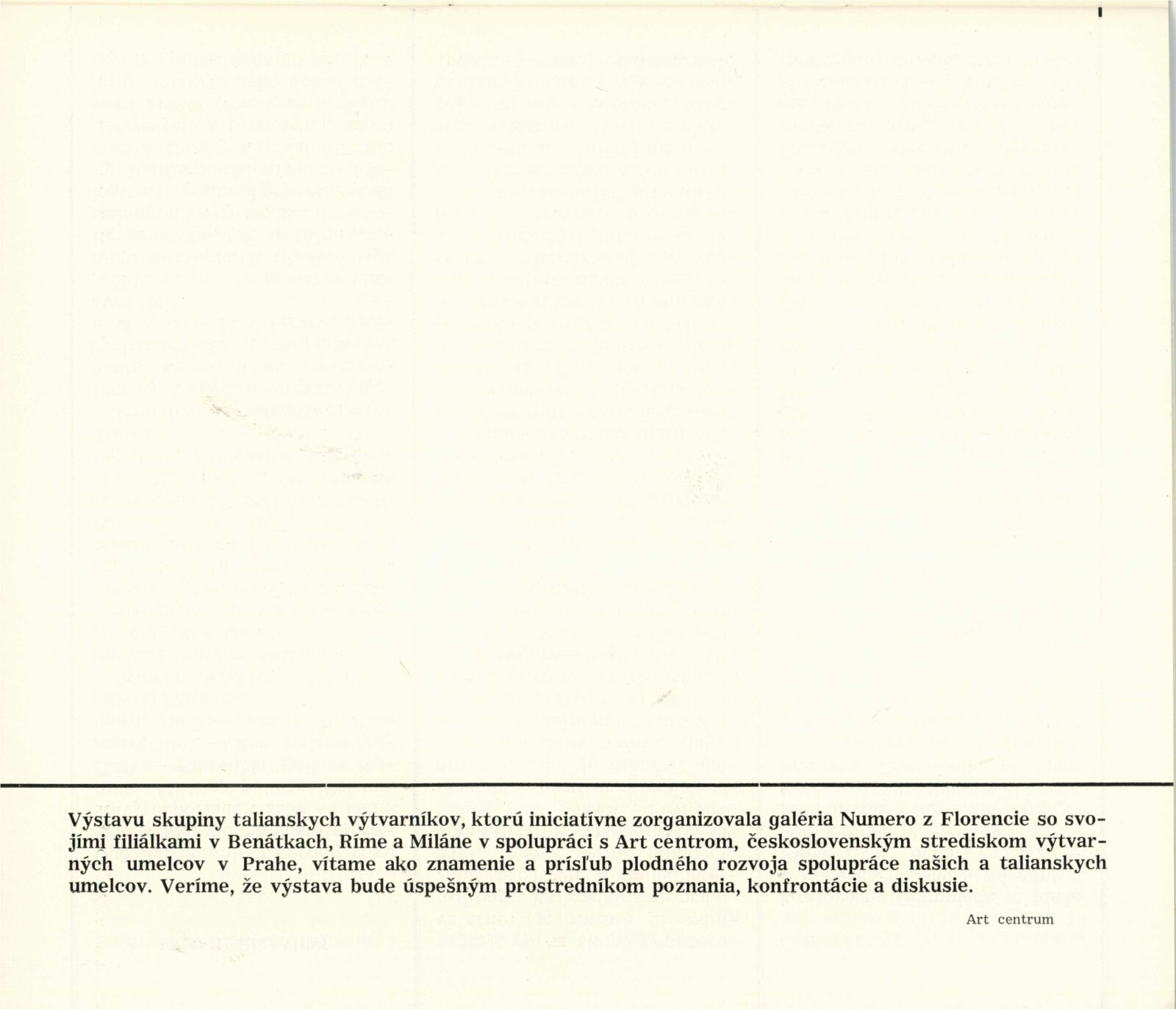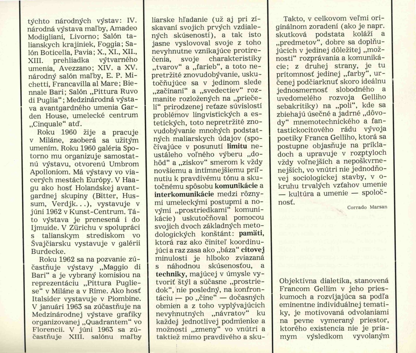 Výstava galérie Numero, Firenze: Dům umění města Brna, hala, 14. 5. – 5. 6. 1966 / Texty: několika italských autorů. – Bratislava: Vydavatelstvo SSVU, 1966. – 22 s., obr., medailony jednotlivých umělců, DU 460. – MZK; MG