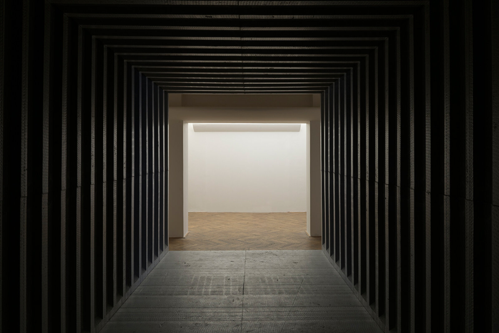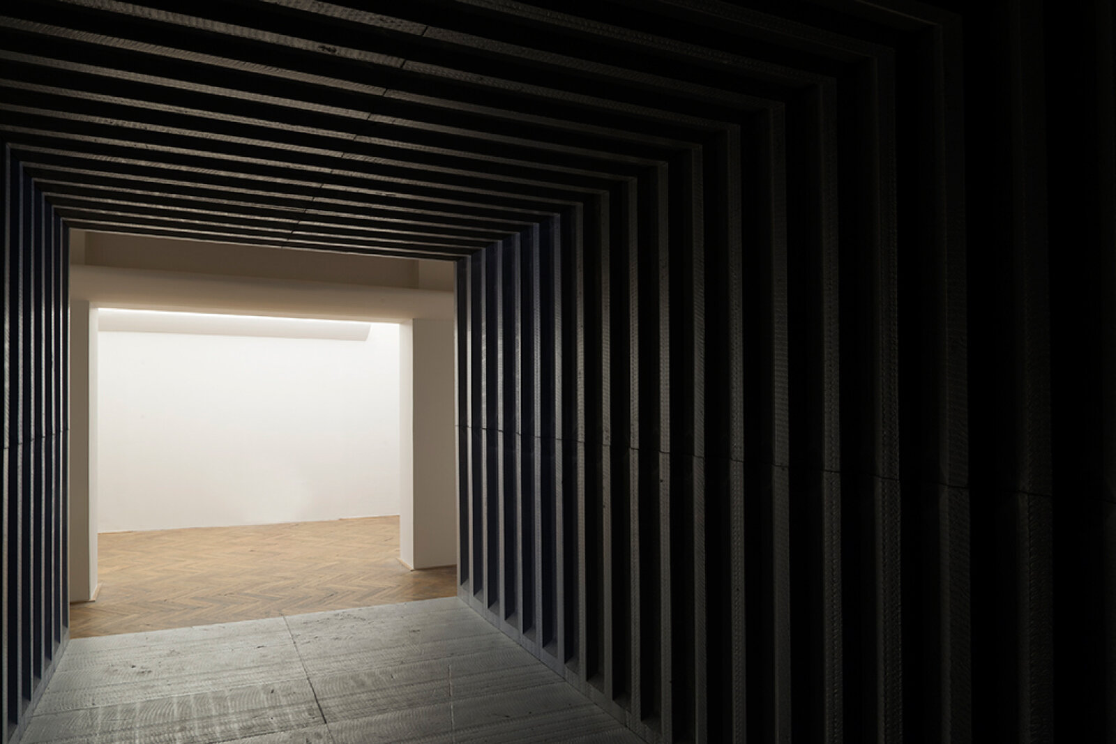V letech 1992–1997 vytvořil Jiří Příhoda několik monumentálních prostorových instalací, které postupně ztrácely charakter sochařských objektů (23. říjen 1993, 1993–1994) a stávaly se z nich emocionálně působivá prostředí inspirovaná filmem či možnostmi modelovat lidské vnímání (Záběr/klapka 02, Potopa, 1995–1996, Světlo na konci tunelu 1996–1997). Samostatnou kapitolu Příhodovy tvorby představují místně specifické instalace, ve kterých reaguje na daný architektonický prostor a využívá jeho nejrůznější vlastnosti. V instalaci 3274,8 metrů krychlových proti sobě postavil exteriér a interiér Libeňské synagogy. Spolu s Brianem Enem vytvořil v roce 1998 zvukově-prostorovou instalaci Music for Prague v pražské Nové síni, která divákům nabídla lákavý, ale zároveň nedosažitelný prostor uprostřed výstavního sálu. Ve stejném roce přemodeloval interiér Galerie Václava Špály podle předem zvolených redukcí jejího půdorysu a vytvořil tak v Čechách ojedinělou konceptuální architekturu.