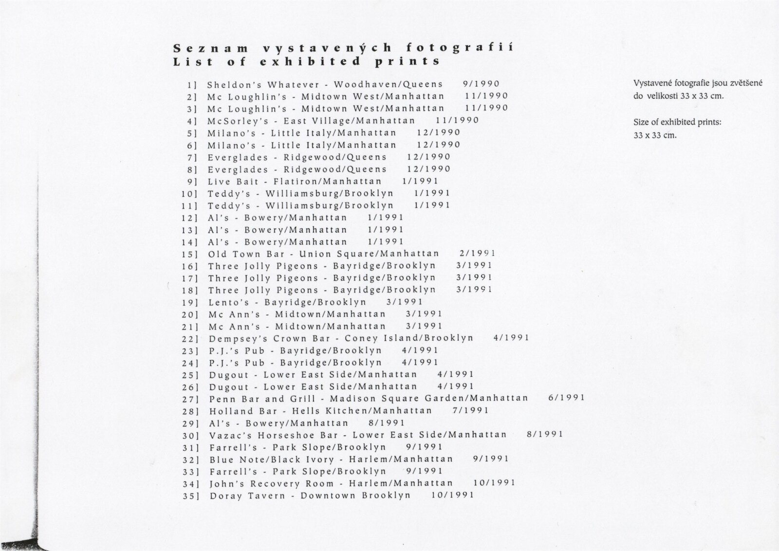 George Jiří Erml. New York. Sebrané bary (1990–1994)