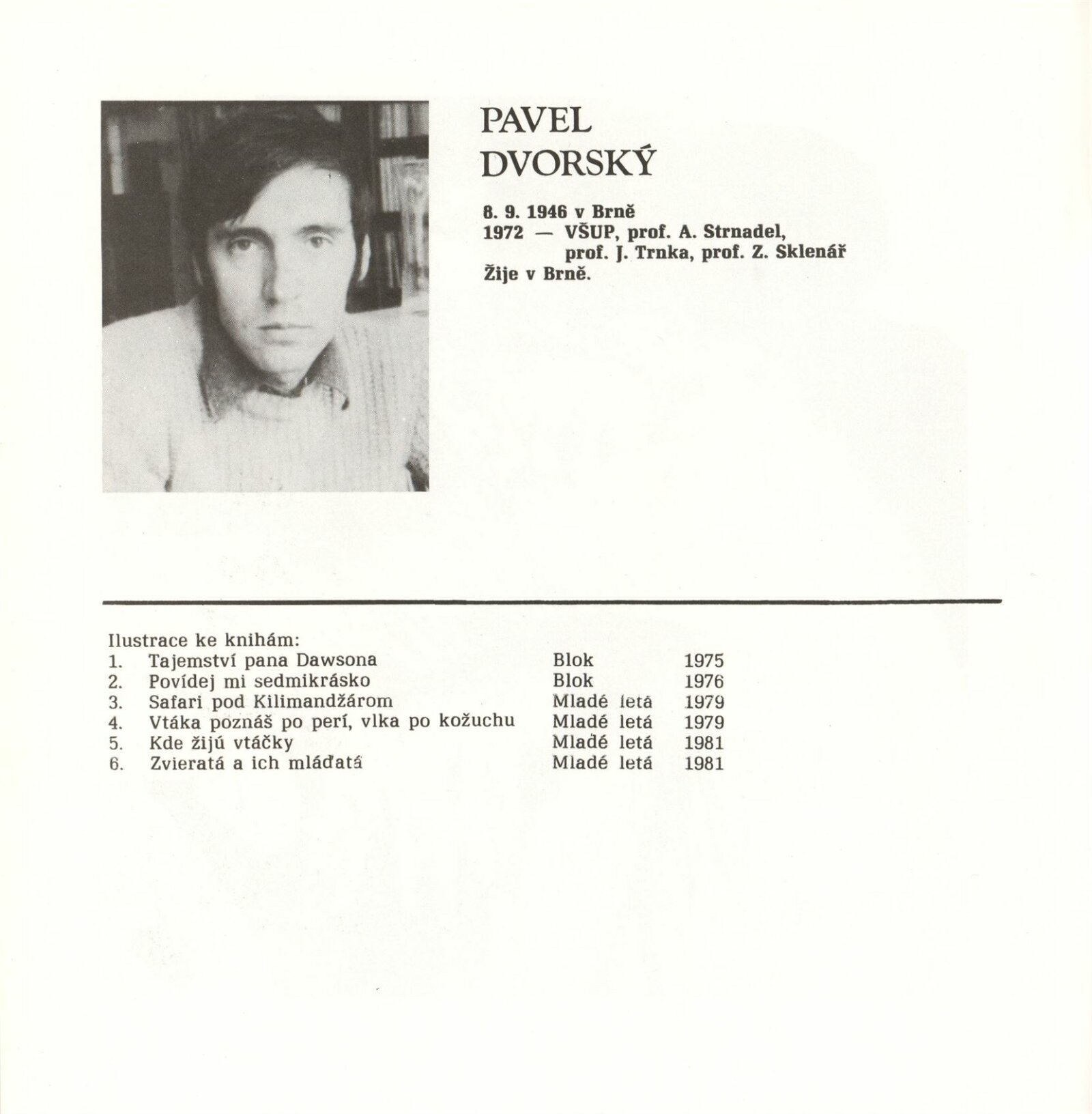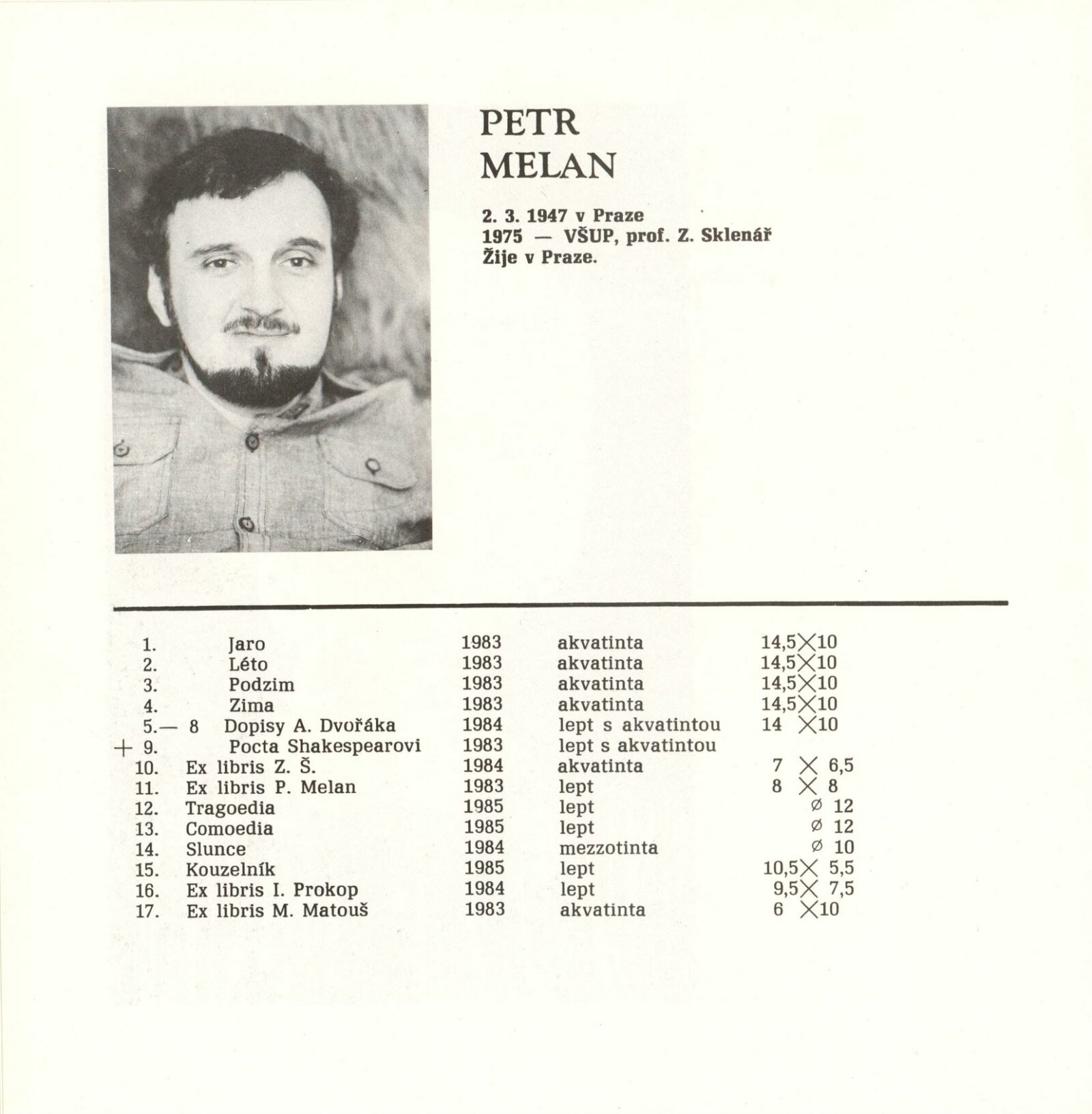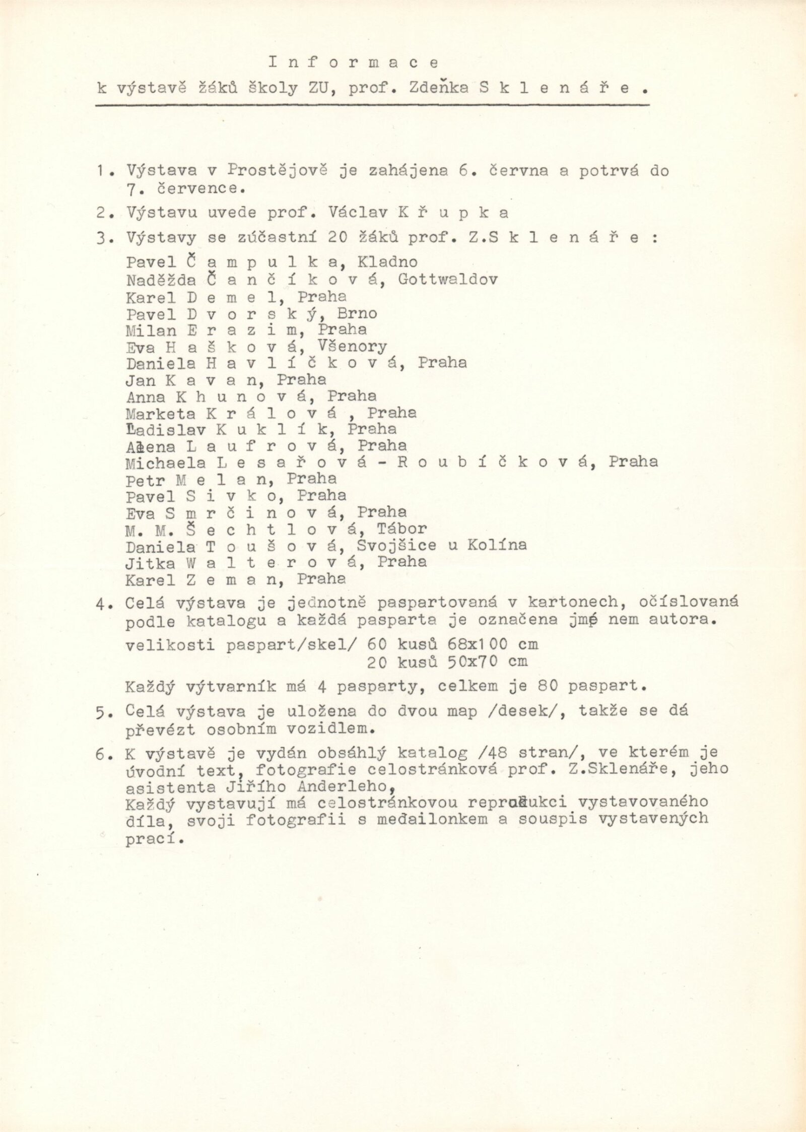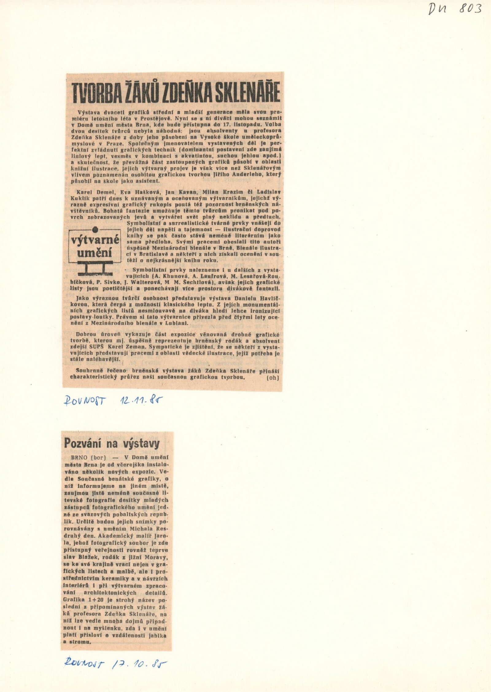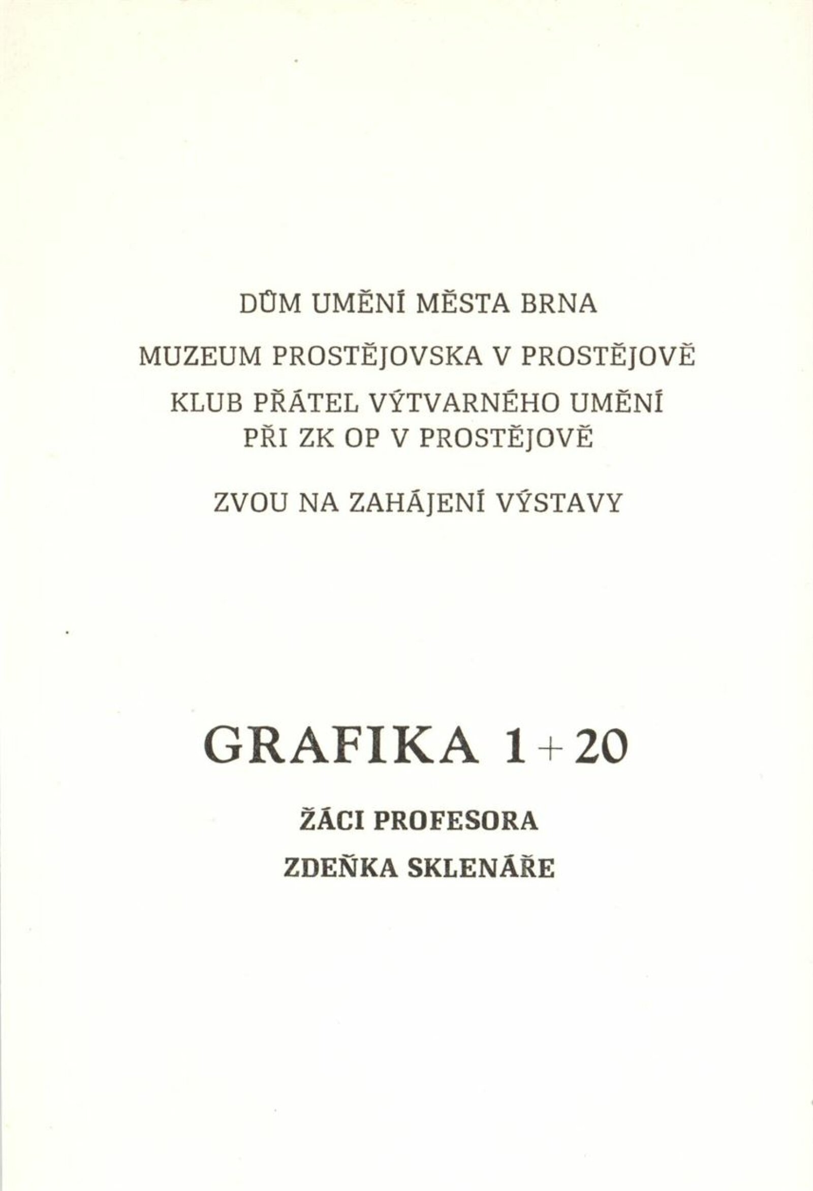 Grafika 1 + 20. Žáci prof. Zdeňka Sklenáře: Dům umění města Brna, 1. patro, 15. 10. – 17. 11. 1985 / Text: Václav Křupka. – Prostějov: Muzeum Prostějovska, 1985. – 4 s., obr., portréty, životní data, DU 803