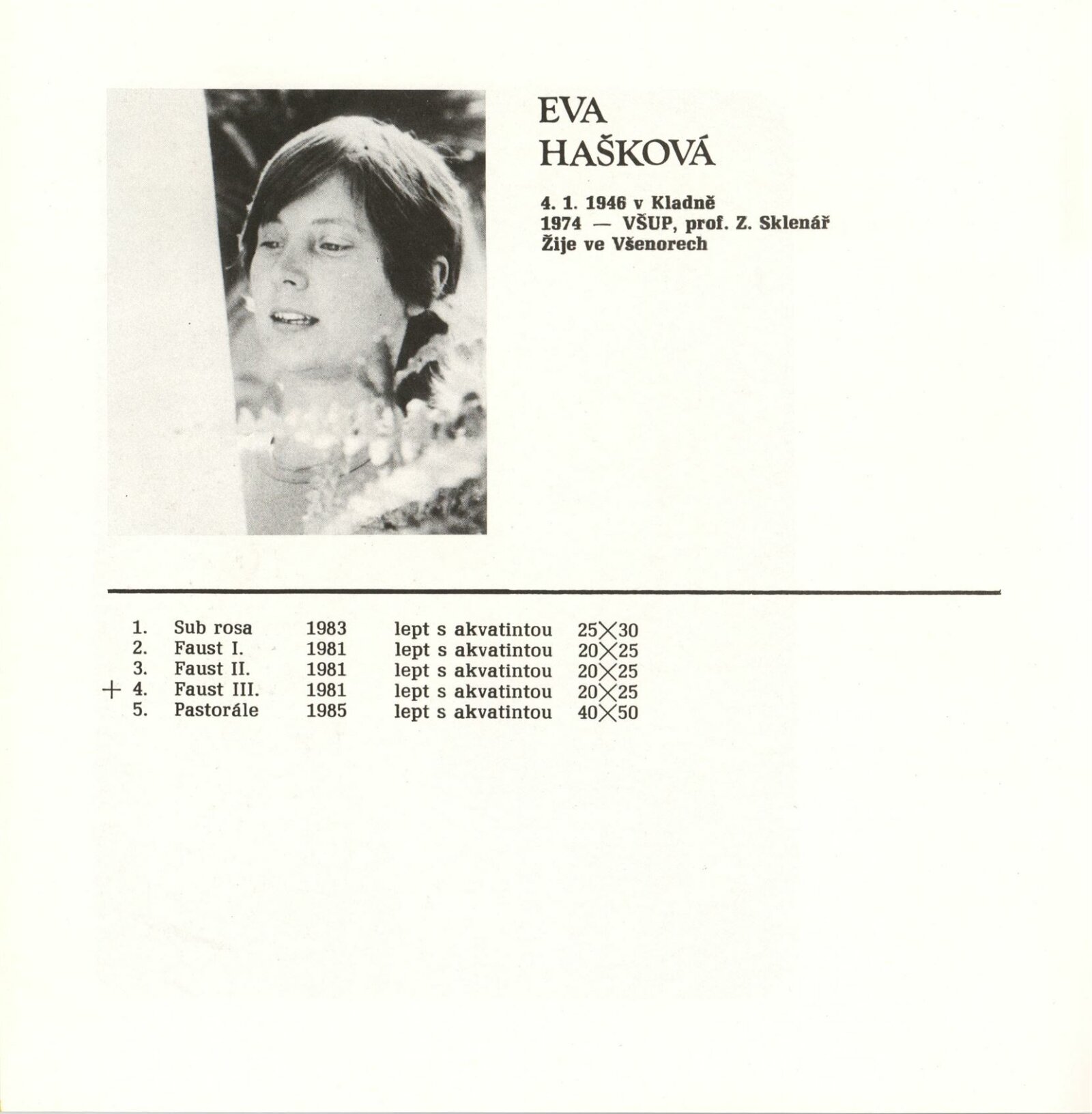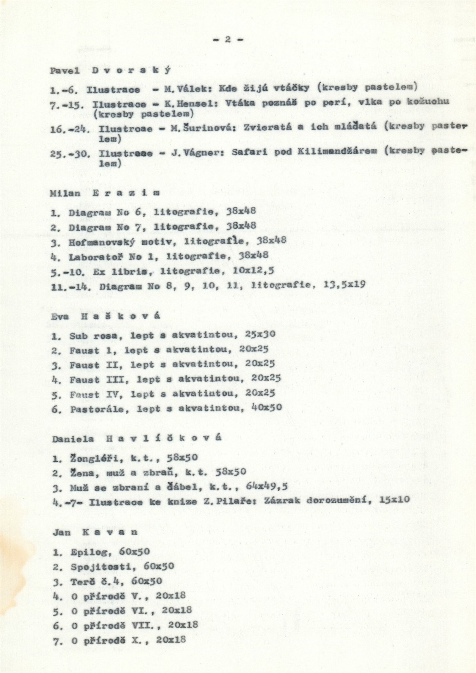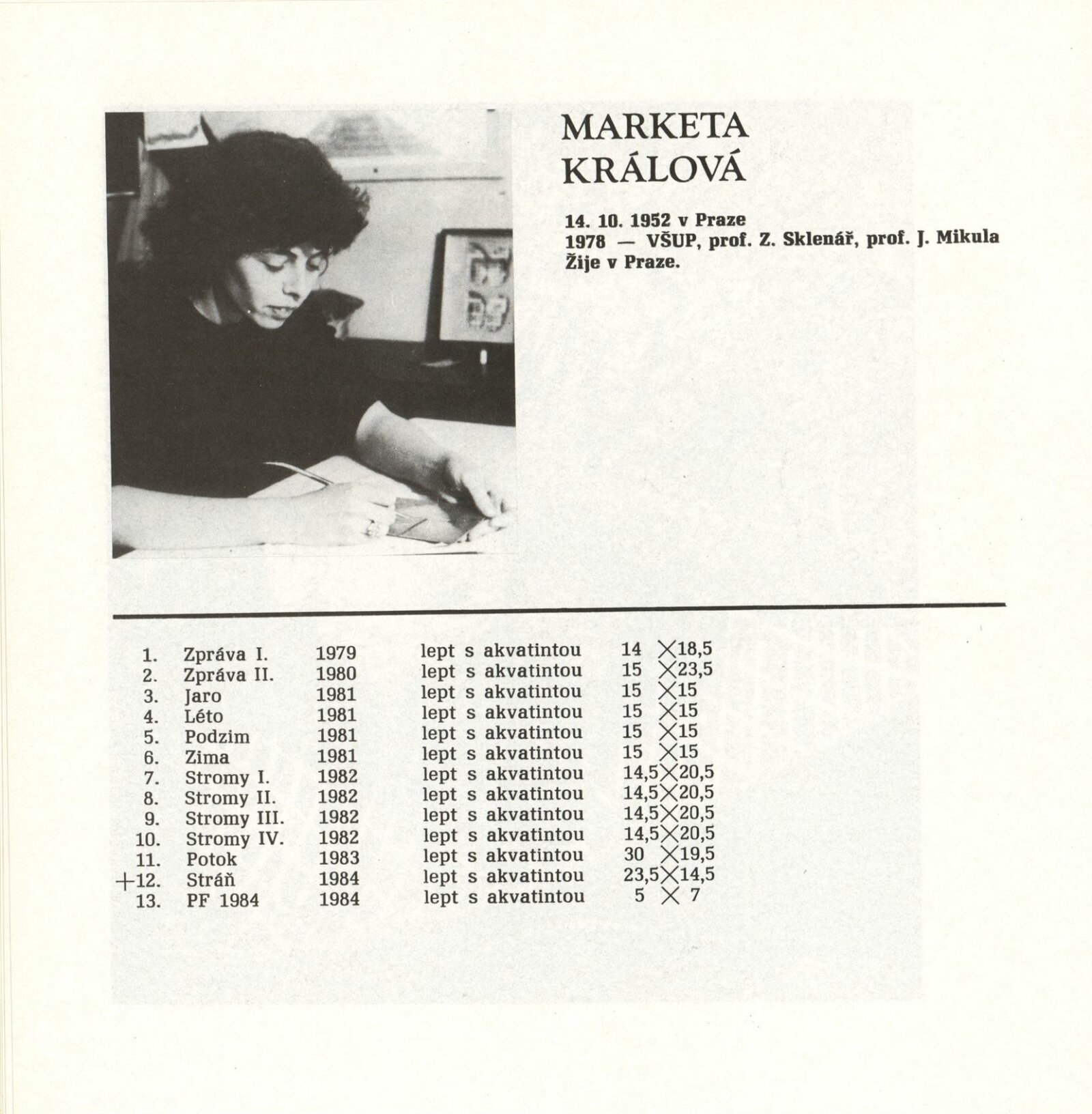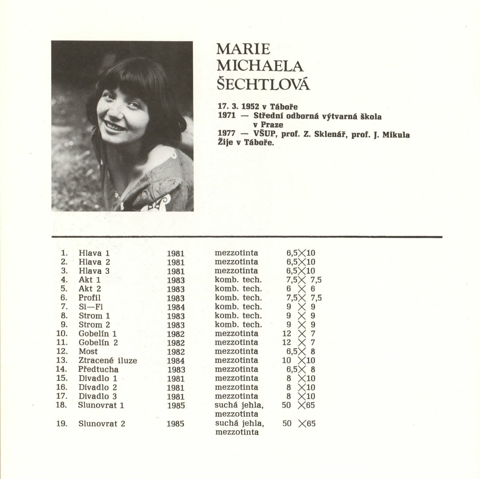 pozvánka, strojopis, katalog, informace o přípravě výstavy, seznam vystavených děl, provozní korespondence, žádost o povolení výstavy, recenze v tisku, pozvánka na výstavu Grafika 1 + 20 (Prostějov, 1985)