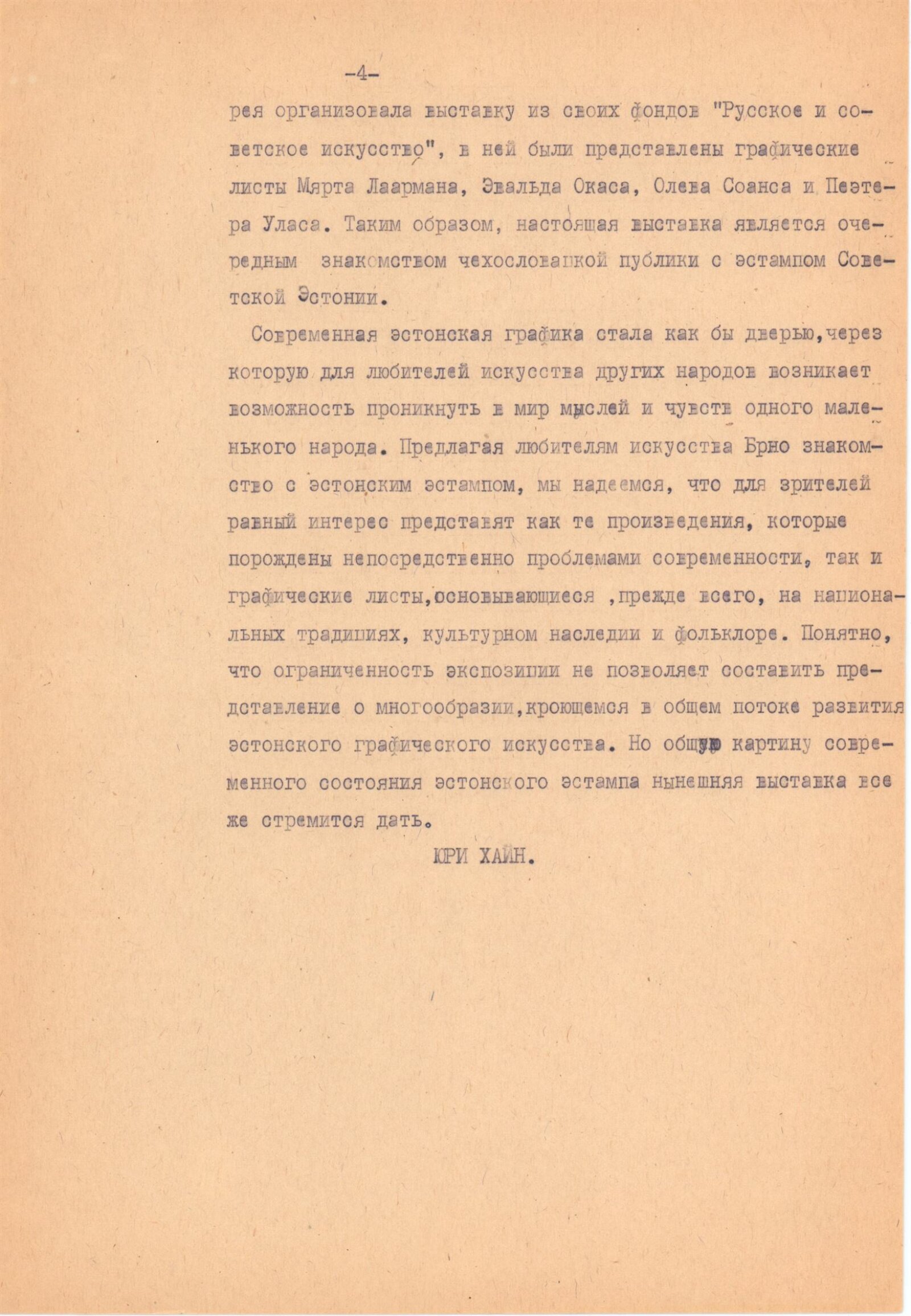 pozvánka, katalog, strojopisy pozvánky a katalogu v ruském a českém jazyce, fotografie ke katalogu, provozní korespondence, pozvání členů SVU Estonské SSR, žádost o schválení tisku katalogu, žádost o povolení výstavy, provozní korespondence s uměleckými institucemi v Estonsku, recenze v tisku
