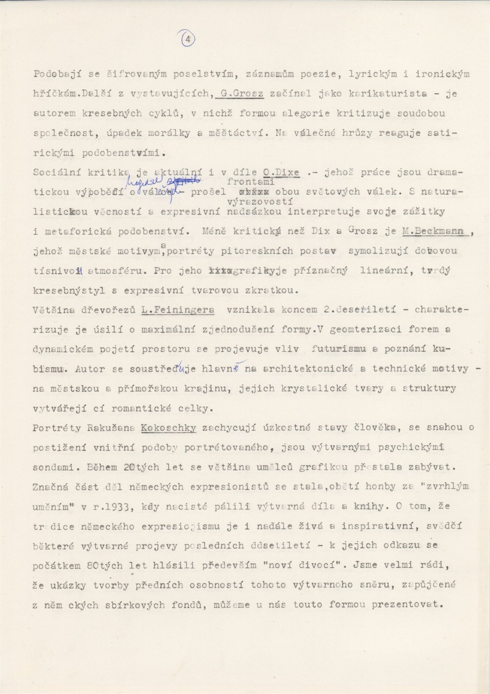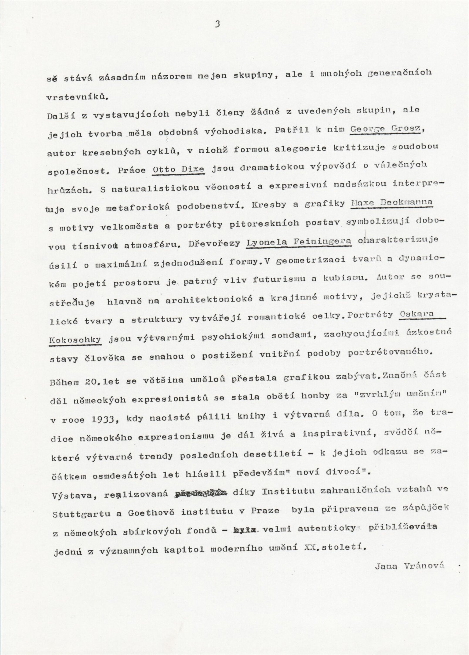 pozvánka, katalog, katalogy stejnojmenné výstavy (vydala IFA, České muzeum výtvarného umění), tisková zpráva, texty k výstavě (J. Vránová), korespondence, verbální nóta Ministerstva zahraničních věcí odeslaná Velvyslanectví Spolkové republiky Německo, smlouvy k výstavě, popisky (jména umělců), infomace o výstavě - IFA, recenze v tisku, poznámky