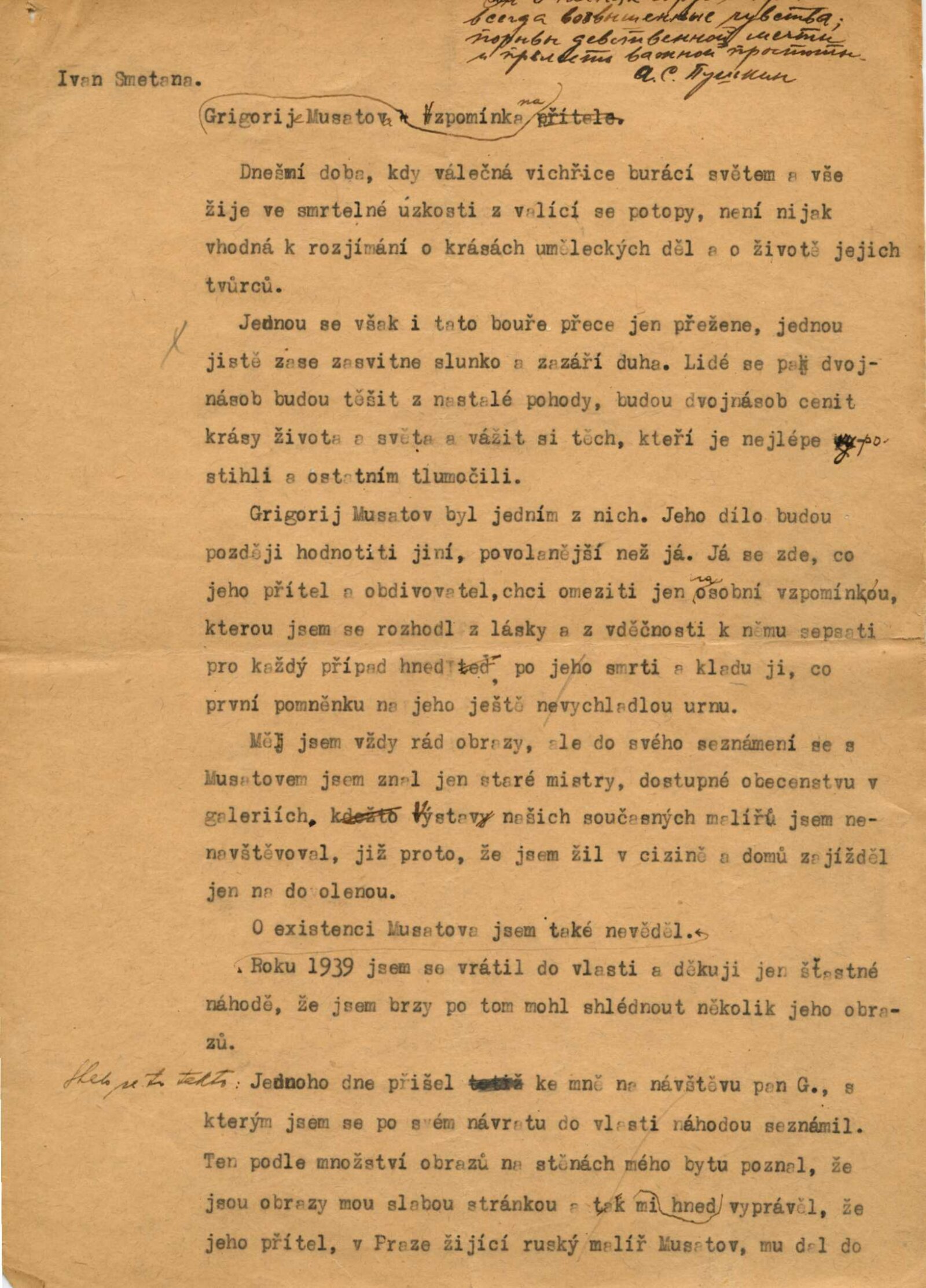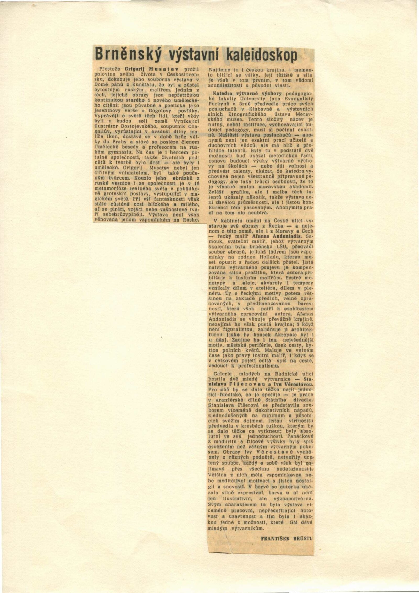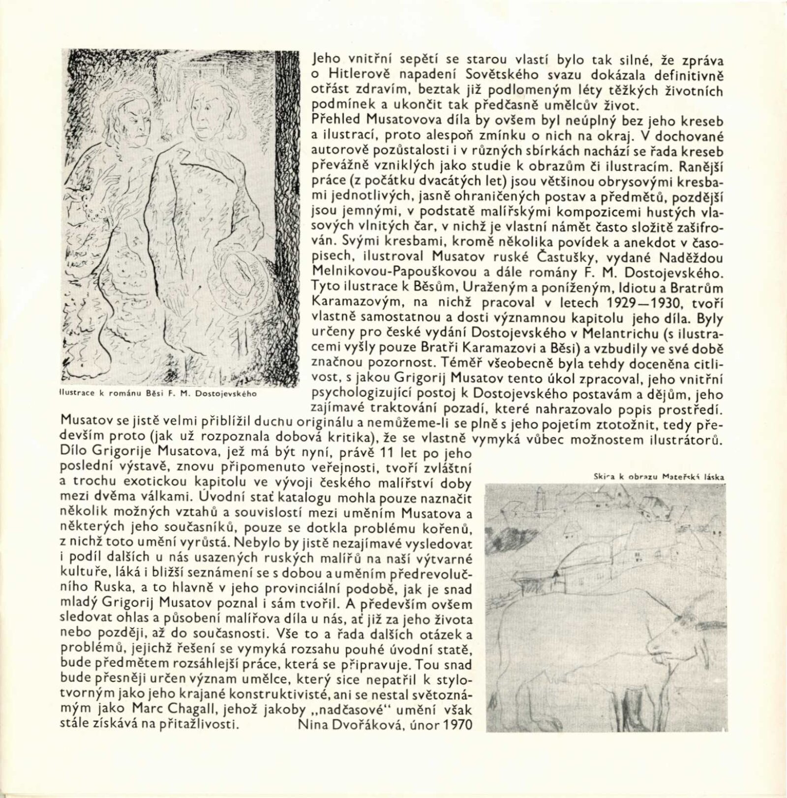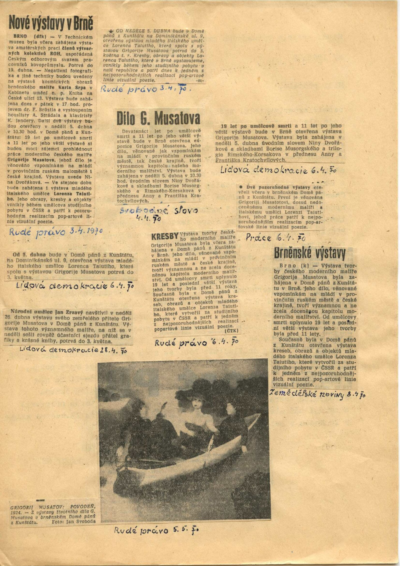 Grigorij Musatov: Dům umění města Brna / Dům pánů z Kunštátu, 5. 4. – 3. 5. 1970 / Text: Nina Dvořáková. – Brno: DUmB, 1970. – 18 s., obr., životní data, DPK 439. – MZK; MG; MMB