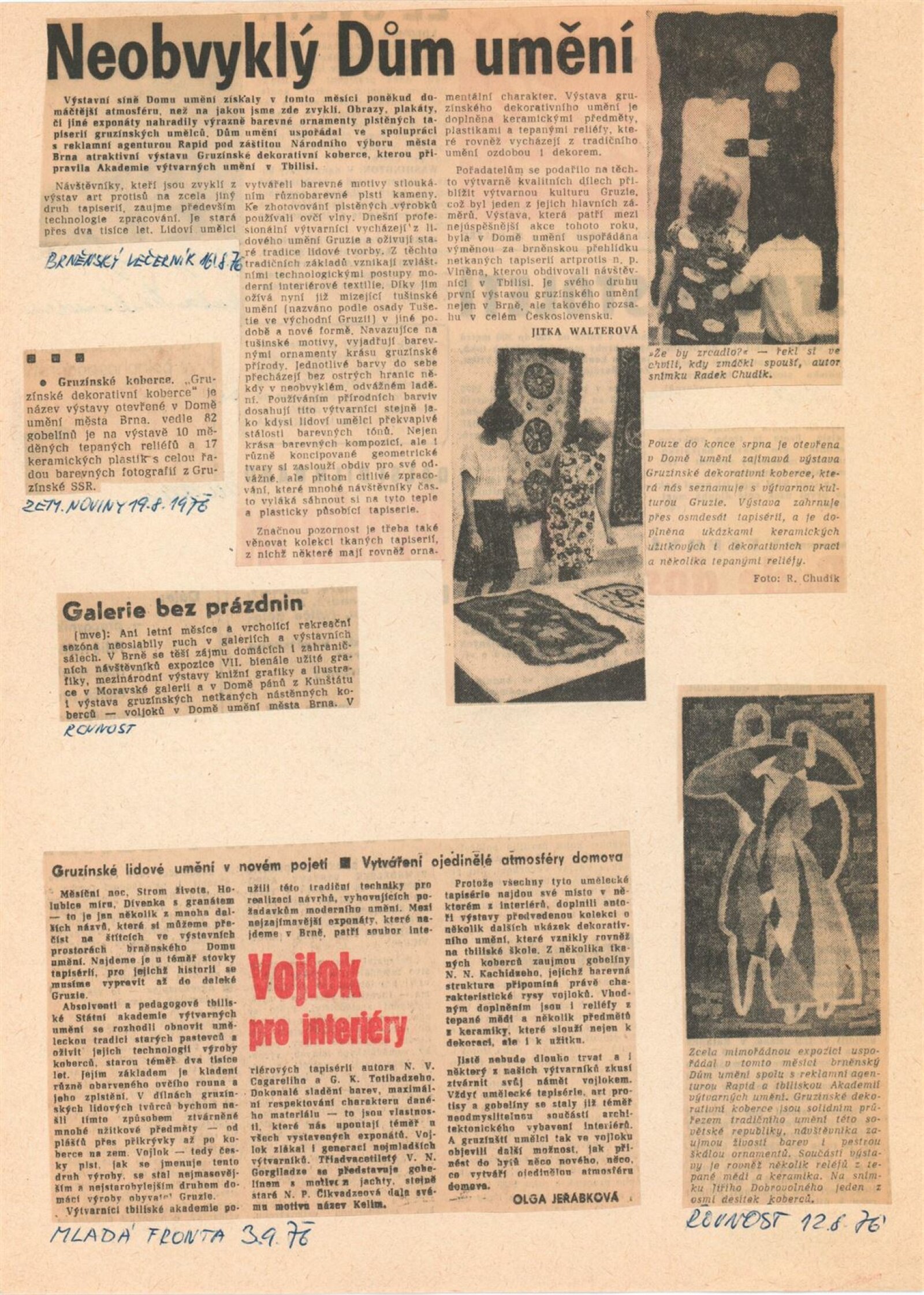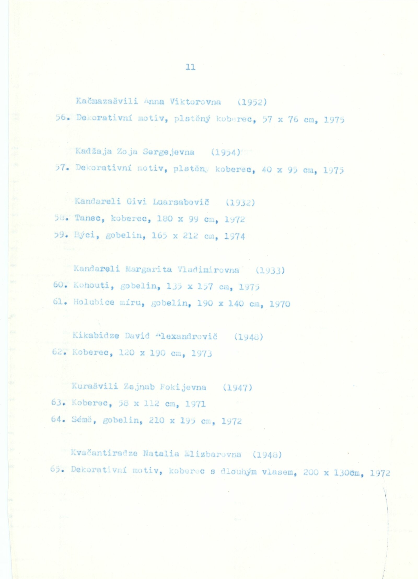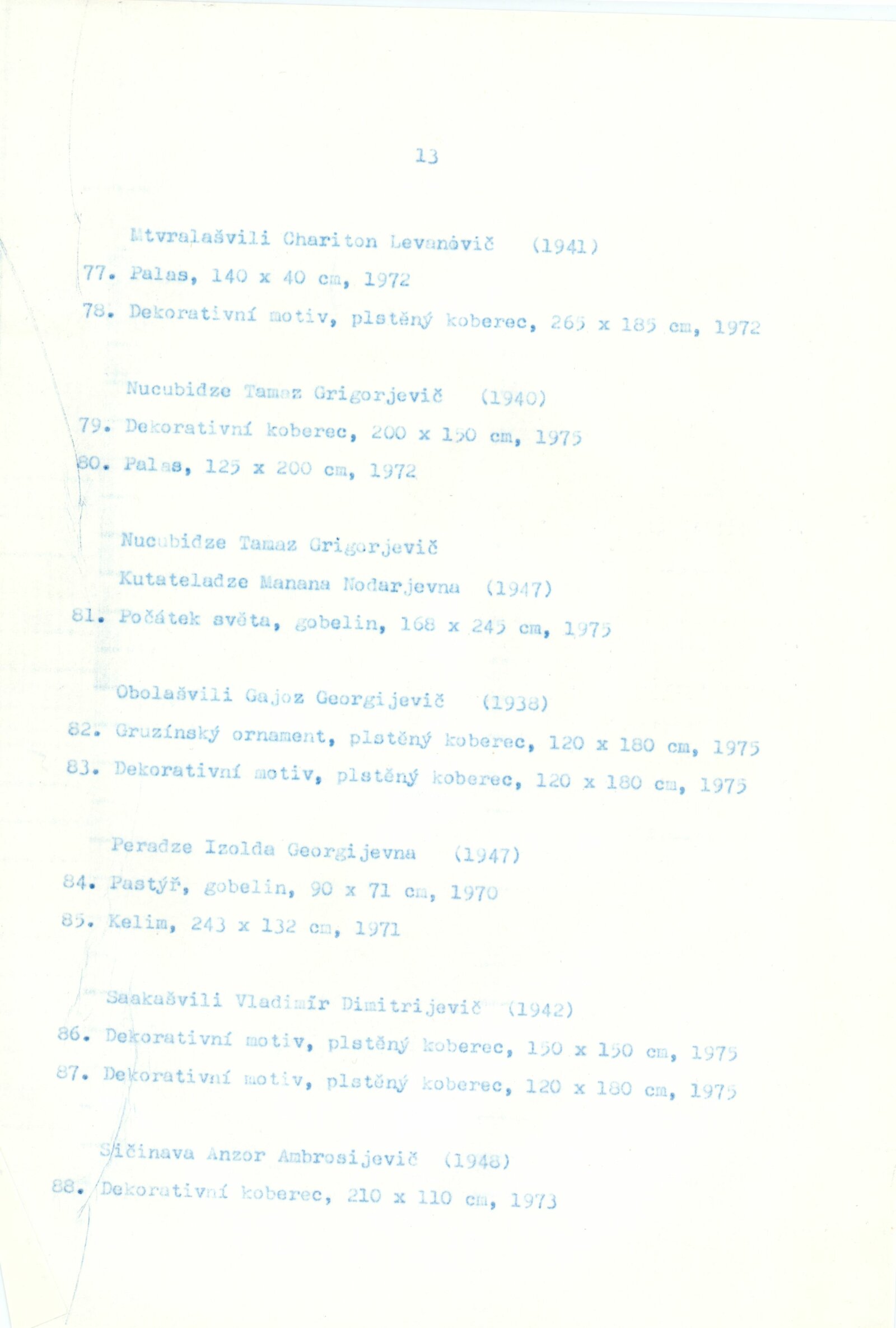 Gruzínské dekorativní koberce: Dům umění města Brna, 30. 7. – 29. 8. 1976 / Text: Tbiliská akademie výtvarných umění. – Brno: DUmB, 1976. – 16 s., obr., DU 643. – MZK; MG