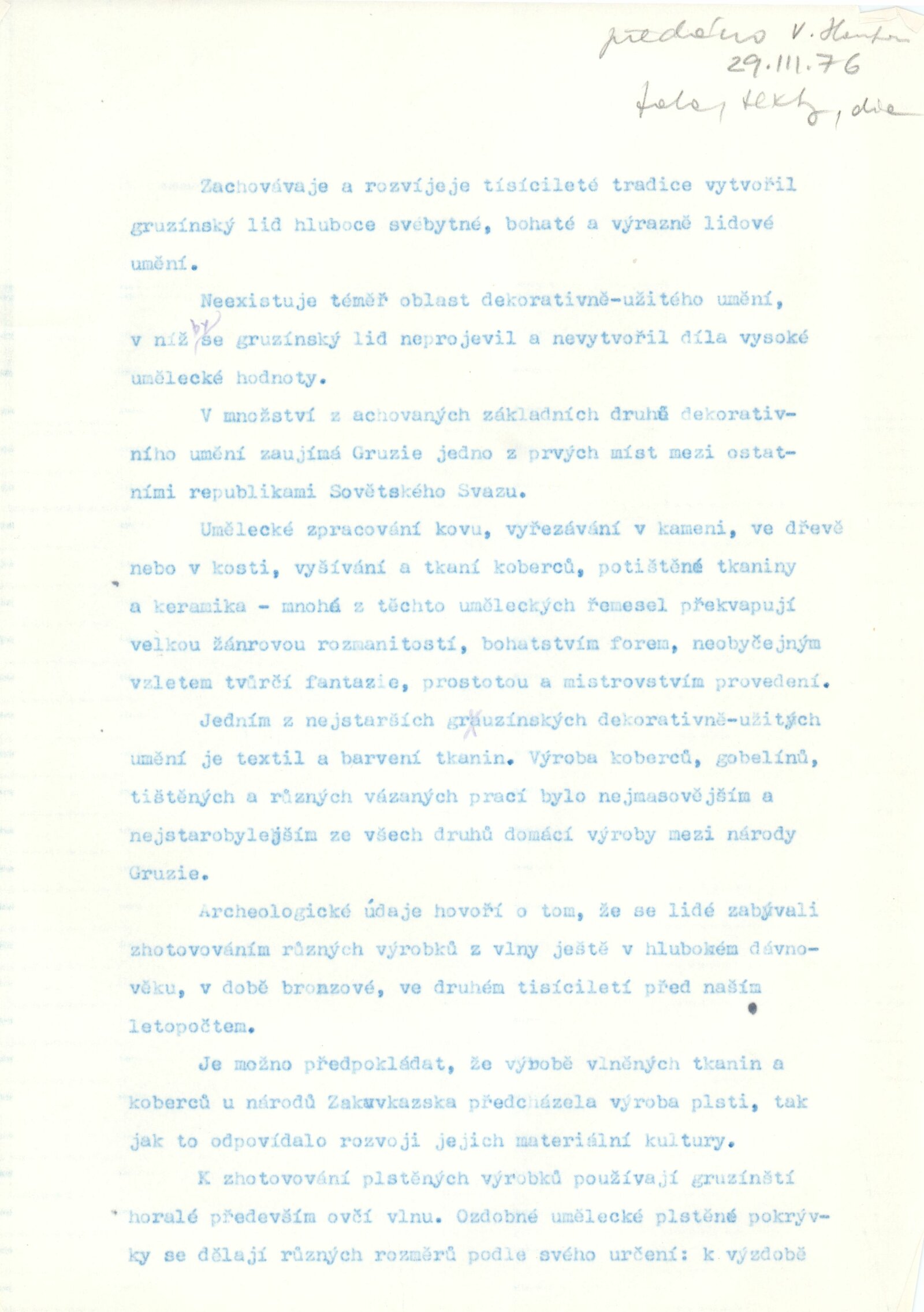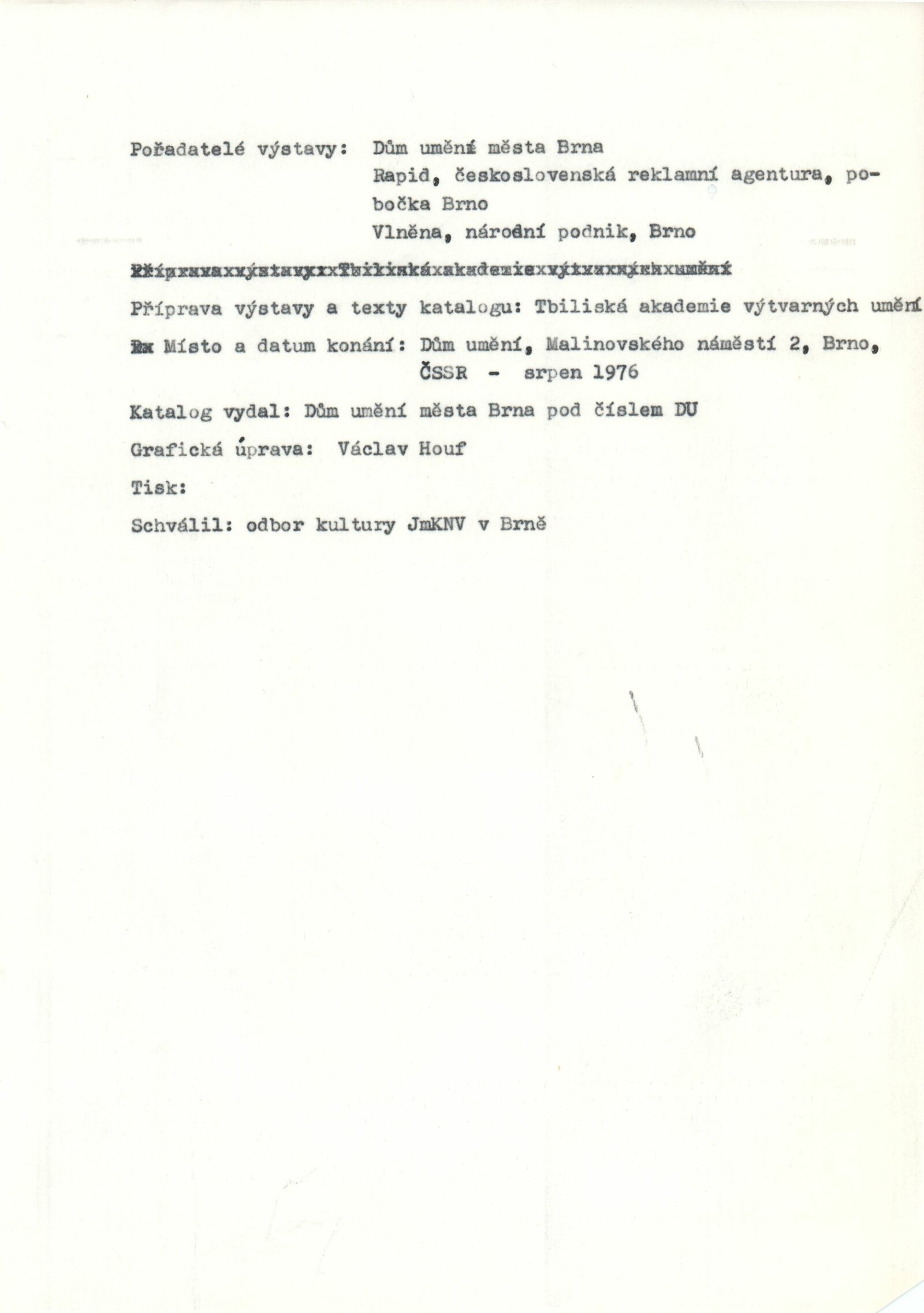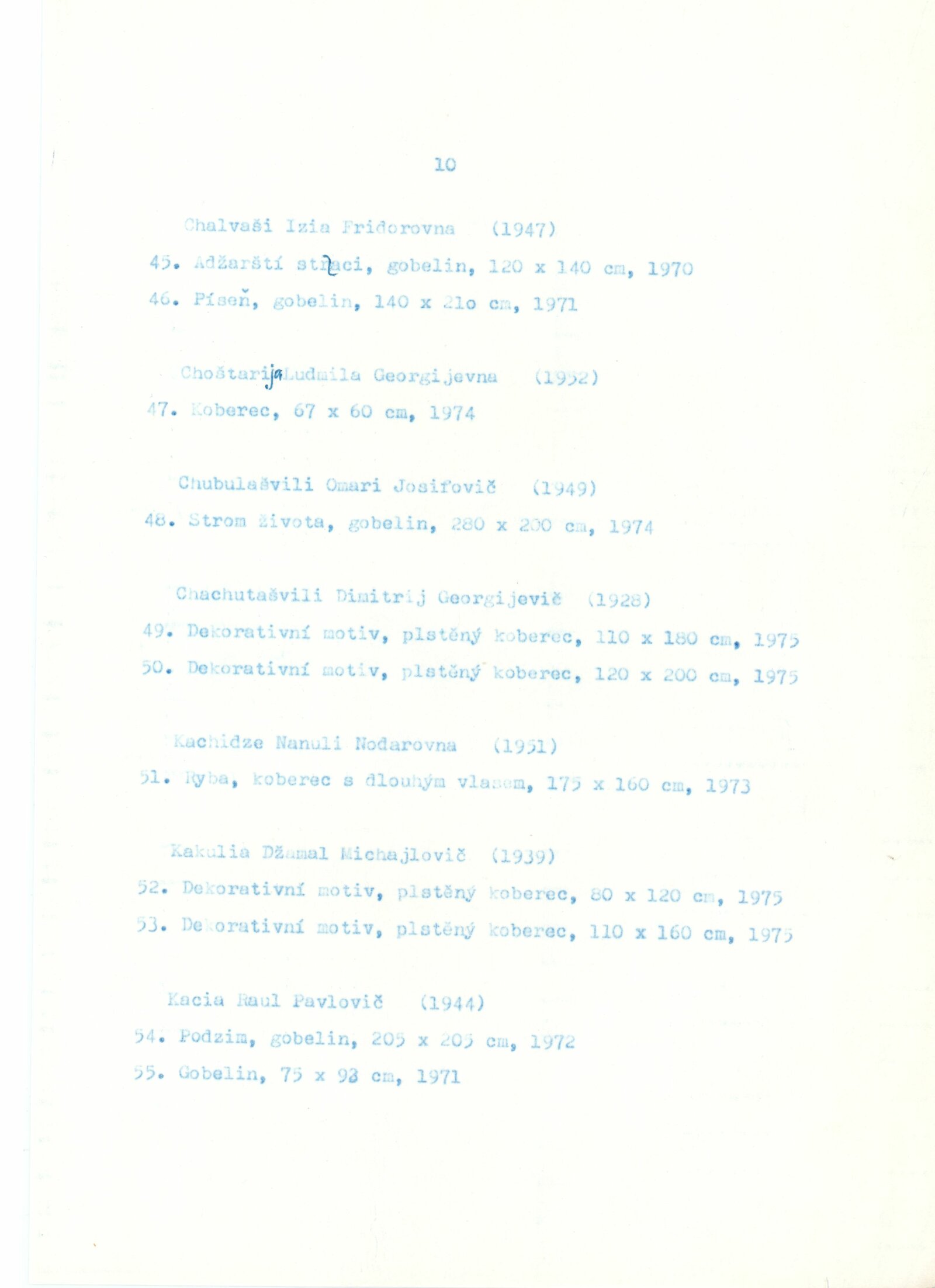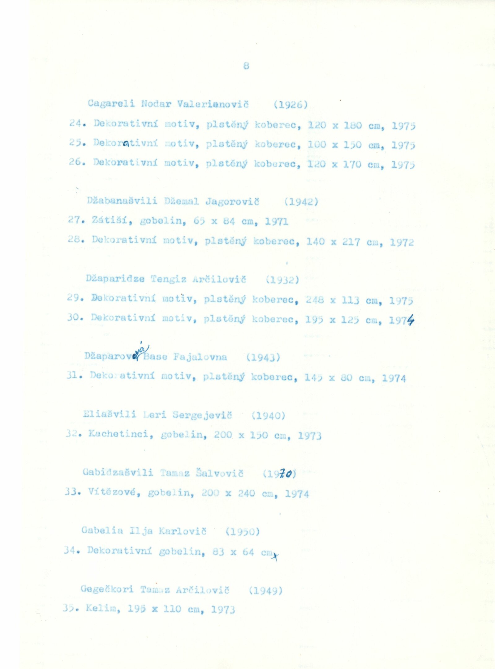Gruzínské dekorativní koberce: Dům umění města Brna, 30. 7. – 29. 8. 1976 / Text: Tbiliská akademie výtvarných umění. – Brno: DUmB, 1976. – 16 s., obr., DU 643. – MZK; MG