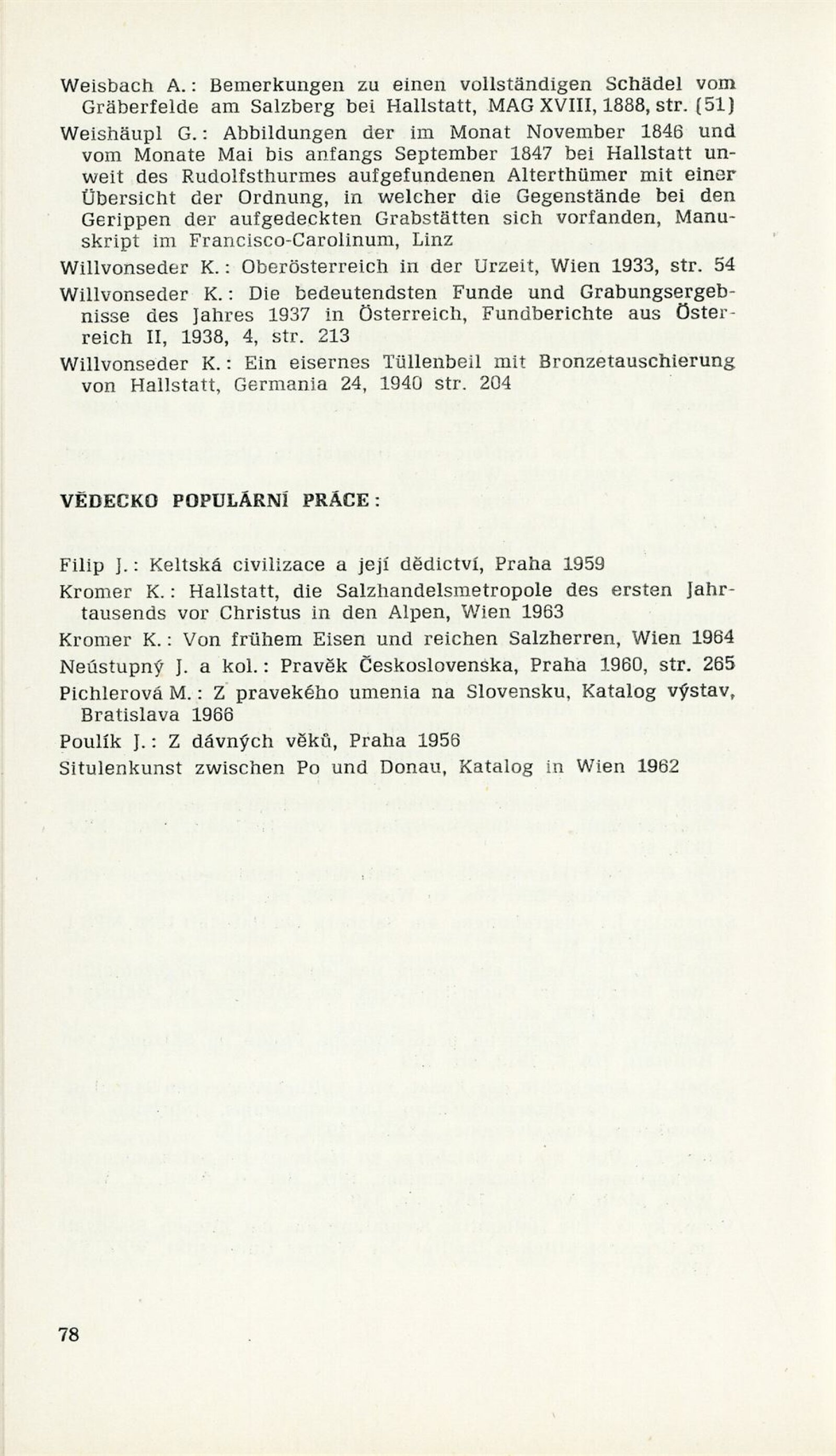 Hallstatt a Býčí skála. Průvodce výstavou významných nálezů z pravěkých sbírek vídeňského Přírodovědného muzea: Dům umění, 1. patro, hala, 28. 3. – 4. 5. 1969 / Texty: Jan Filip, W. Angel, Karl Kromer, Jindřich Nekvasil, F. E. Barth. – Brno: Archeologický ústav ČSAV, 1969. – 116 s., 72 s. obr. příl., bibliografie. – současně vyšel populární leták s textem Jindřicha Nekvasila. – 6 s., obr., DU 519. – MZK; MG