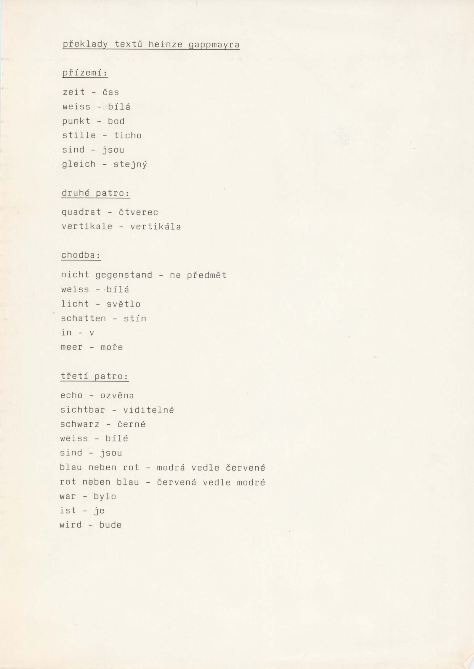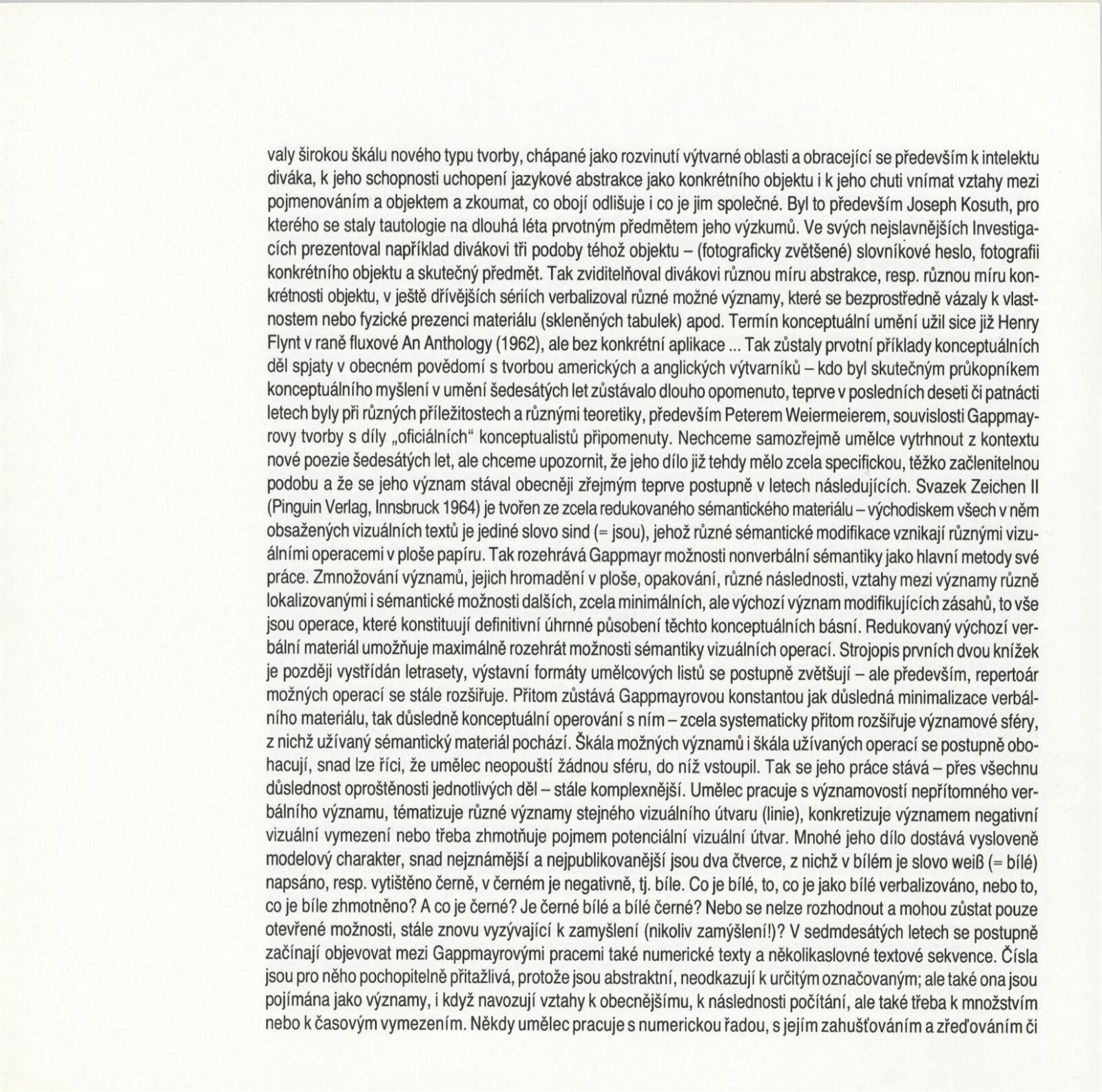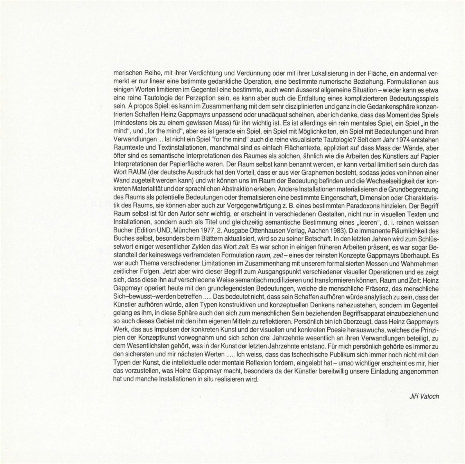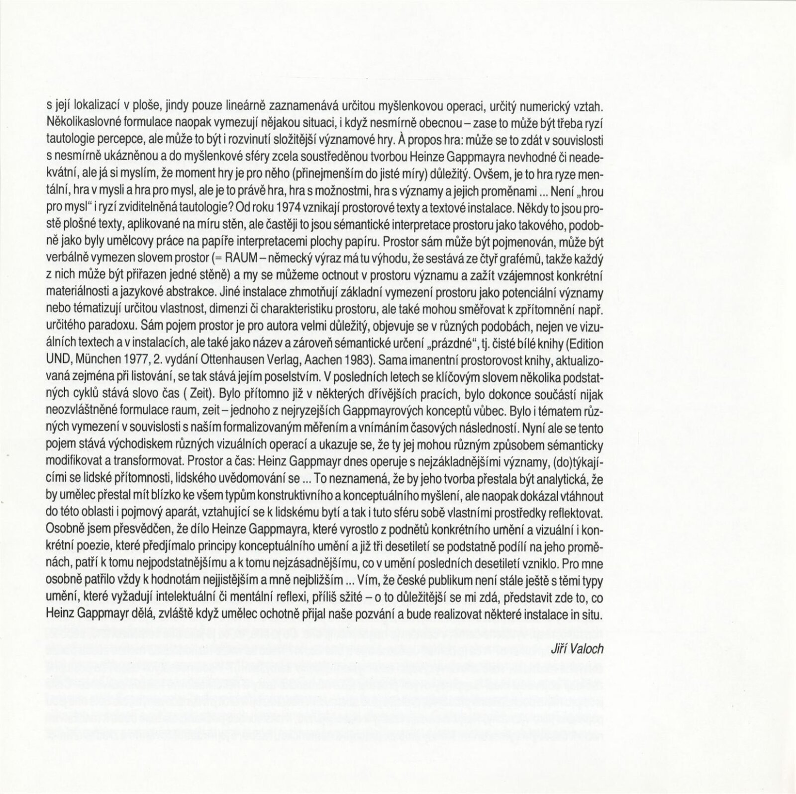Heinz Gappmayr. Instalace a práce na papíře: Galerie Stará radnice 1. 9. – 11. 10. 1992 / Text Jiří Valoch. - Brno: DUmB, - [24] s., obr. Životní data, výstavy GSR 129; MG