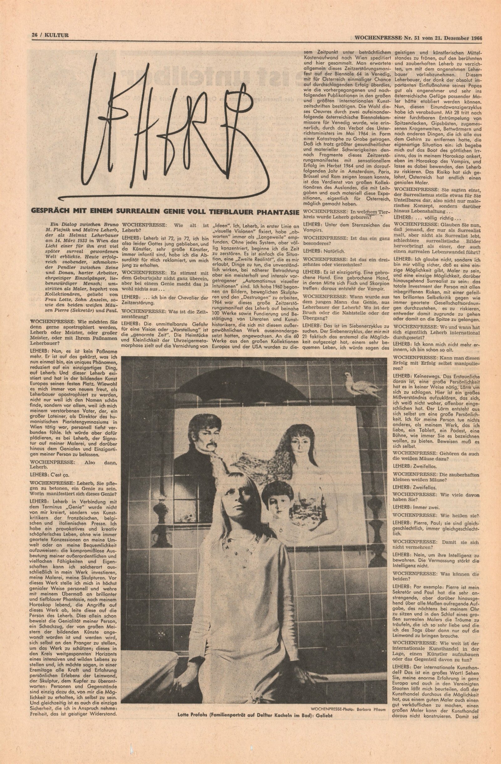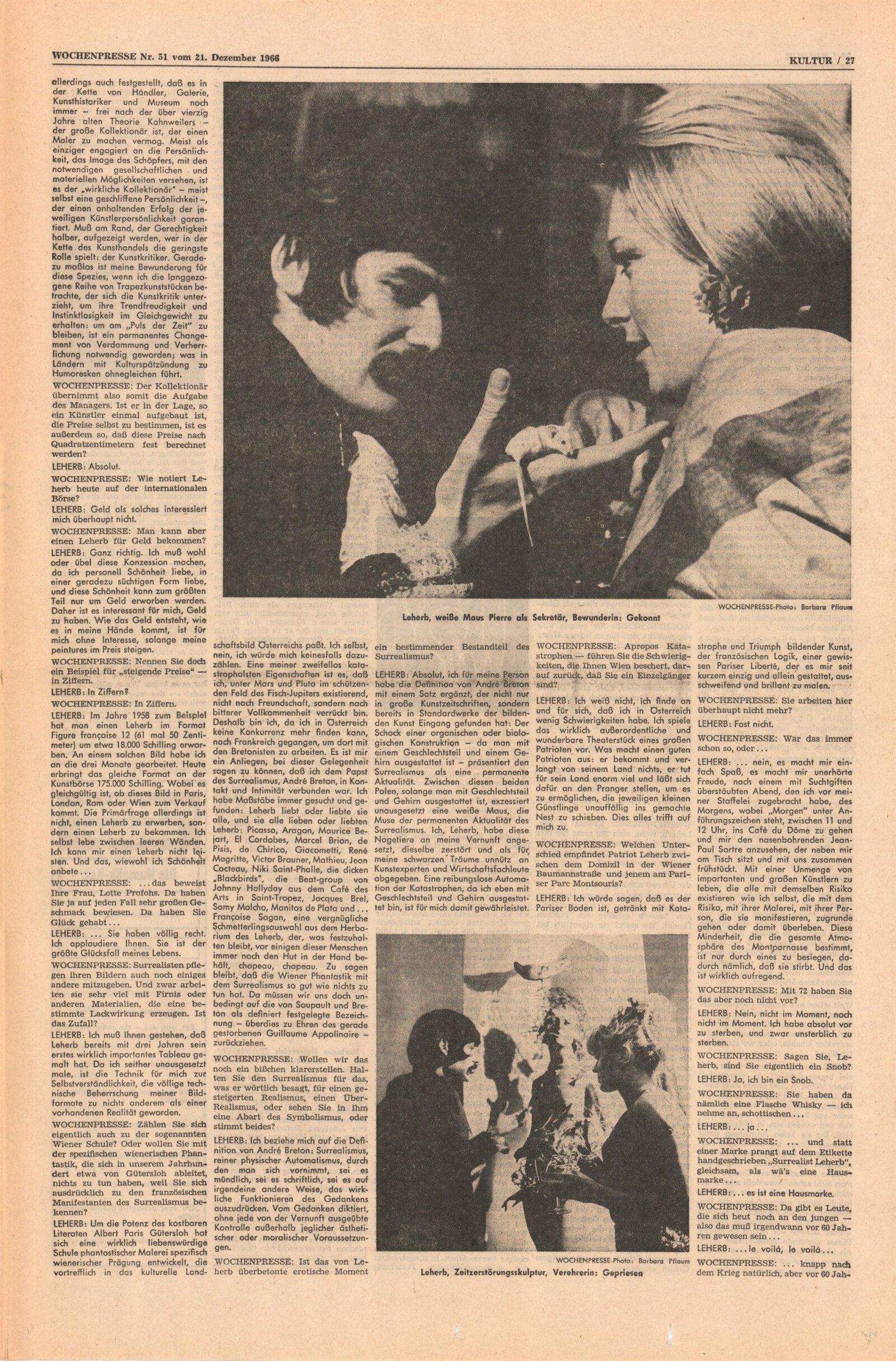 strojopis pozvánky, katalog, strojopis katalogu, prospekt (přepis rozhovoru s autorem), seznam děl, fotografie (z vernisáže a děl pro katalog), korespondence, recenze v tisku, Wochenpresse (článek o autorovi), hudební interpretace jeho malby v NJ, FJ (Vídeň 1962)