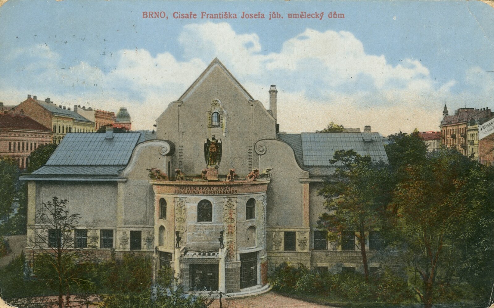 V roce 1910 byl díky dlouholetým iniciativám Moravského uměleckého spolku (Mährischer Kunstverein) podle projektu vídeňského architekta Heinricha Carla Rieda postaven Dům umělců (původní název Kaiser Franz Josef-Jubiläums-Künstlerhaus), který byl otevřen 25. 3. 1911 výstavou Sdružení německo-moravských výtvarných umělců / Vereinigung deutsch-mährischer bildender Künstler. V širokém programovém záběru zde vystavovali v rámci autorských i skupinových výstav převážně členové uměleckých spolků a výtvarných sdružení z Moravy a Slezska, Rakouska, Německa a Čech, tematické výstavy se vztahovaly k různým oblastem a obdobím evropské i světové výtvarné kultury.