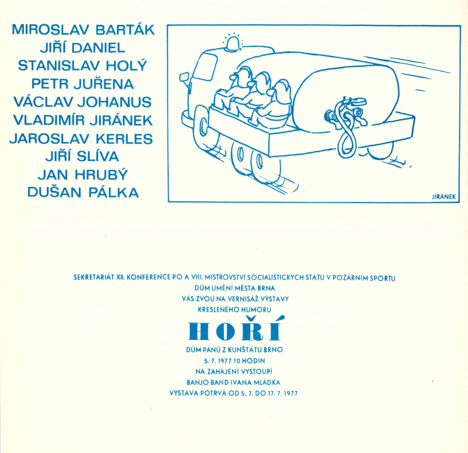 Hoří. Kreslený humor: Dům umění / Dům pánů z Kunštátu, 5. 7. – 17. 7. 1977 / Brno: DUmB, 1977. – 10 s., obr., DPK 656