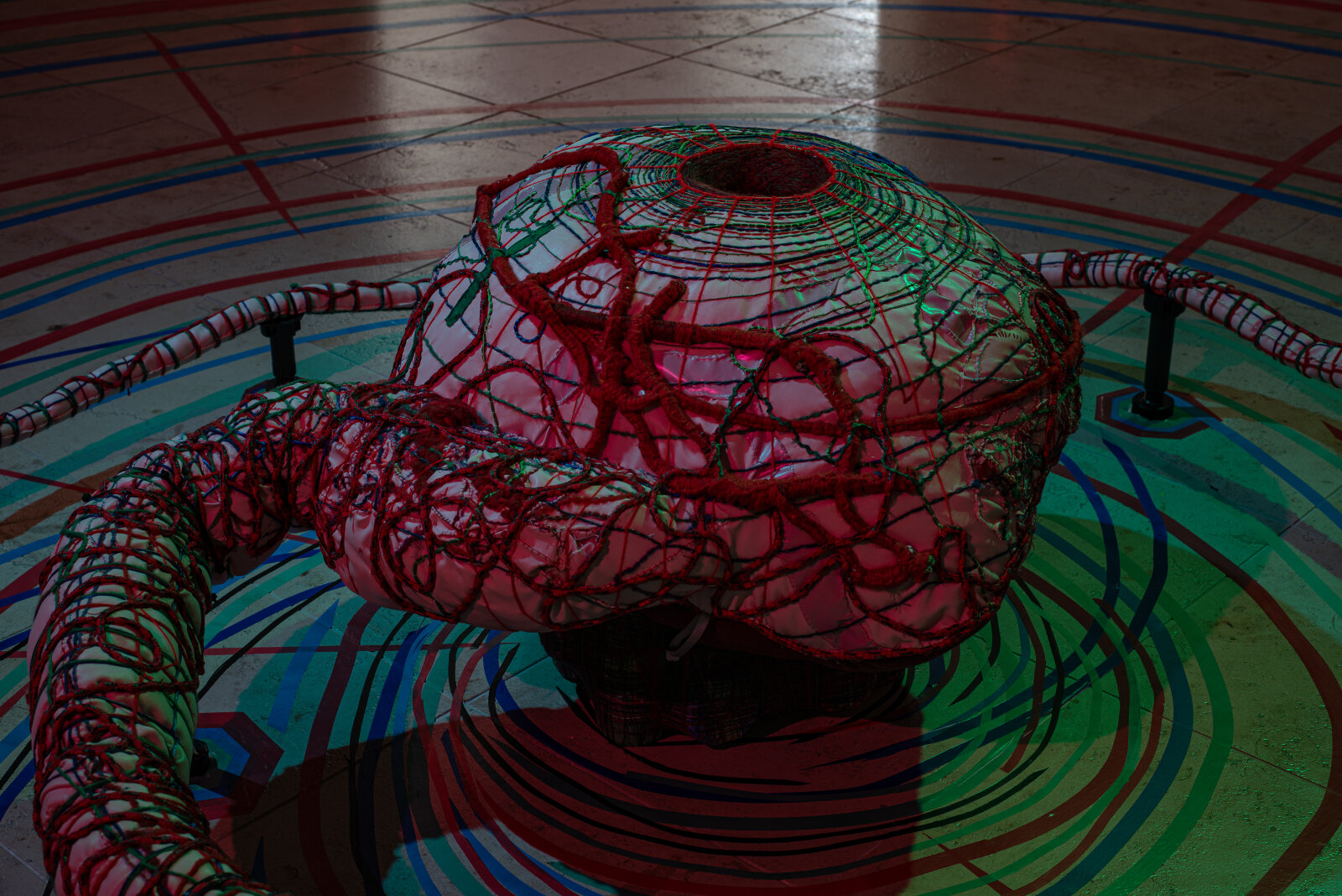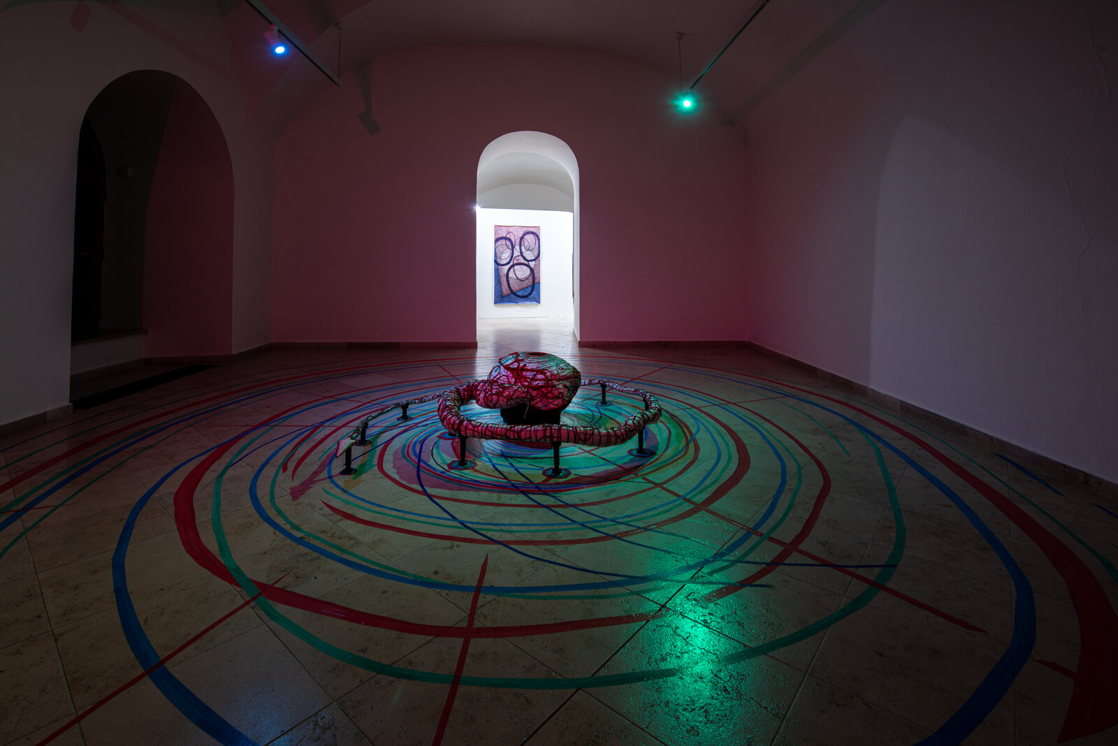 Denisa Ponomarevová v G99 rozvíjí své předchozí cykly Demotikon a Dramatikon, v nichž prostřednictvím naopak pomalého média kresby - ať už na papíře, nebo v podobě textilních objektů - zkoumá, jak nám glyfy digitálních platforem (de)formují vztah k sobě i k ostatním. Velmi osobní a zároveň důkladně analytická metoda kresby jí umožňuje pronikat hlouběji k probíhajícím procesům spojeným se zplošťováním emočního prožívání a tím navracet komplexitu tam, kde se ztrácí v síti žlutých děr emotikonů.