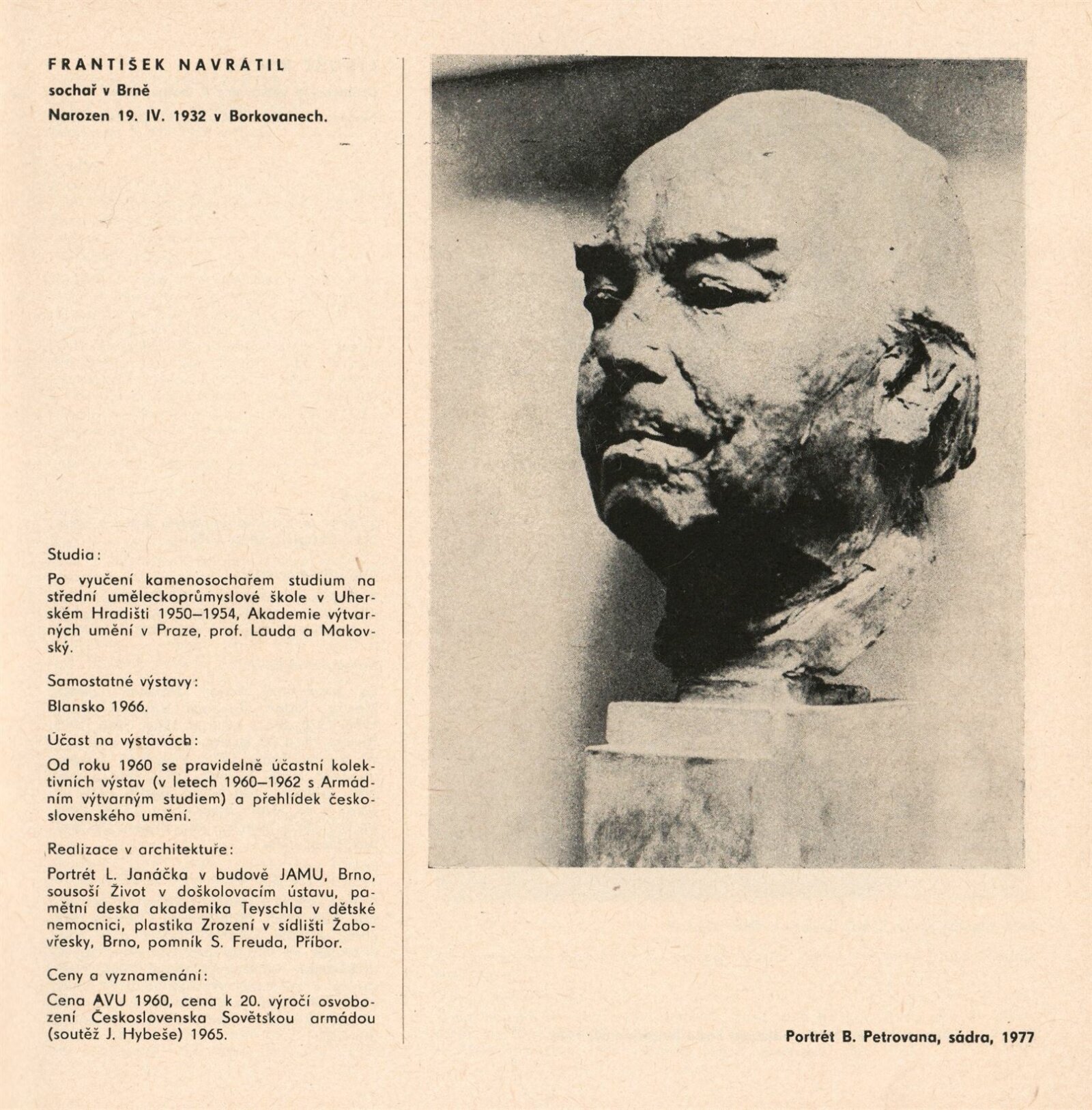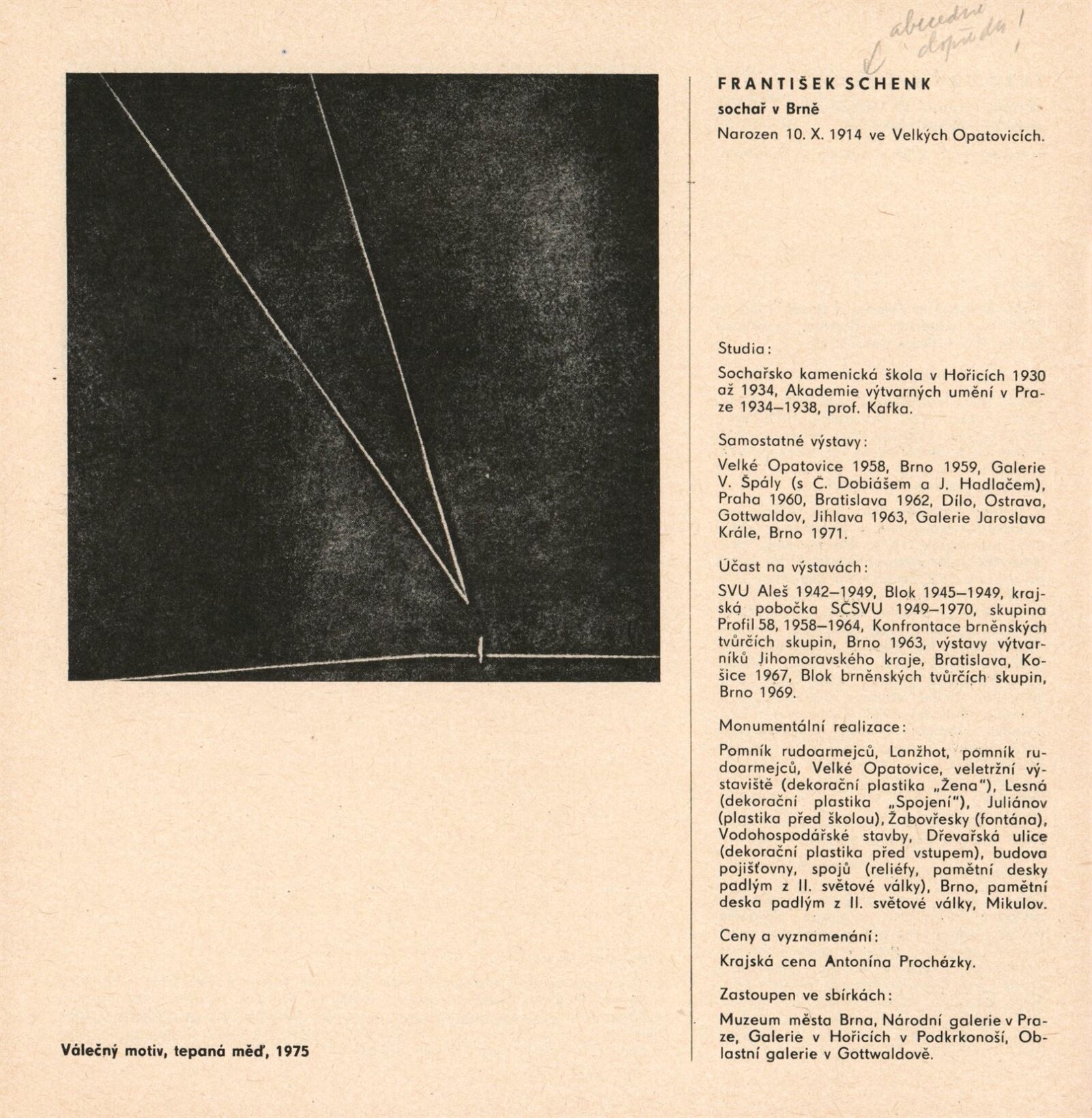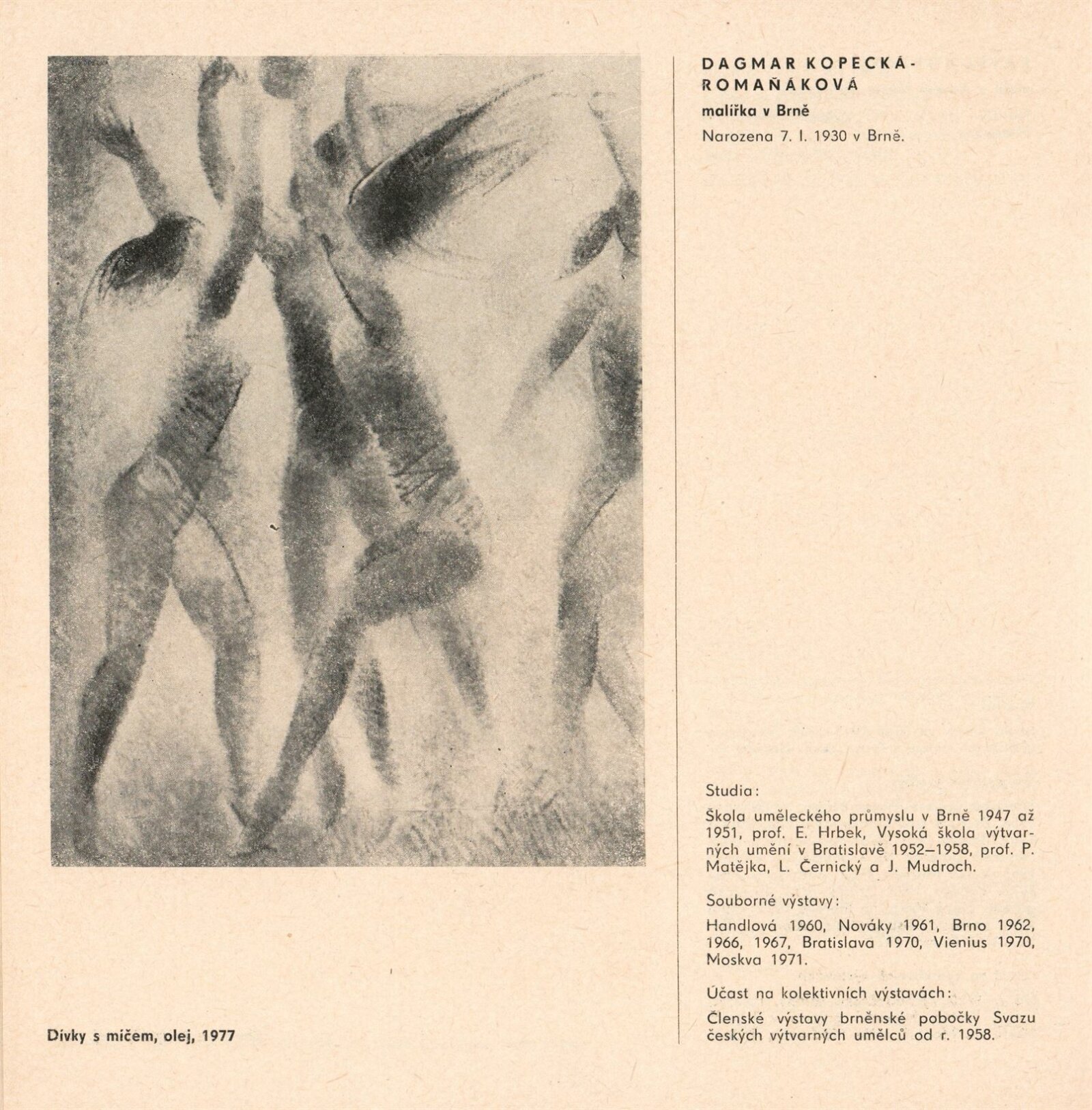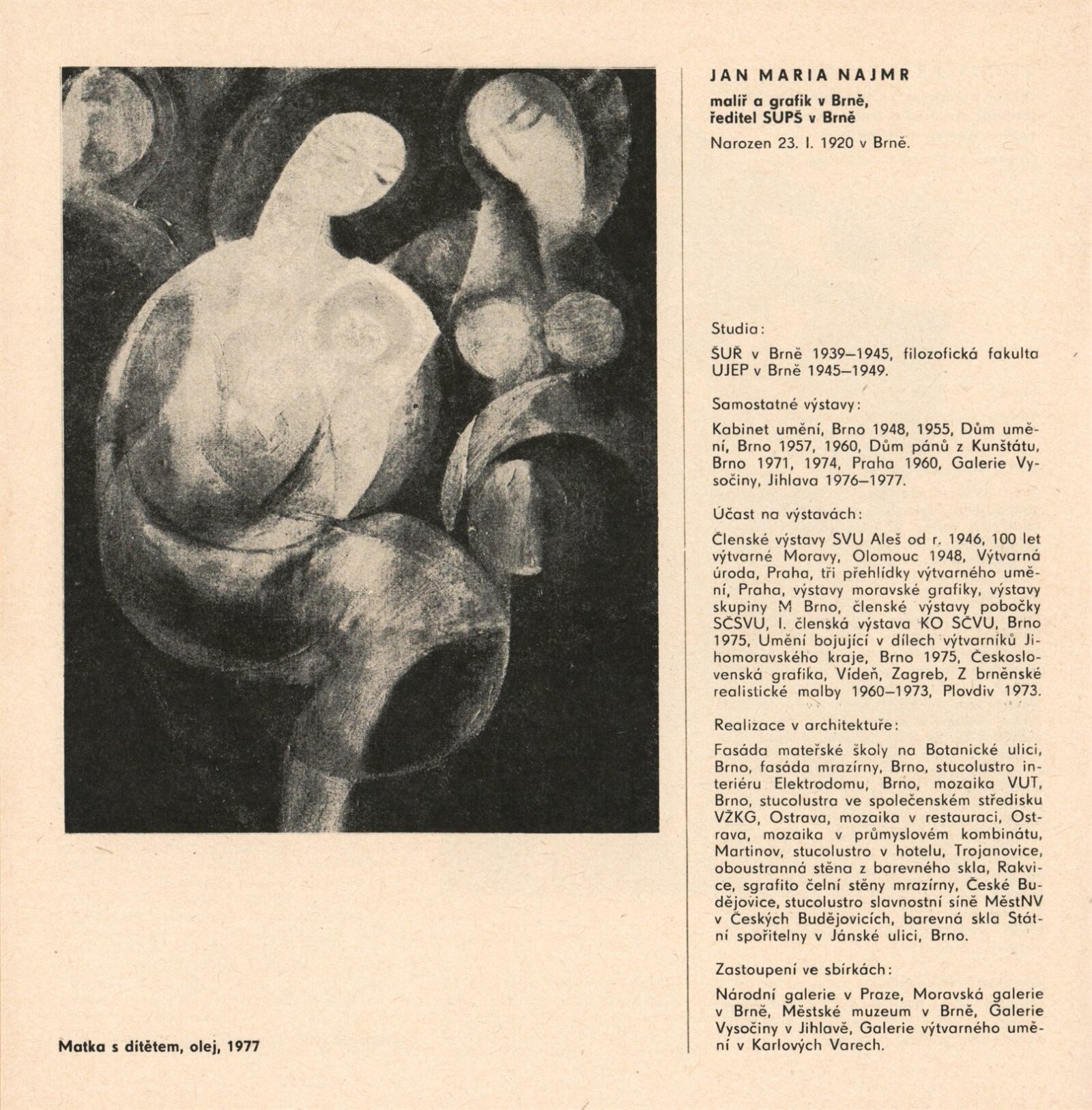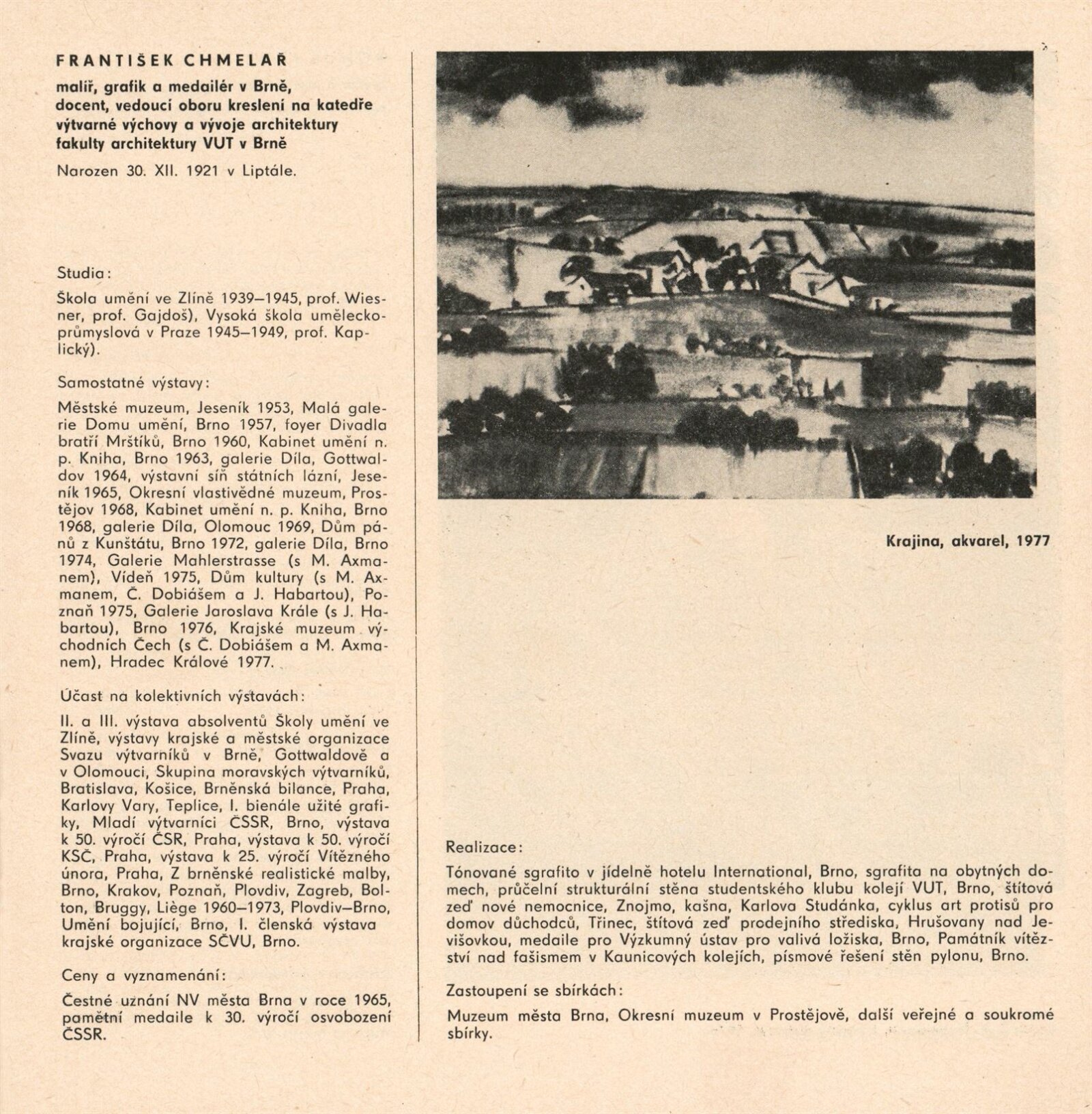 II. členská výstava krajské organizace Svazu českých výtvarných umělců Jihomoravského kraje: Dům umění města Brna, 14. 10. – 20. 11. 1977 / Text: Zdeněk Čubrda. – Brno: DUmB, 1977. – 44 s., obr., seznam prací 4 s., životní data vystavujících, DU 662
