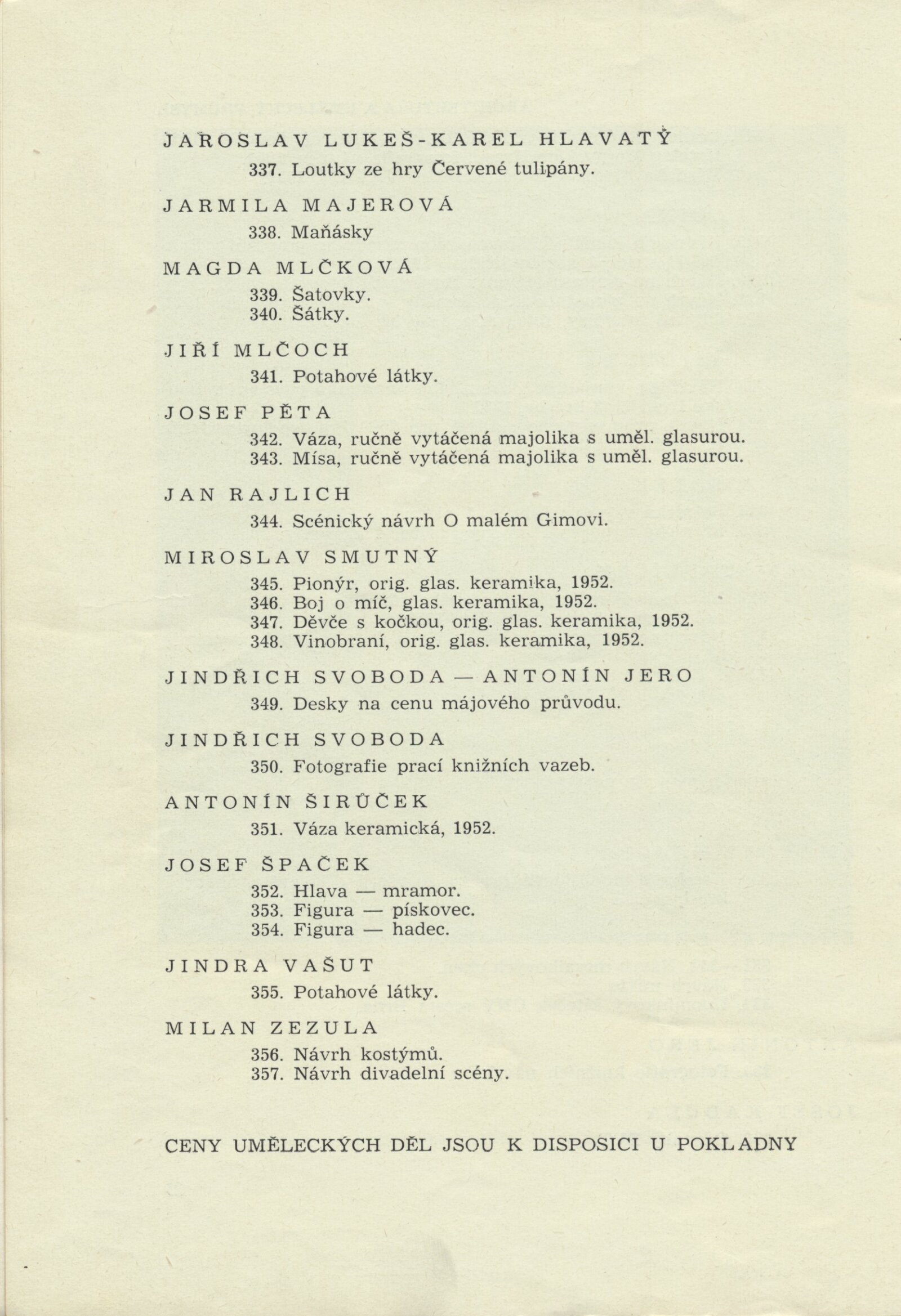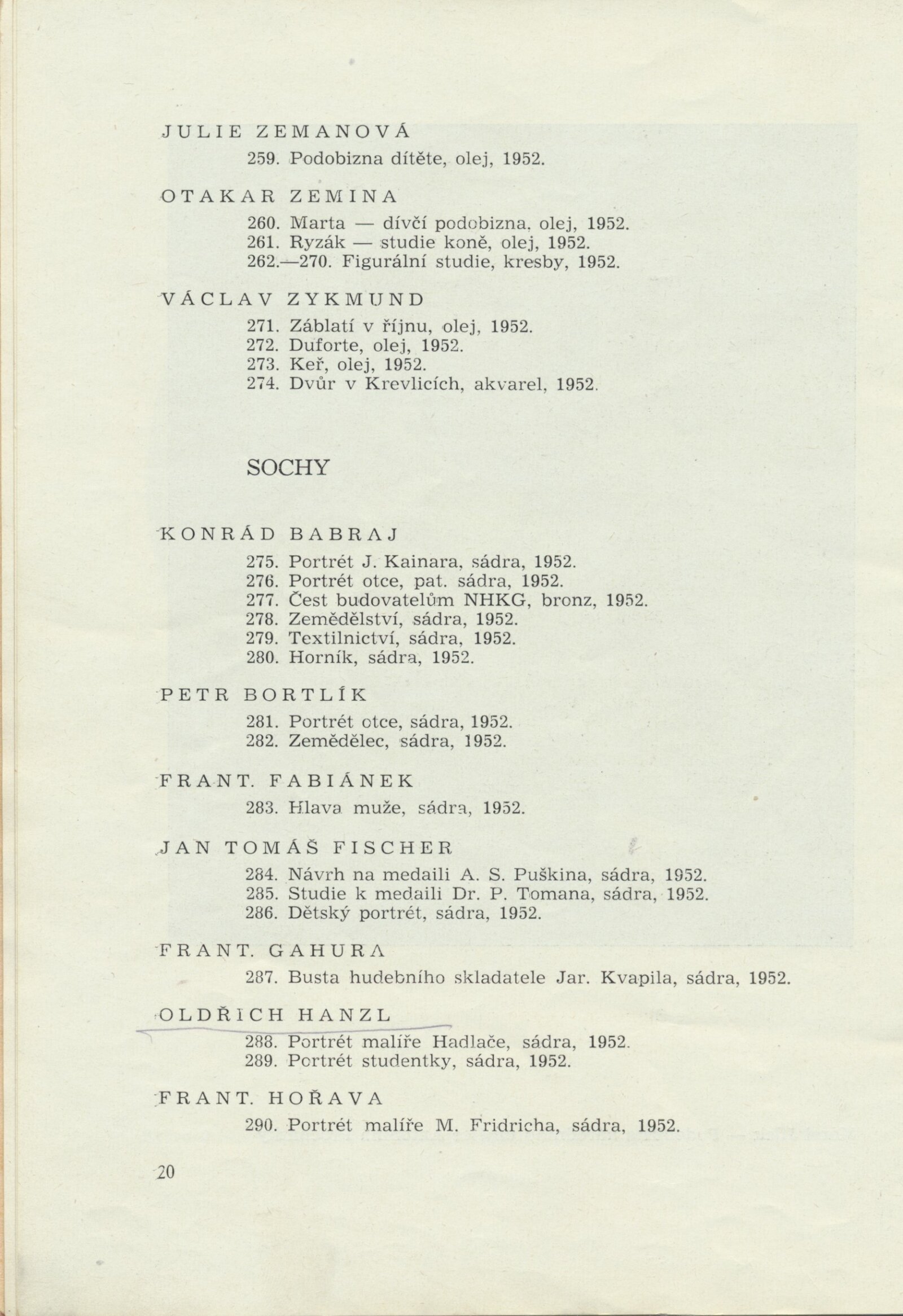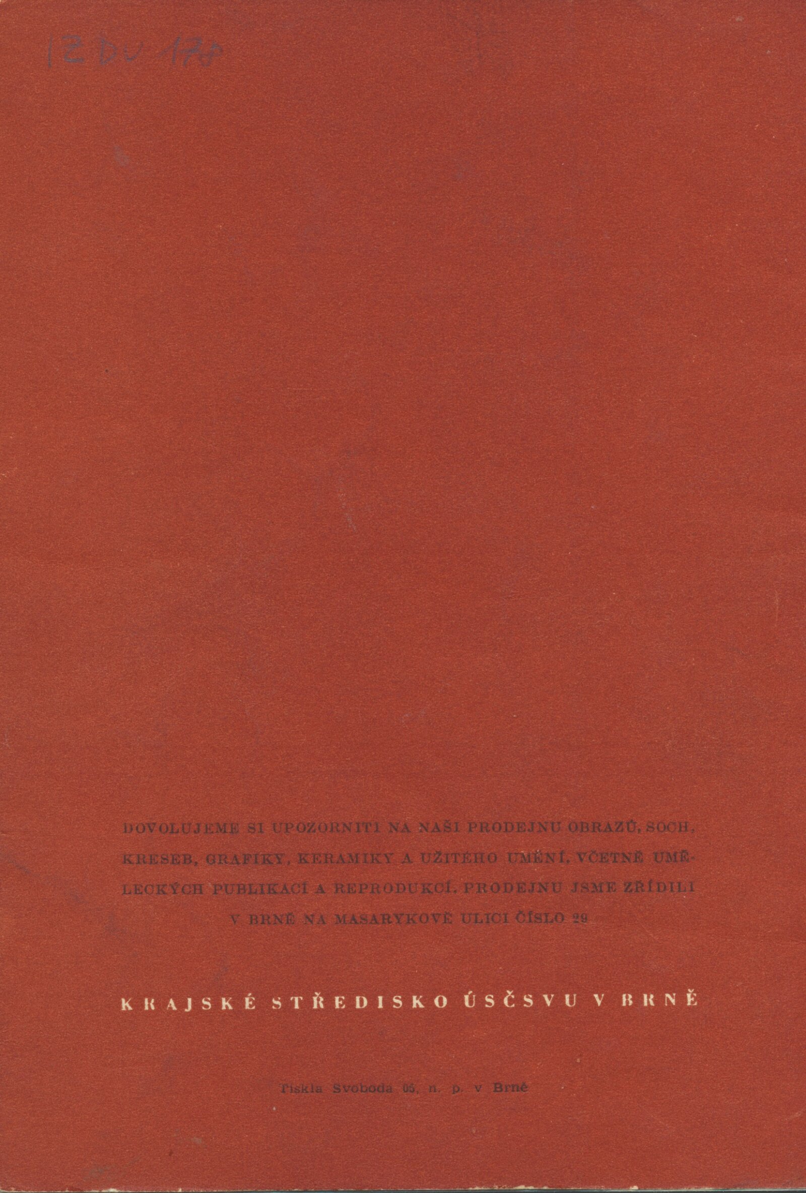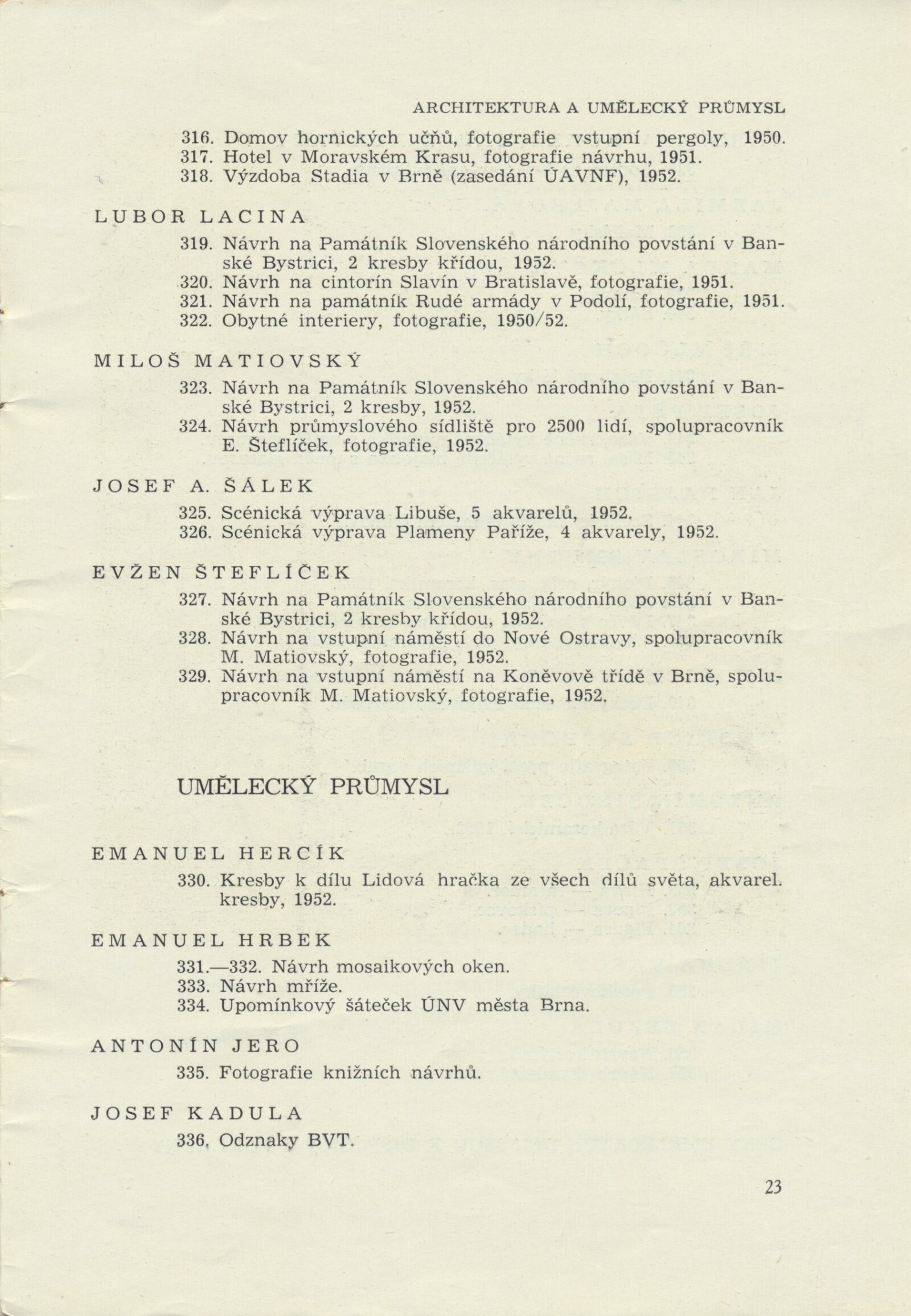 III. členská výstava krajského střediska ÚSČSVU v Brně: Dům umění města Brna, 14. 11. 1952 – 1. 1. 1953 / Text: František Kubišta. – Brno: ÚSČSVU, 1952. – 23 s., obr., DU 178. – MZK; MG; MMB