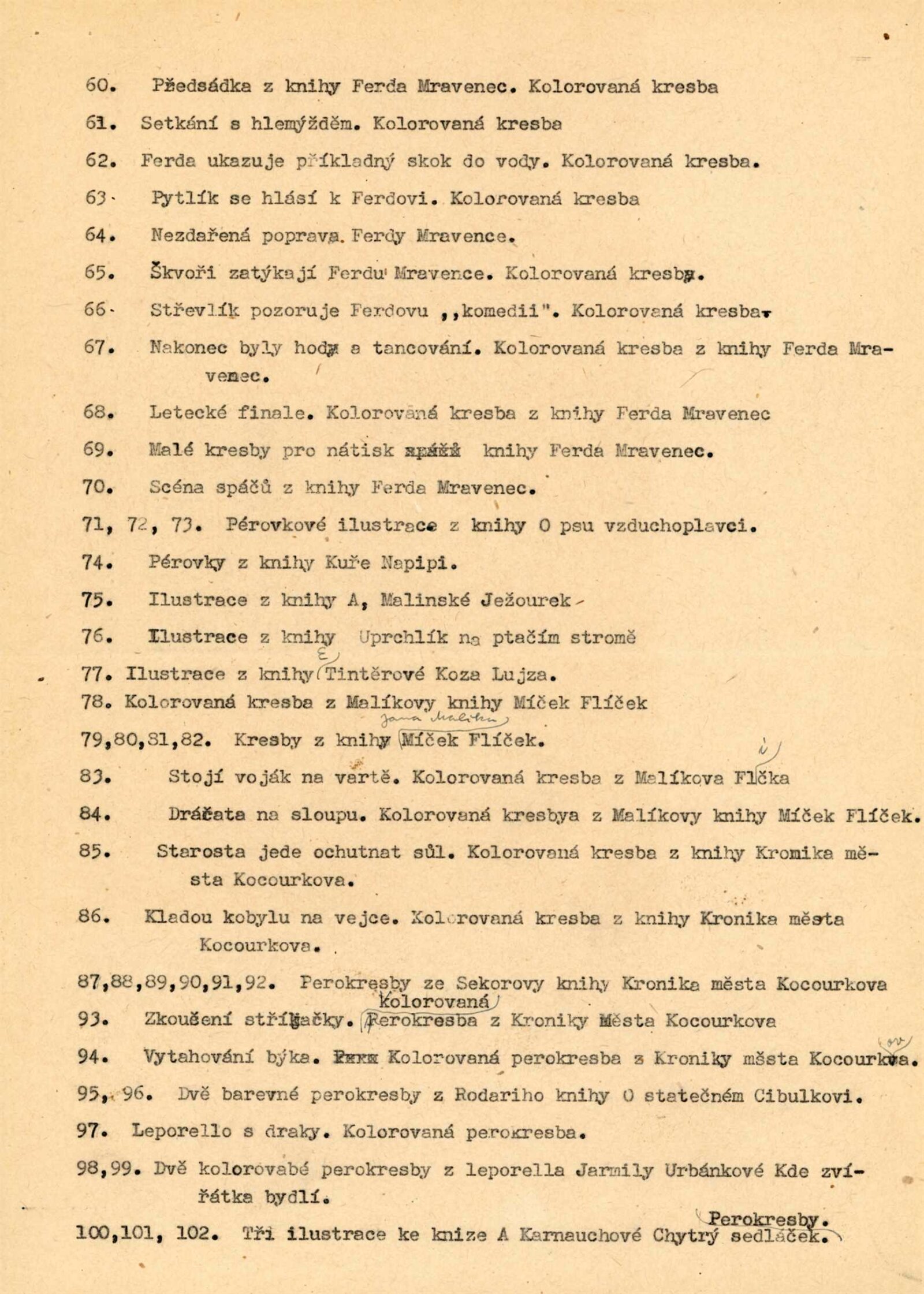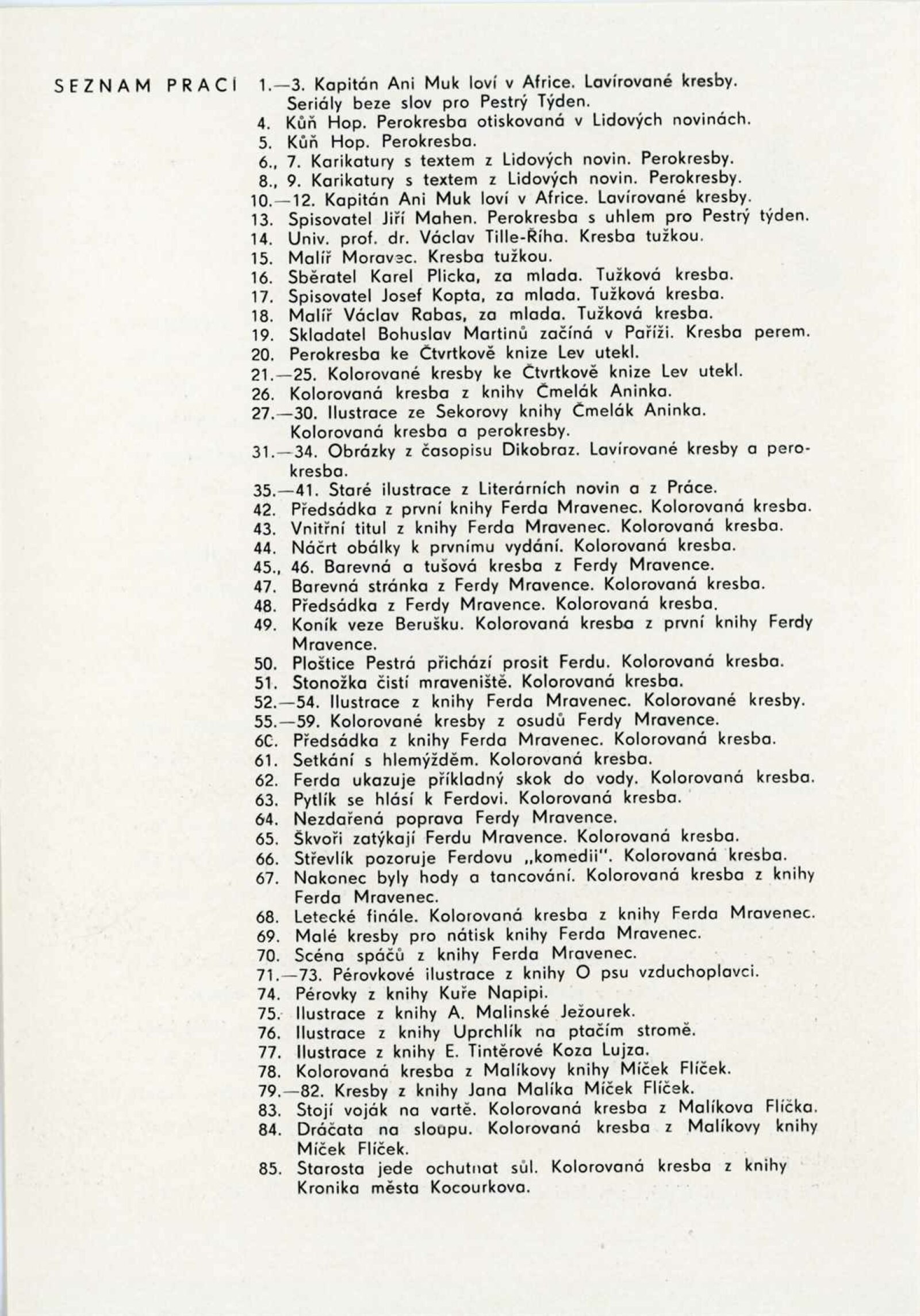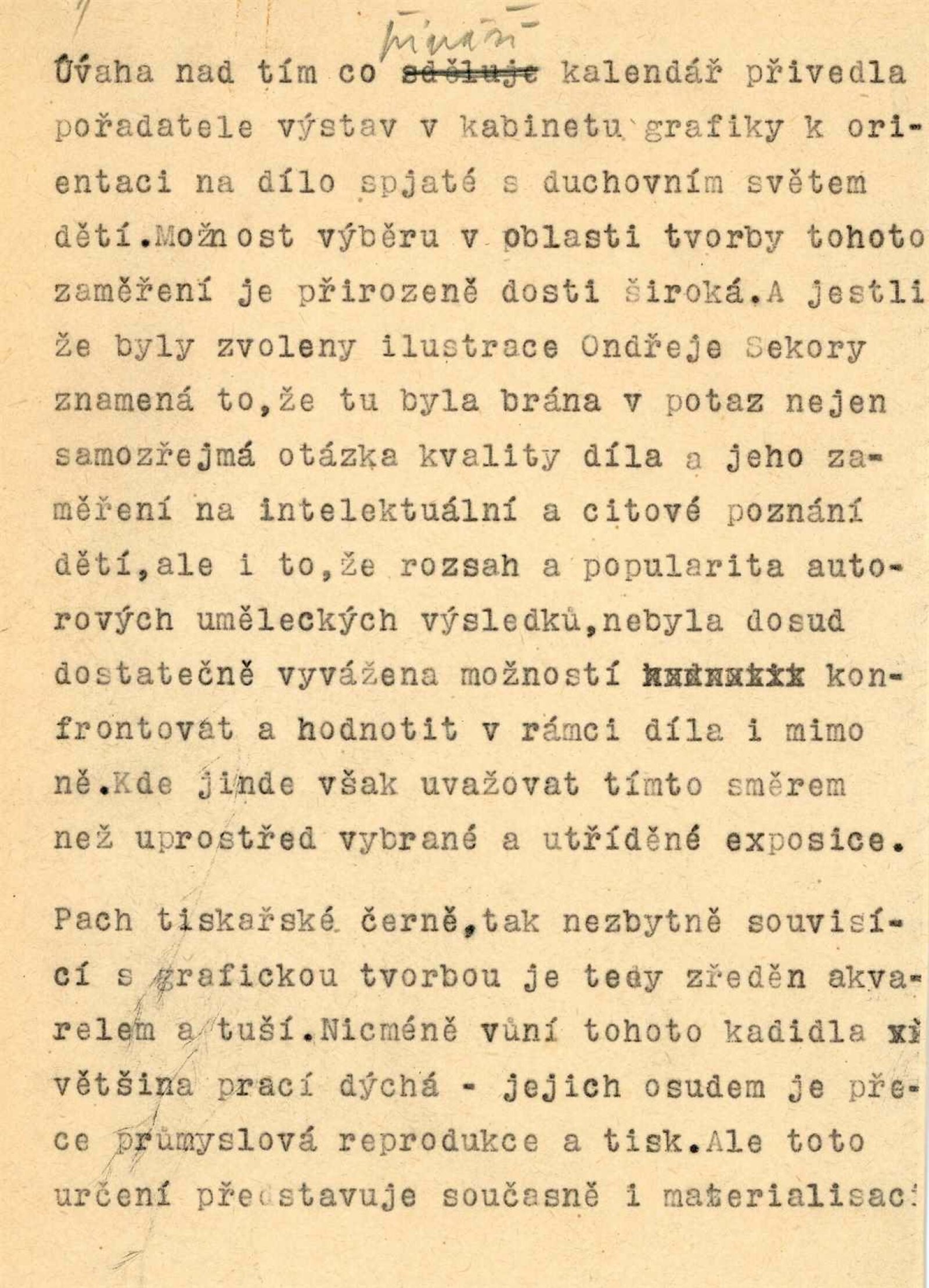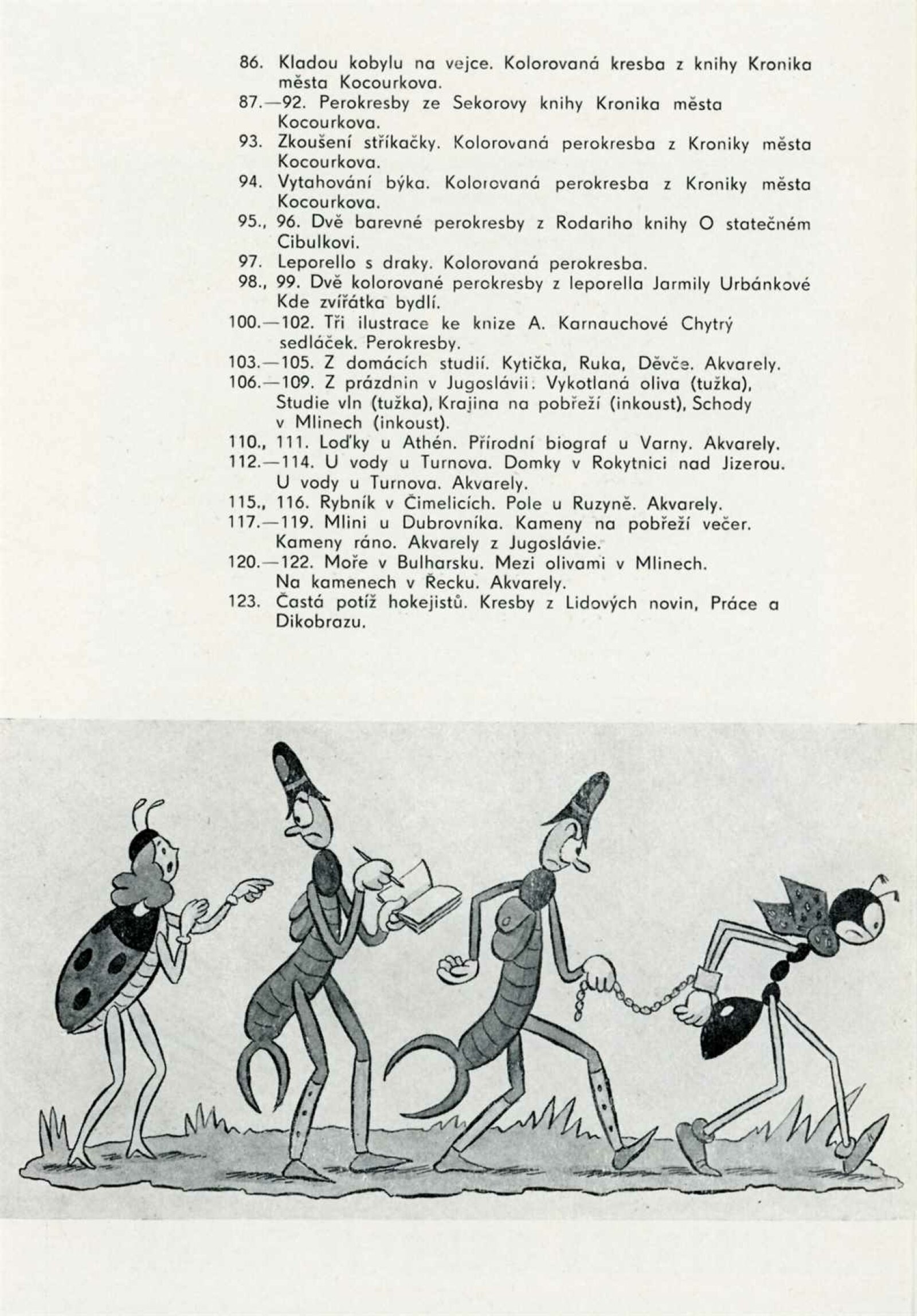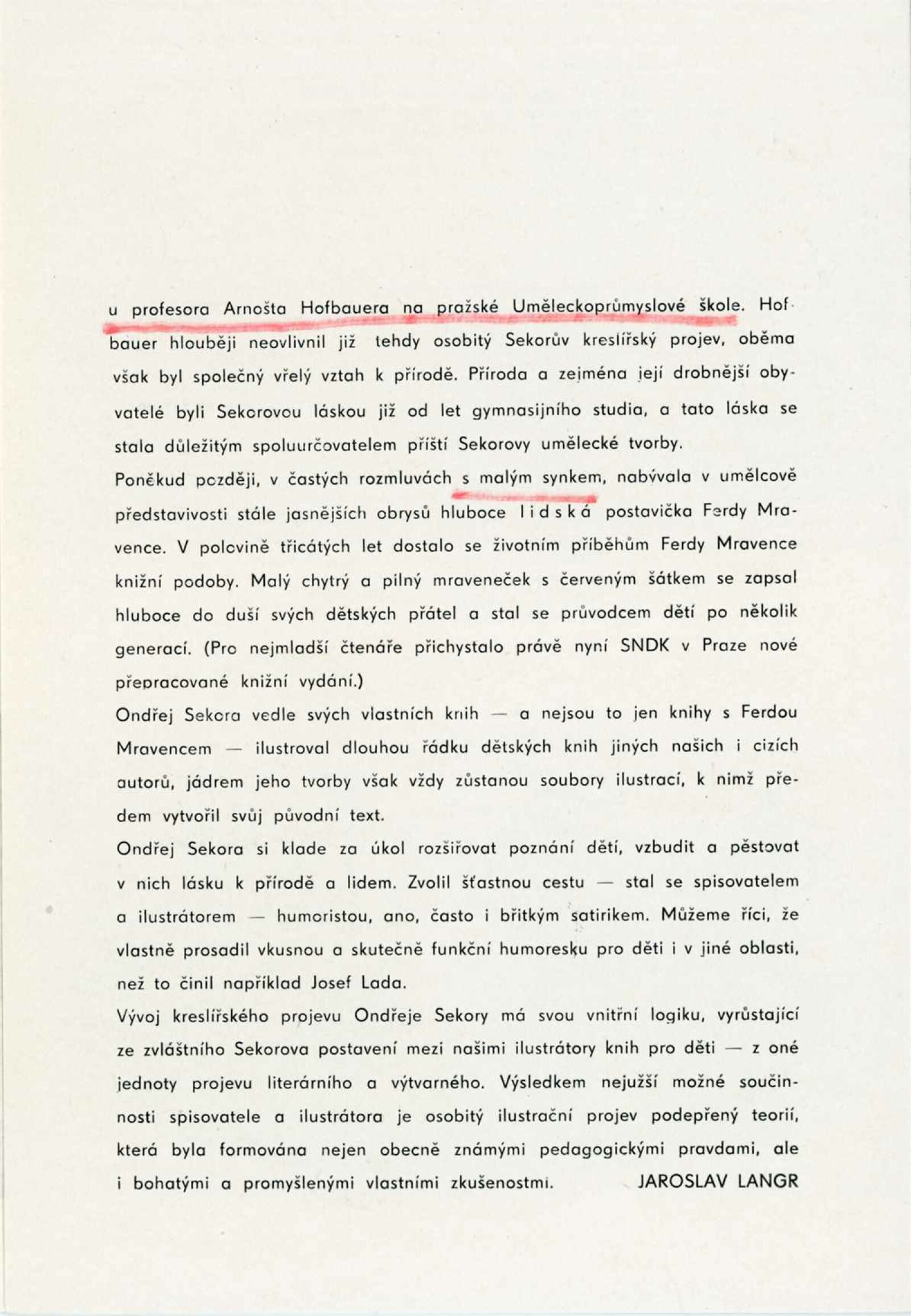 Ilustrace Ondřeje Sekory: Dům umění města Brna / Dům pánů z Kunštátu, 33. výstava Kabinetu grafiky, 5. 5. – 3. 6. 1962 / Text: Jaroslav Langr. – Brno: DUmB, 1962. – skládačka, 8 s., obr., DPK 150. – MZK; MG; MMB