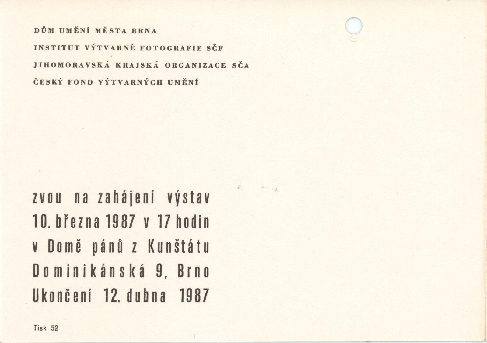 pozvánka, katalog, strojopis, provozní korespondence, žádost o výstavu, recenze v tisku