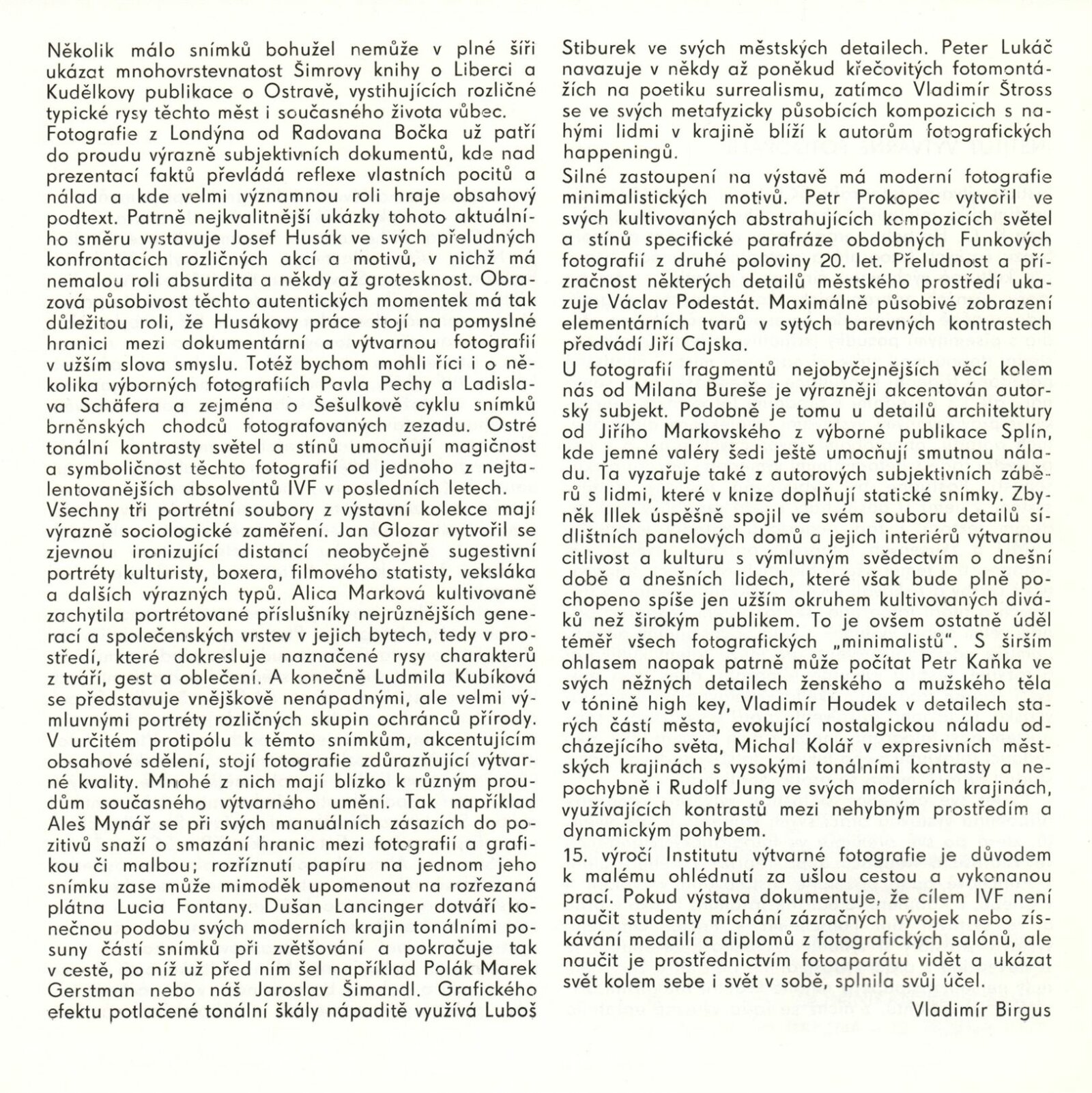 Institut výtvarné fotografie: Dům umění / Dům pánů z Kunštátu, Kabinet fotografie Jaromíra Funka, 10. 3. – 12. 4. 1987 / Text: Vladimír Birgus. – Brno: DUmB, 1987. – [16] s., obr., DPK 887. – MZK; MG; MMB