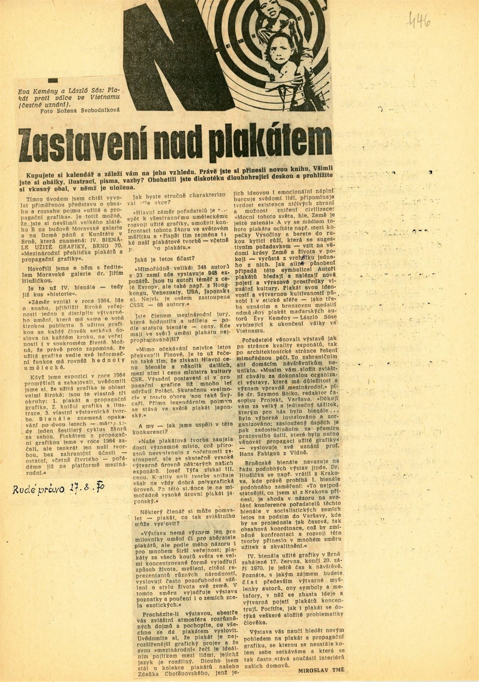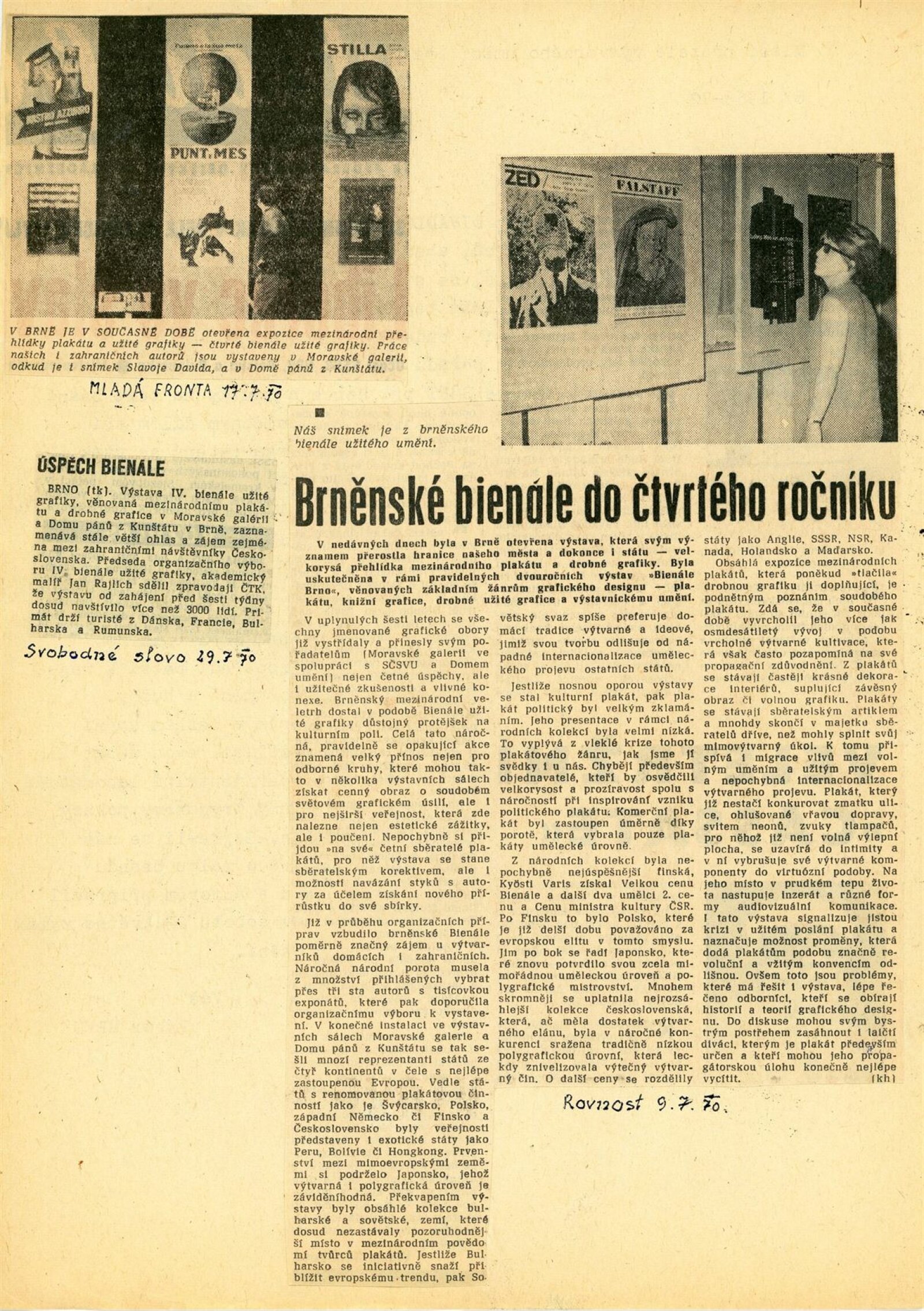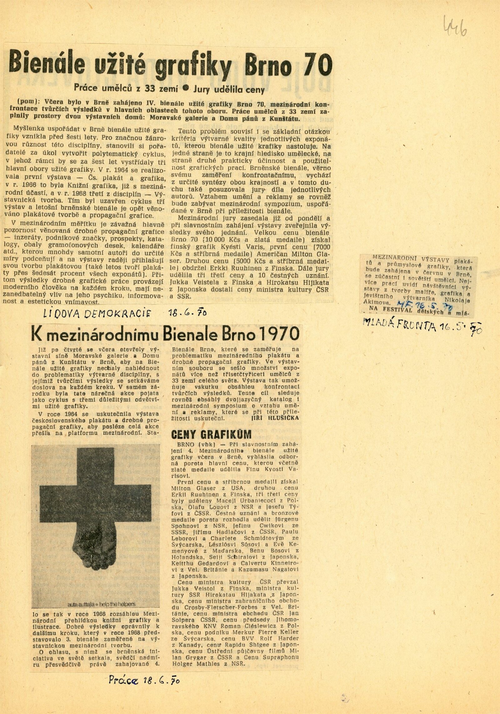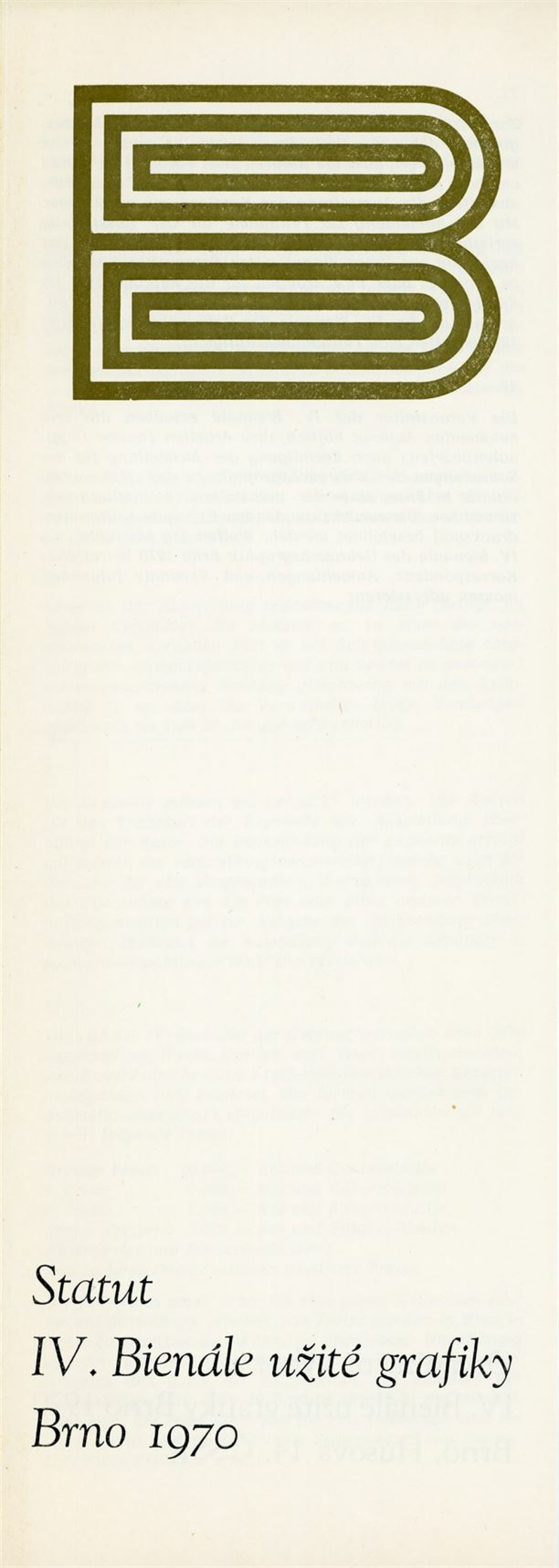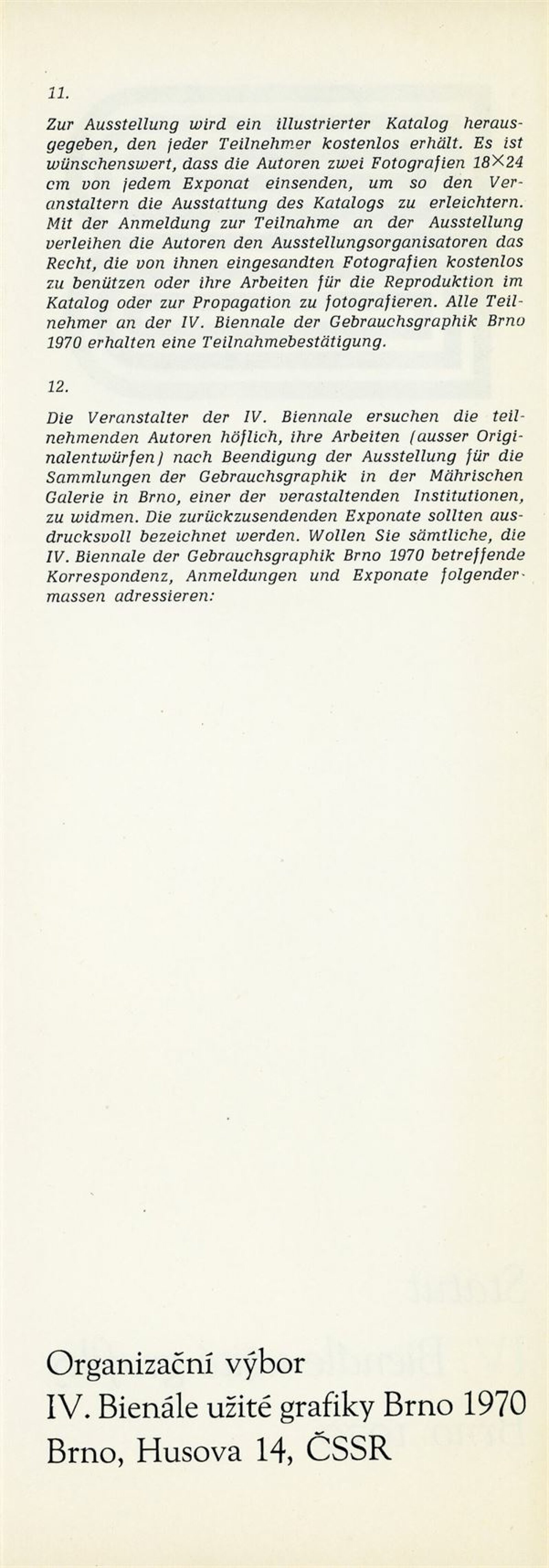 Mezinárodní přehlídka plakátu a propagační grafiky. IV. bienále užité grafiky Brno 1970: Dům umění města Brna / Dům pánů z Kunštátu a Moravská galerie v Brně, 17. 6. – 20. 9. 1970 / Text: Jiří Hlušička. – Brno: Moravská galerie, 1970. – 245 s., obr., název a text též francouzsky, DPK 446