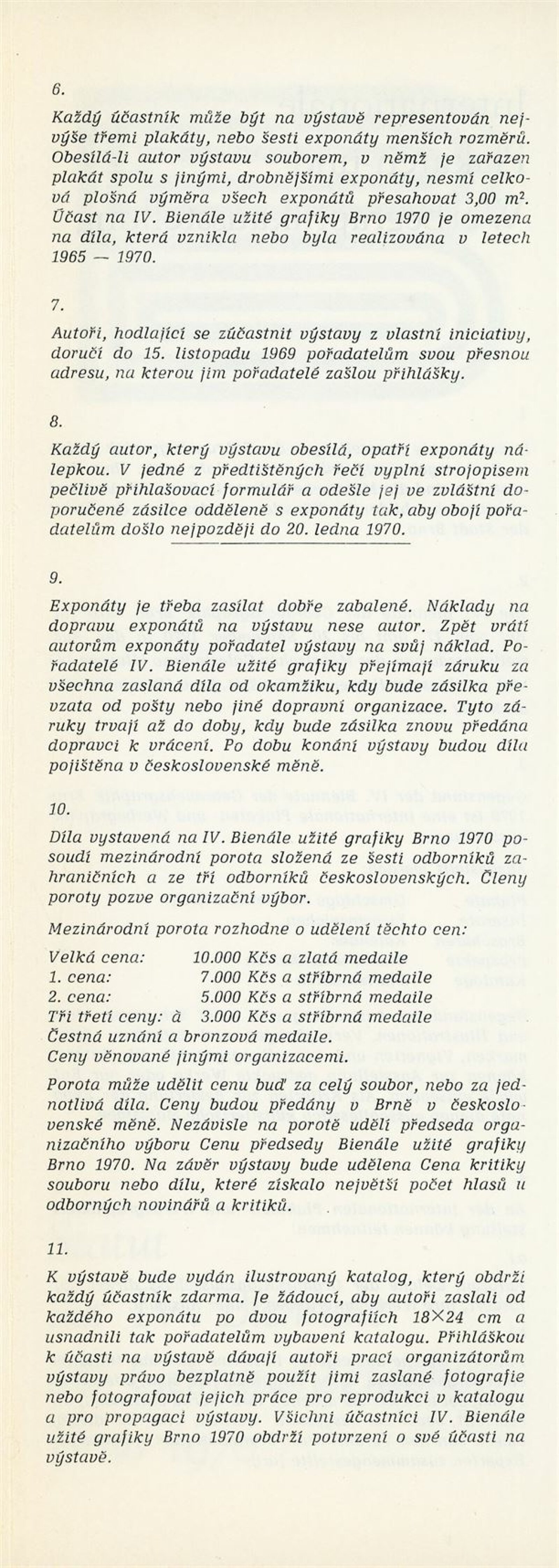 pozvánka, čestná pozvánka Adolfu Kroupovi a jeho ženě, čestná vstupenka, pozvánka na koktejl v Moravské galerii, menu, pozvánka a program, statut (ČJ, FJ, AJ), plakát, nevyplněné formuláře pro bienále (přihlášky apod.), seznam cen a výherců, pořad akce, zápisy z jednání organizačního výboru, bulletiny (AJ, NJ), korespondence (Moravská galerie Adolfu Kroupovi), pozvánka na redakční radu Hosta do Domu – Jan Trefulka, Jan Skácel, recenze v tisku