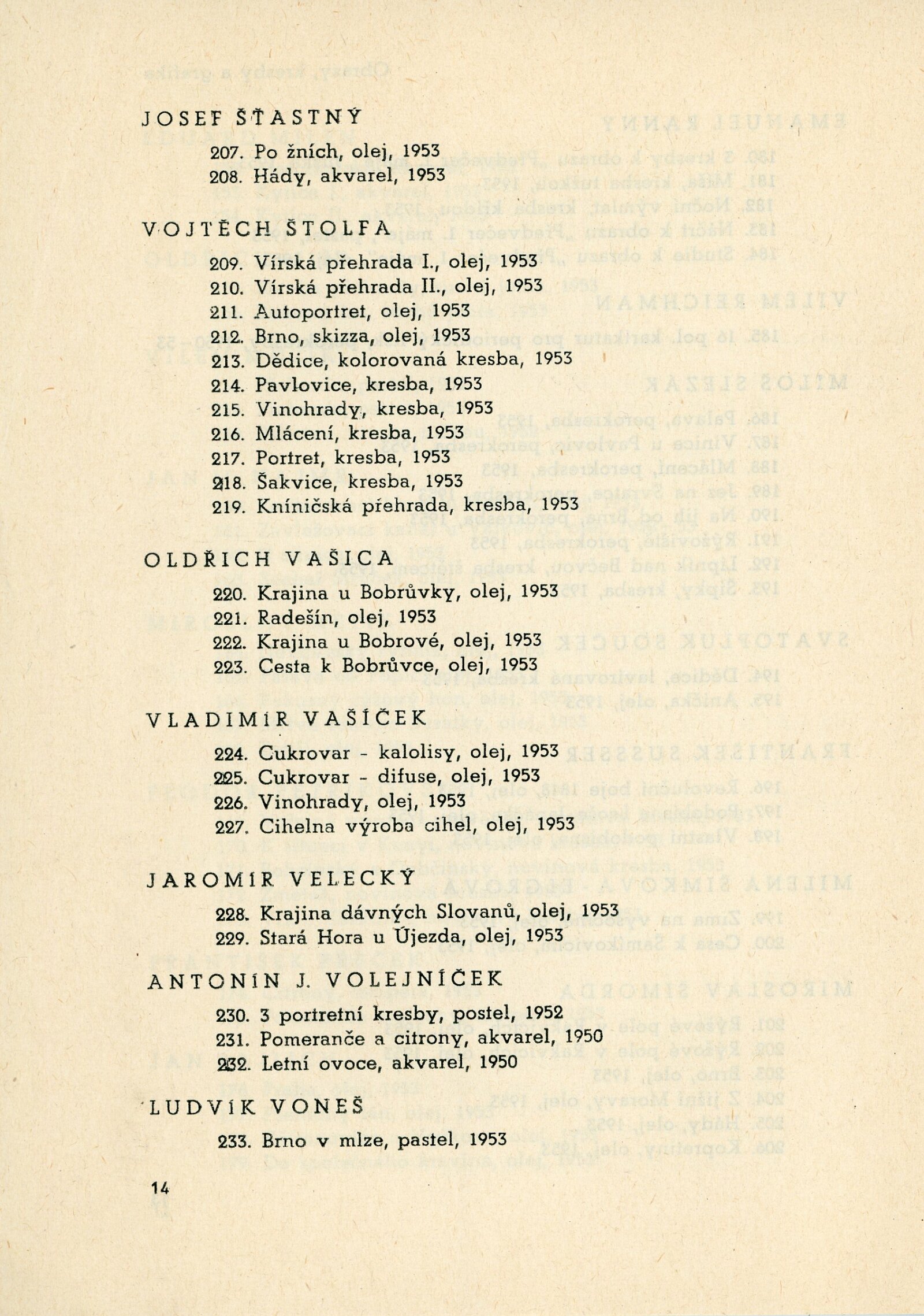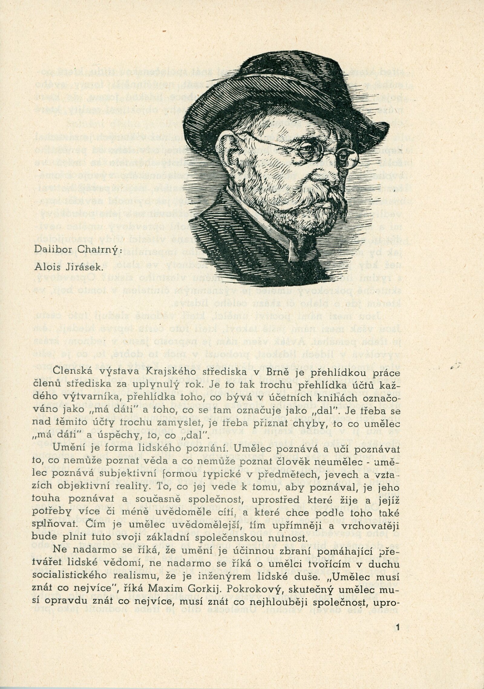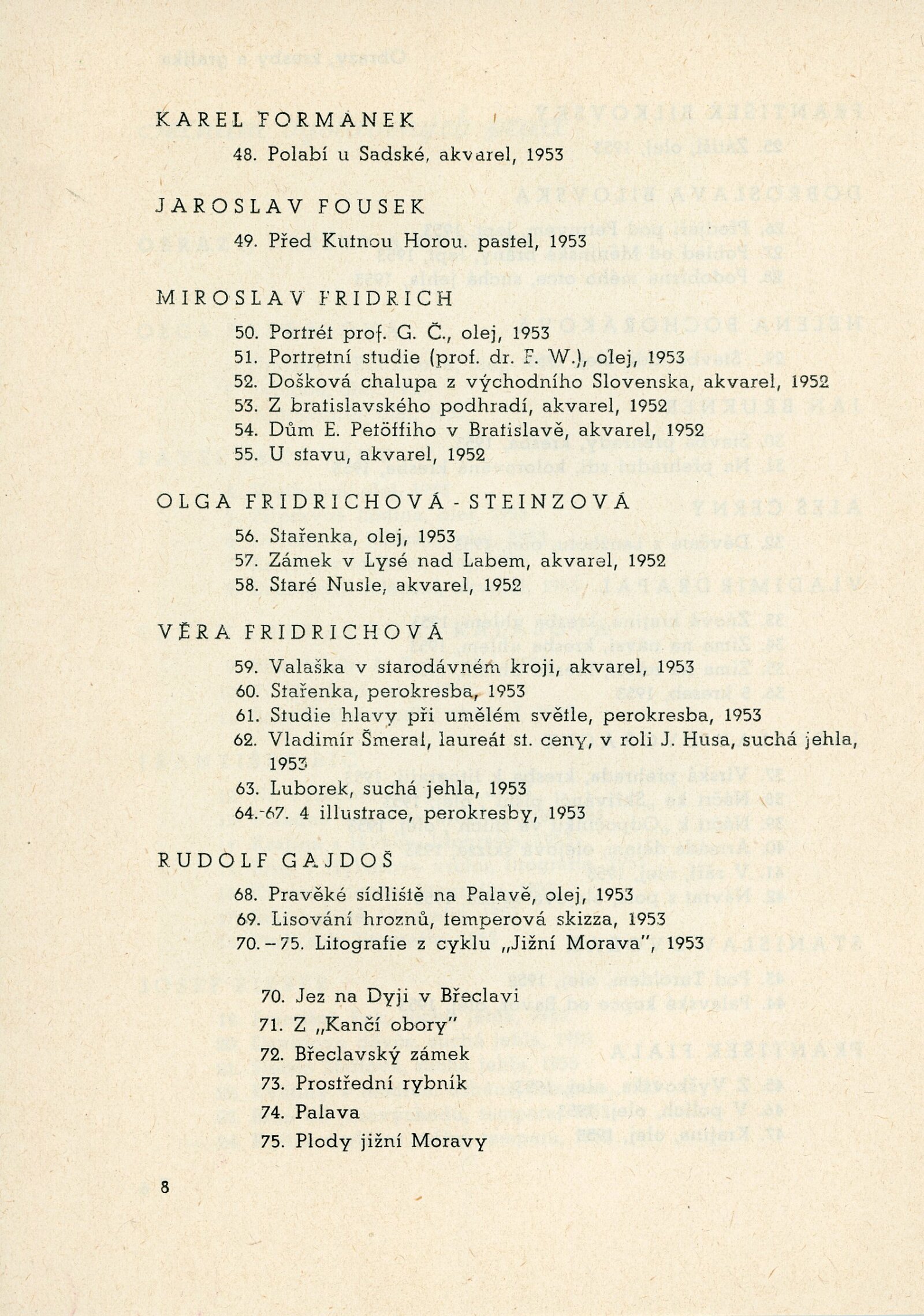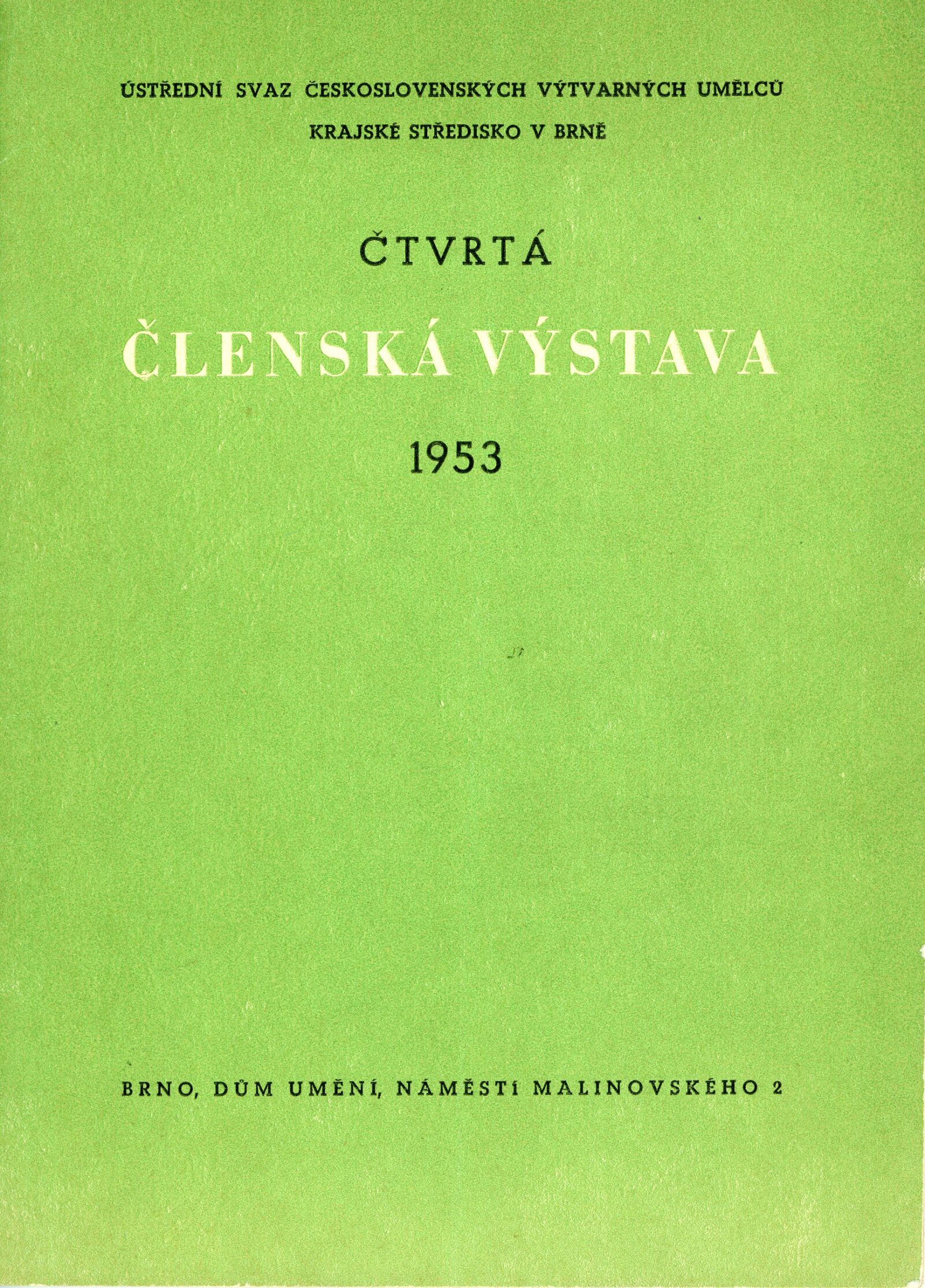IV. členská výstava krajského střediska ÚSČSVU v Brně: Dům umění, 13. 12. 1953 – 17. 1. 1954 / Text: Václav Zykmund. – Brno: ÚSČSVU, 1953. – 21 s., obr., DU 192. – MZK; MG; MMB