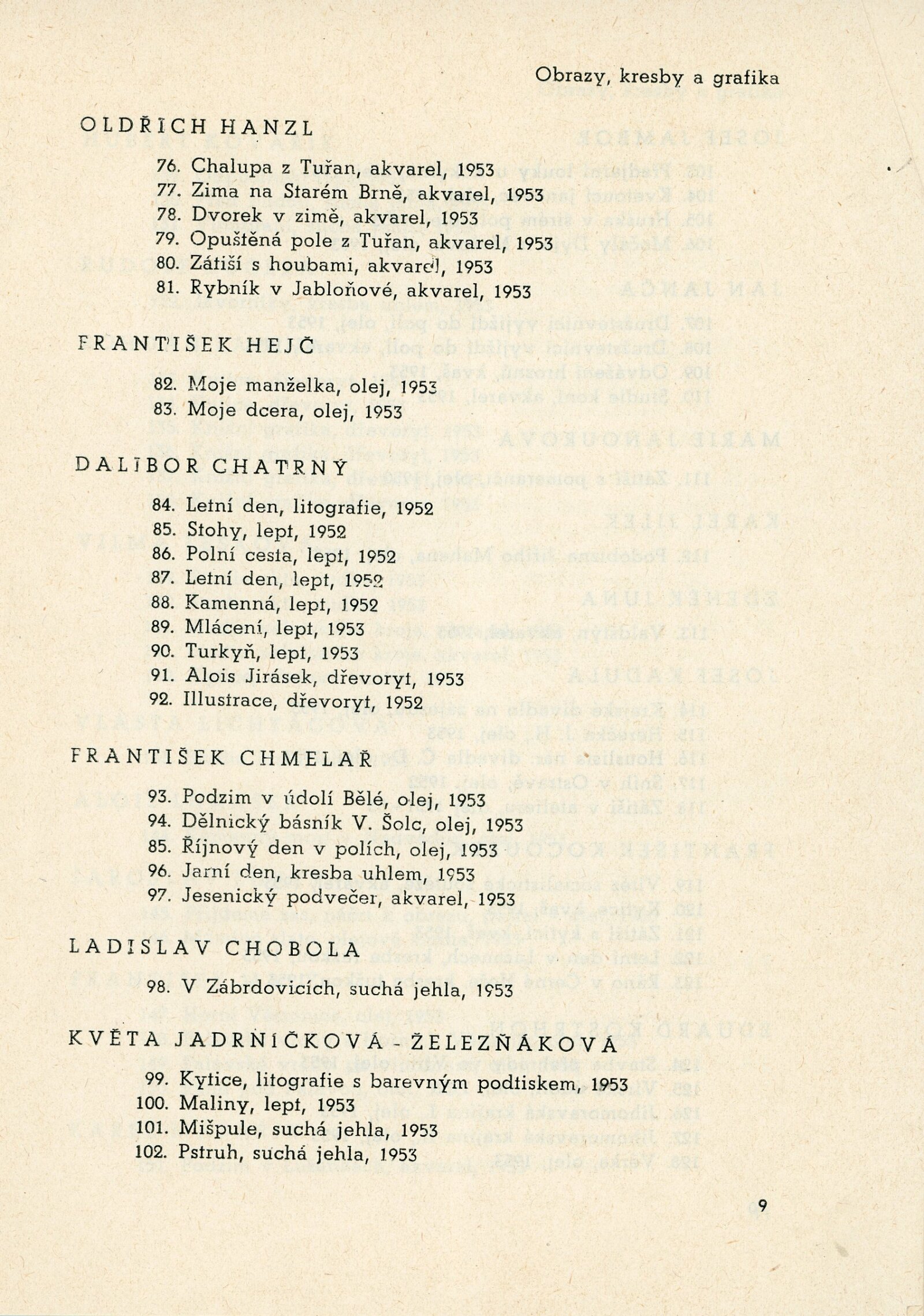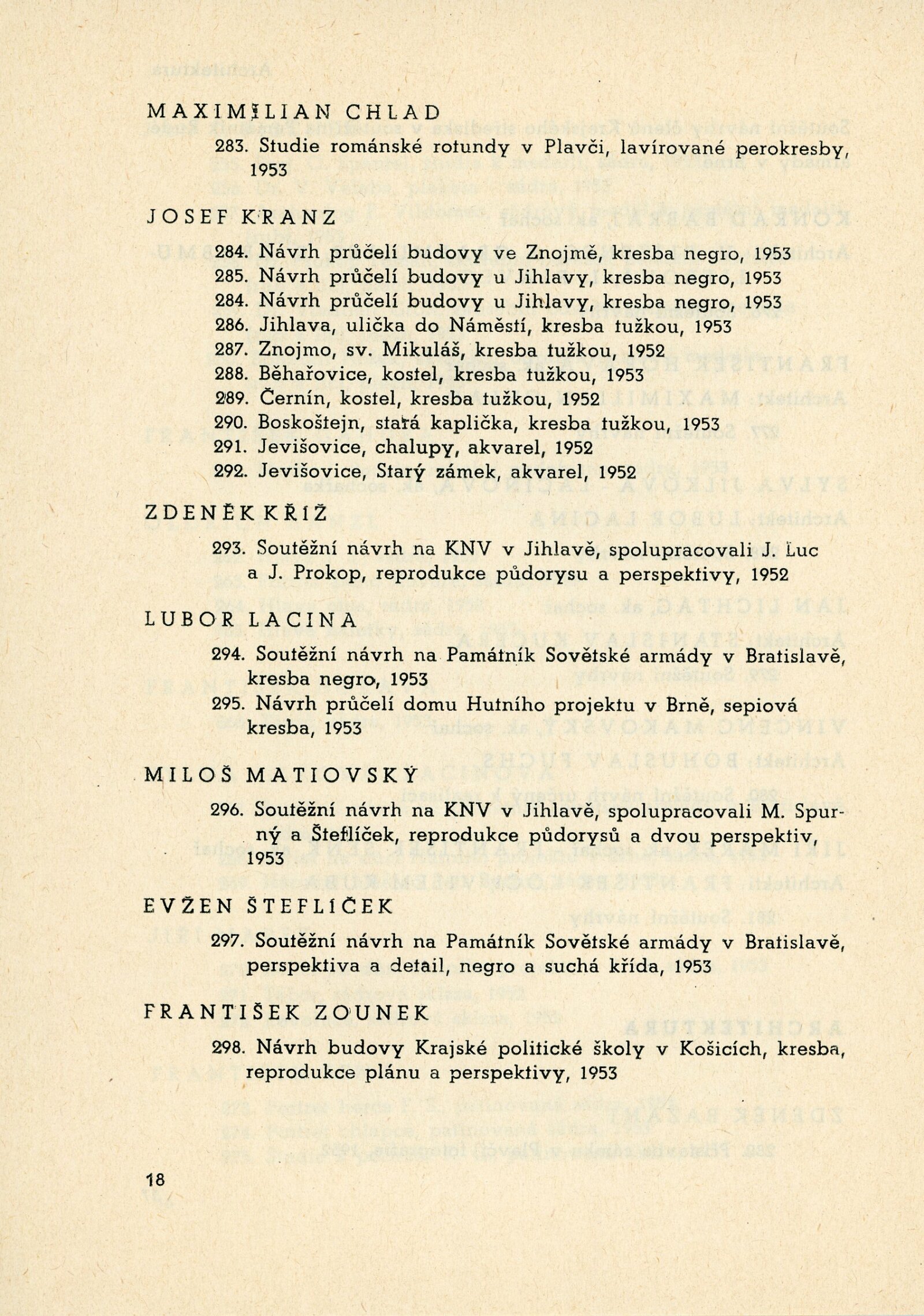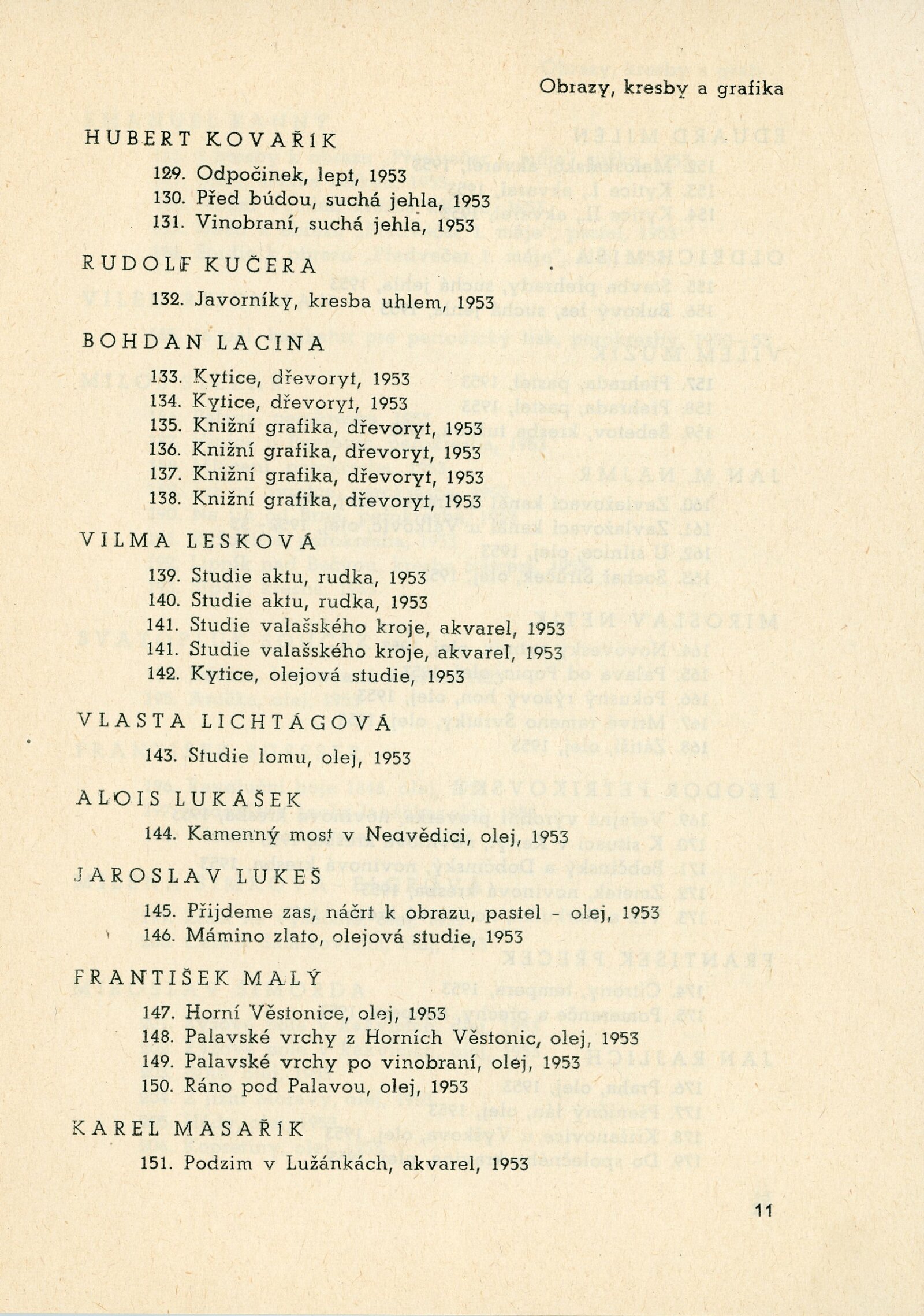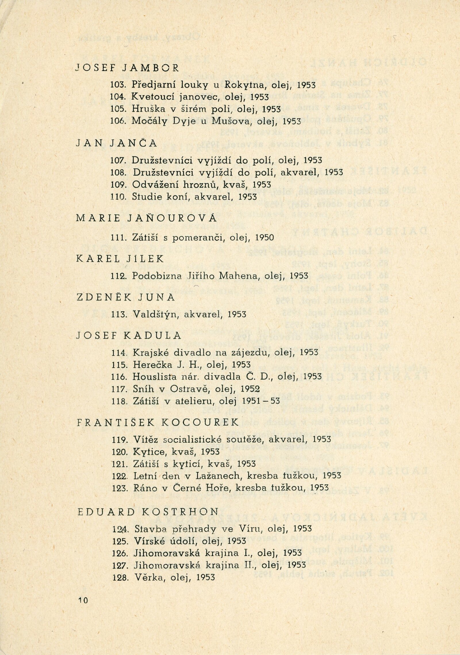 IV. členská výstava krajského střediska ÚSČSVU v Brně: Dům umění, 13. 12. 1953 – 17. 1. 1954 / Text: Václav Zykmund. – Brno: ÚSČSVU, 1953. – 21 s., obr., DU 192. – MZK; MG; MMB