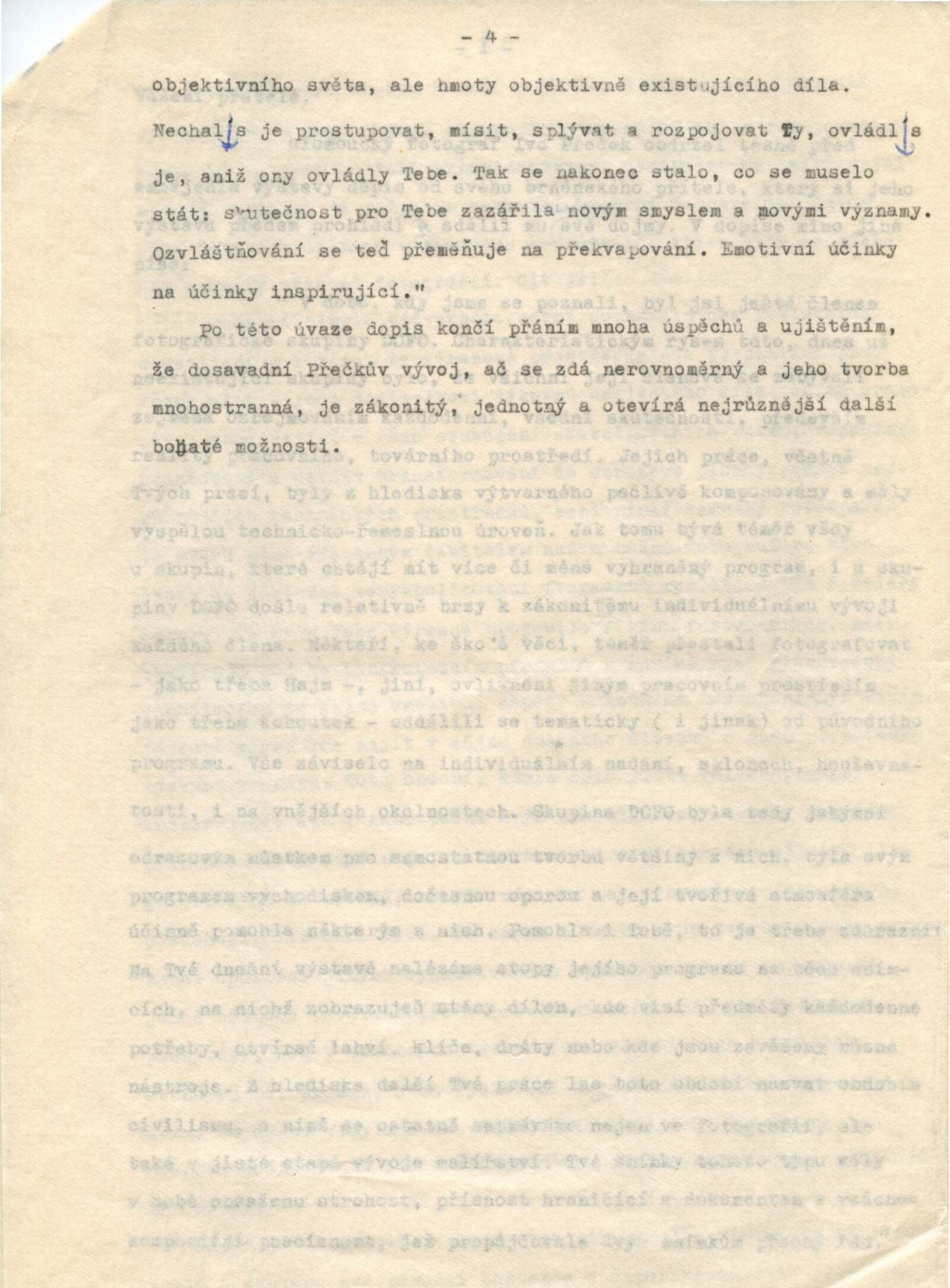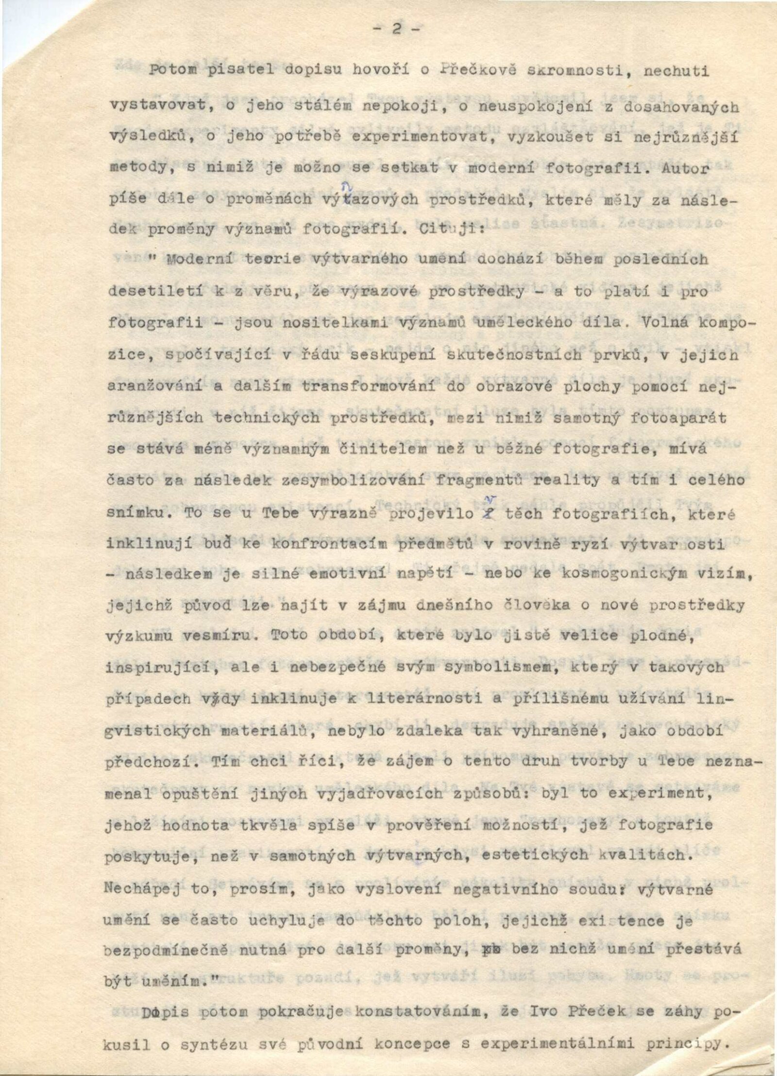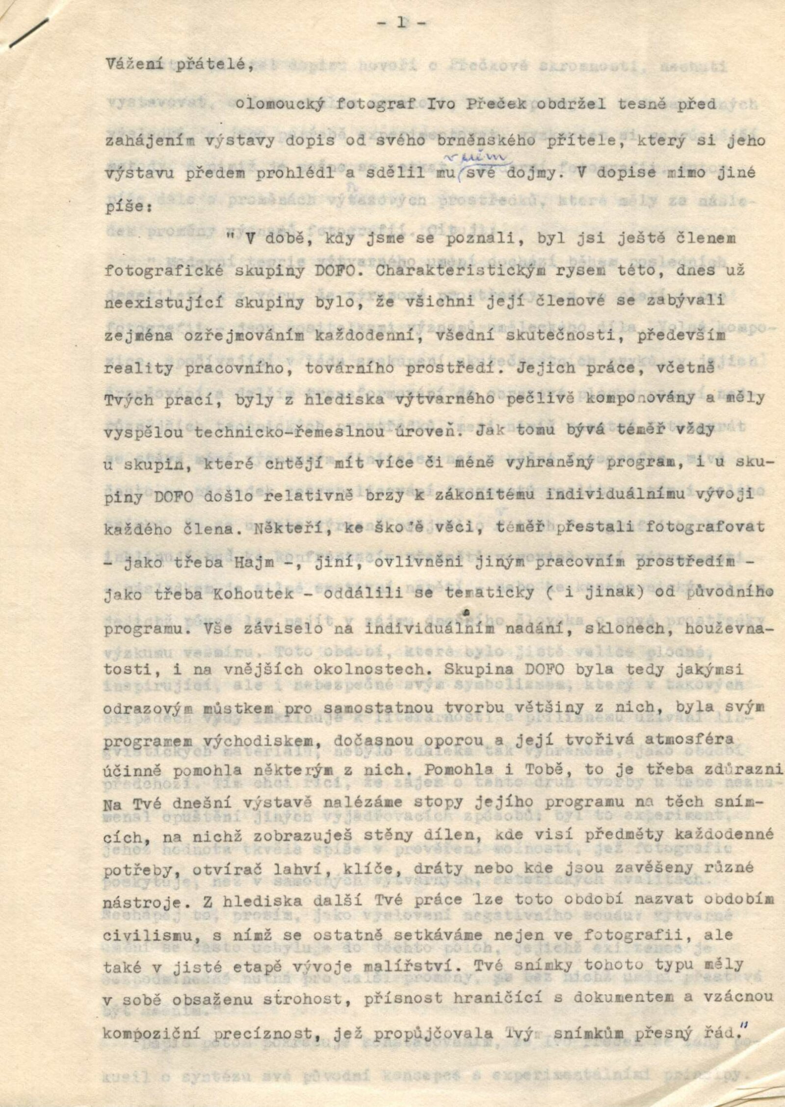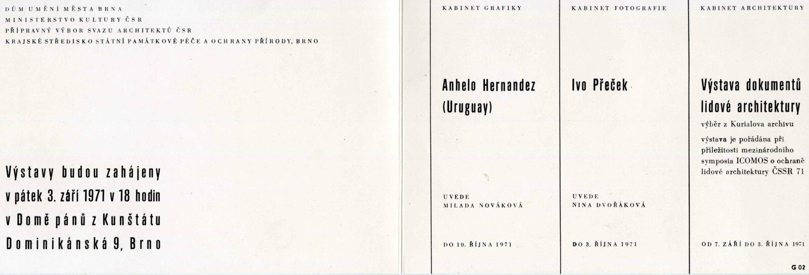 pozvánka, strojopis úvodního slova k vernisáži (Nina Dvořáková), korespondence o realizaci výstavy (Ivo Přeček a Nina Dvořáková), provozní korespondence, výstavní smlouva, žádost o povolení výstavy