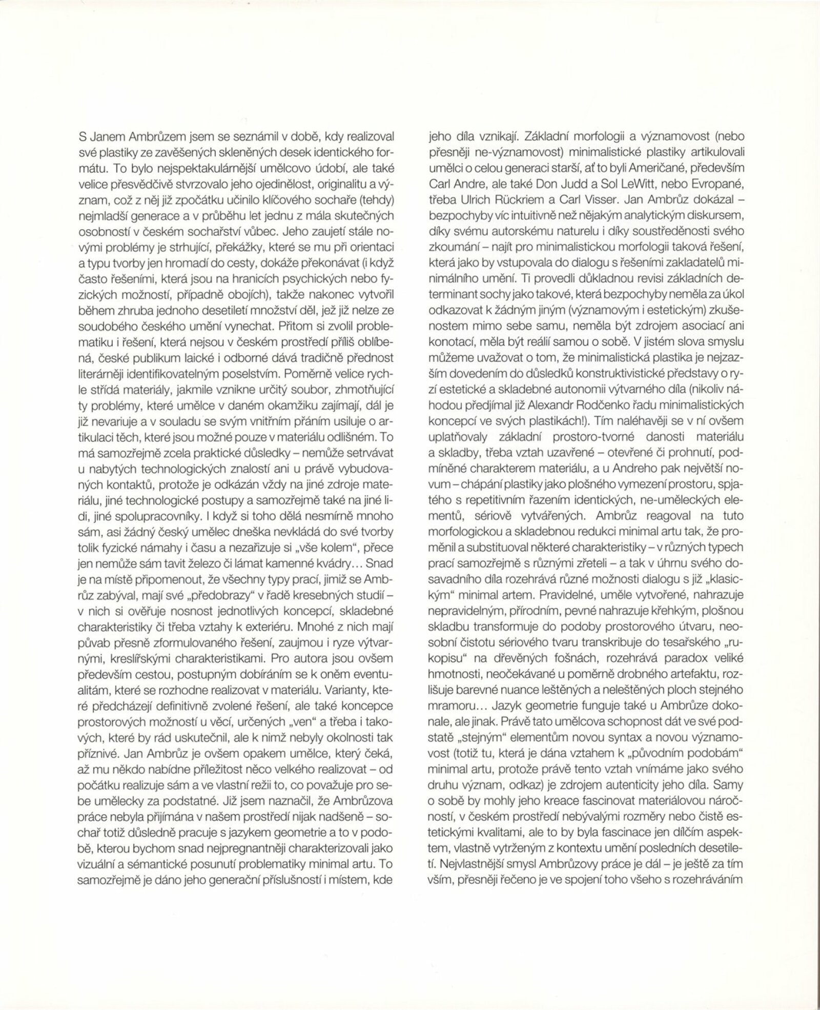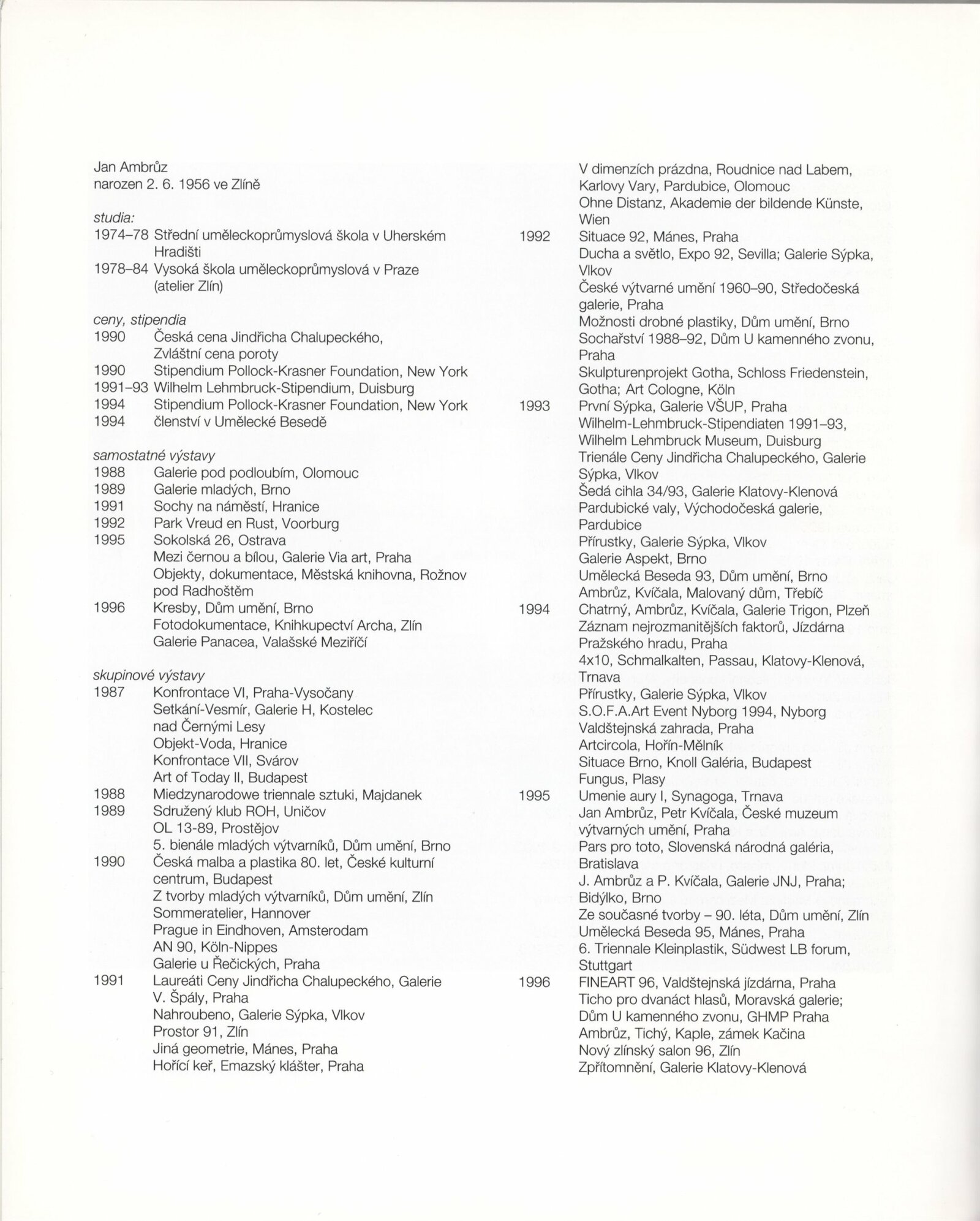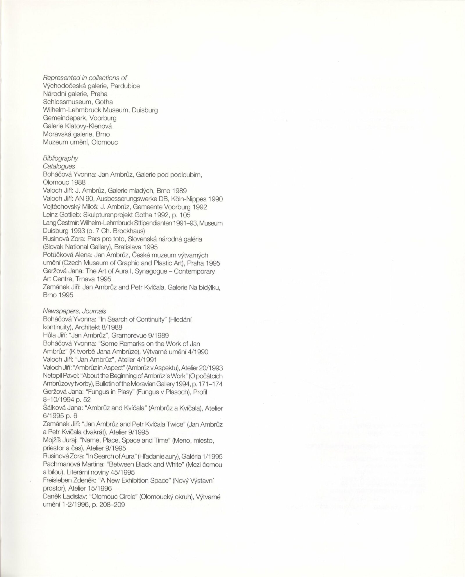 Jan Ambrůz. 1986–1996: Dům umění města Brna 31. 1. – 25. 2. 1996 / Text Jiří Valoch. - Brno: DUmB, - [74] s., obr. Životní data, výstavy, bibliografie DU 1017; MZK
