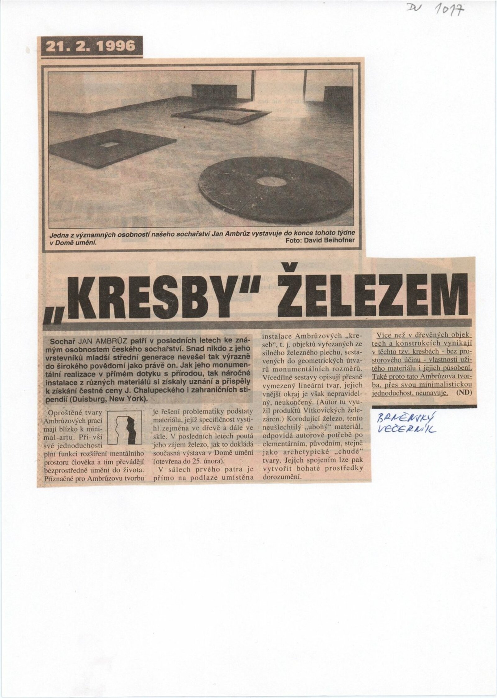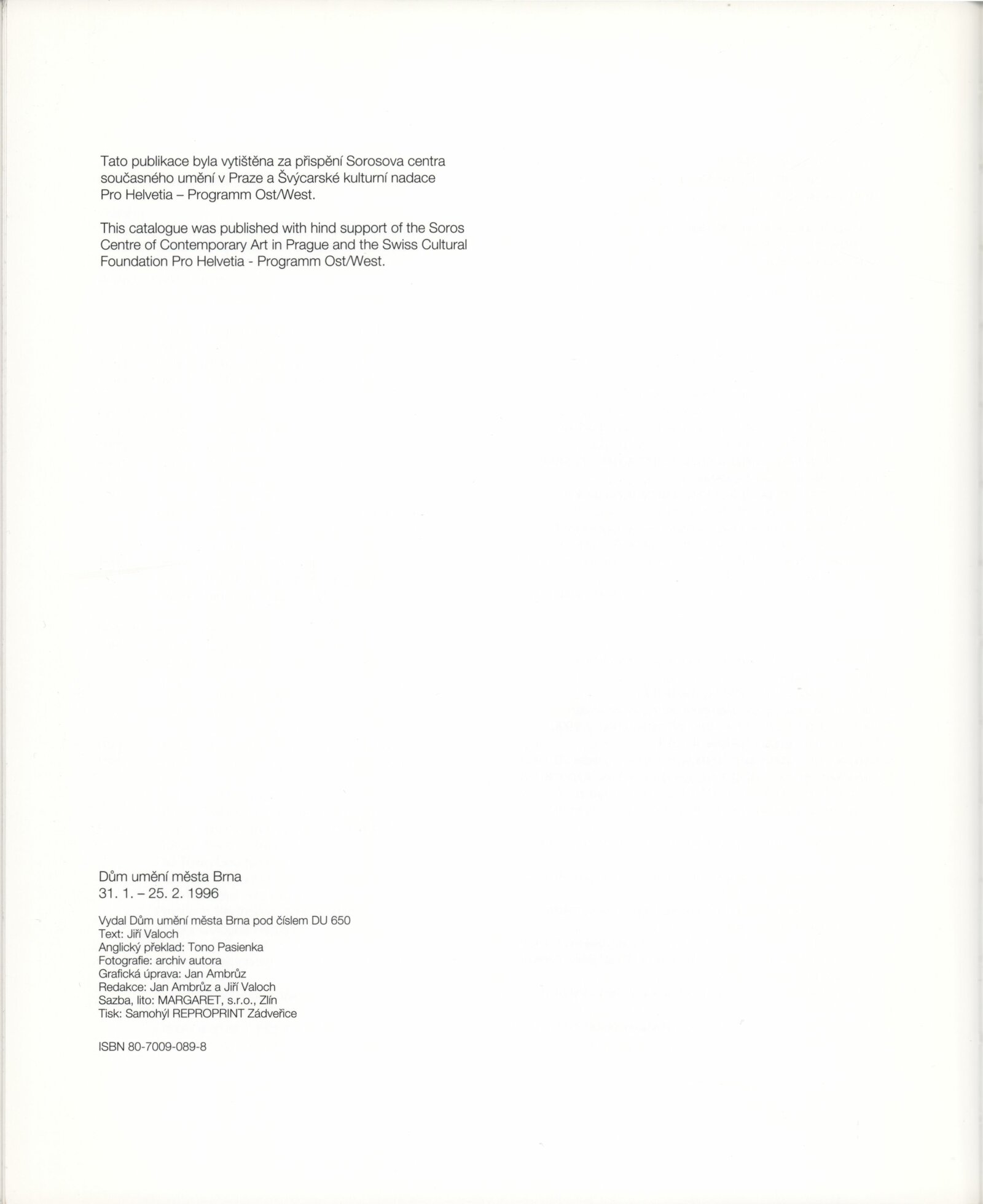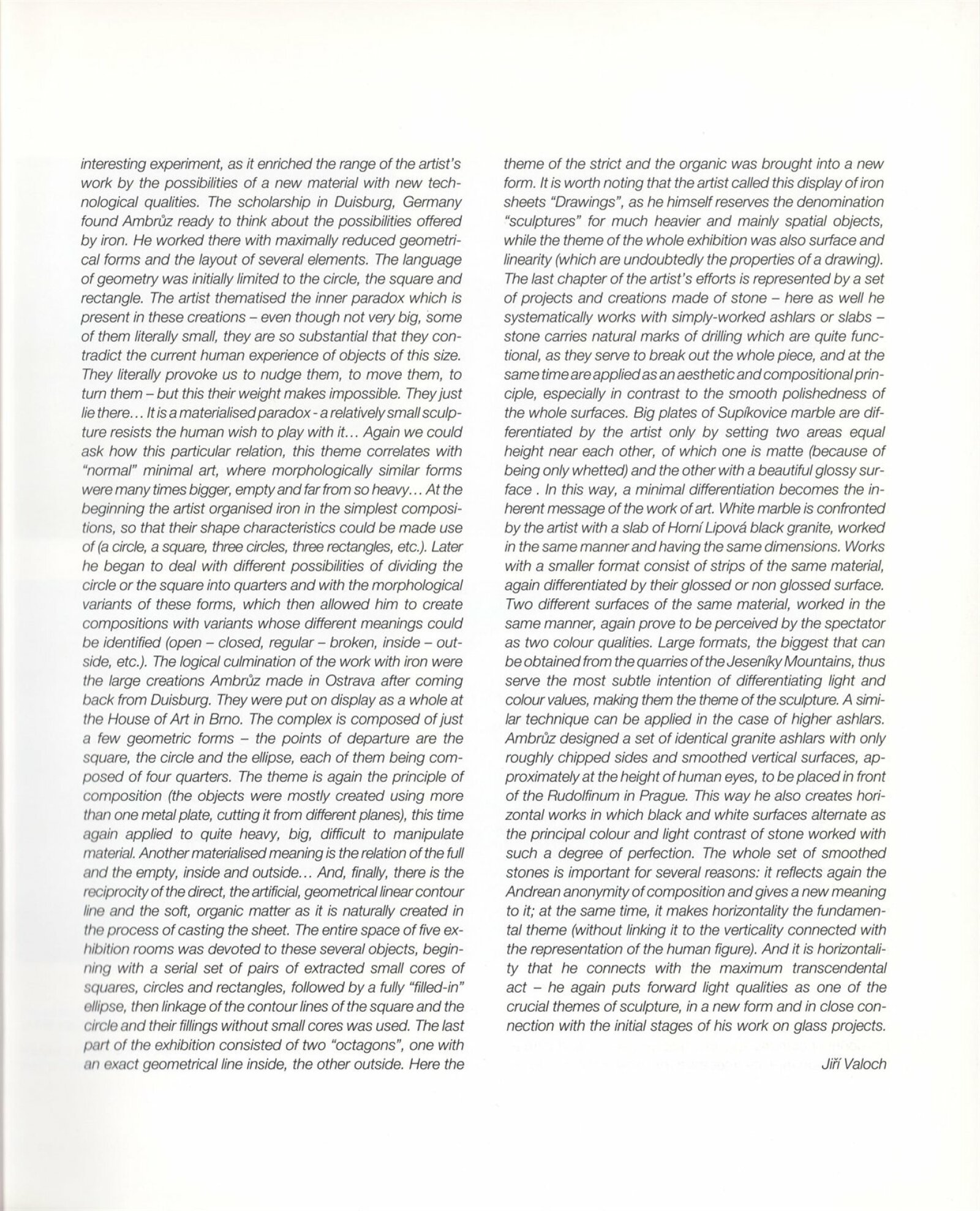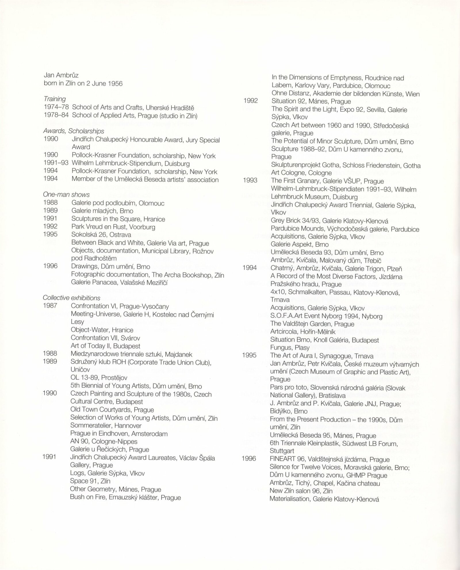 Jan Ambrůz. 1986–1996: Dům umění města Brna 31. 1. – 25. 2. 1996 / Text Jiří Valoch. - Brno: DUmB, - [74] s., obr. Životní data, výstavy, bibliografie DU 1017; MZK