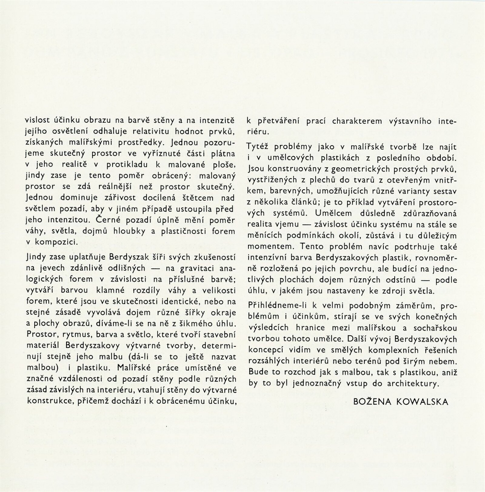 Jan Berdyszak. Malba, plastika: Dům umění města Brna / Dům pánů z Kunštátu, 17. 11. – 5. 12. 1971 / Text: Božena Kowalska. – Brno: DUmB, 1971. – 12 s., obr., životopis, DPK 483. – MZK; MG; MMB