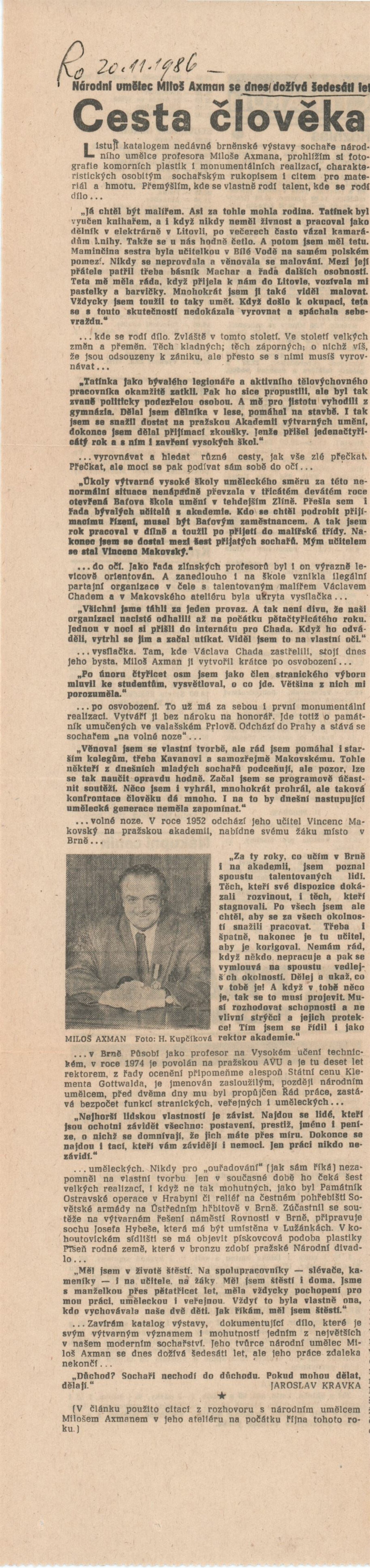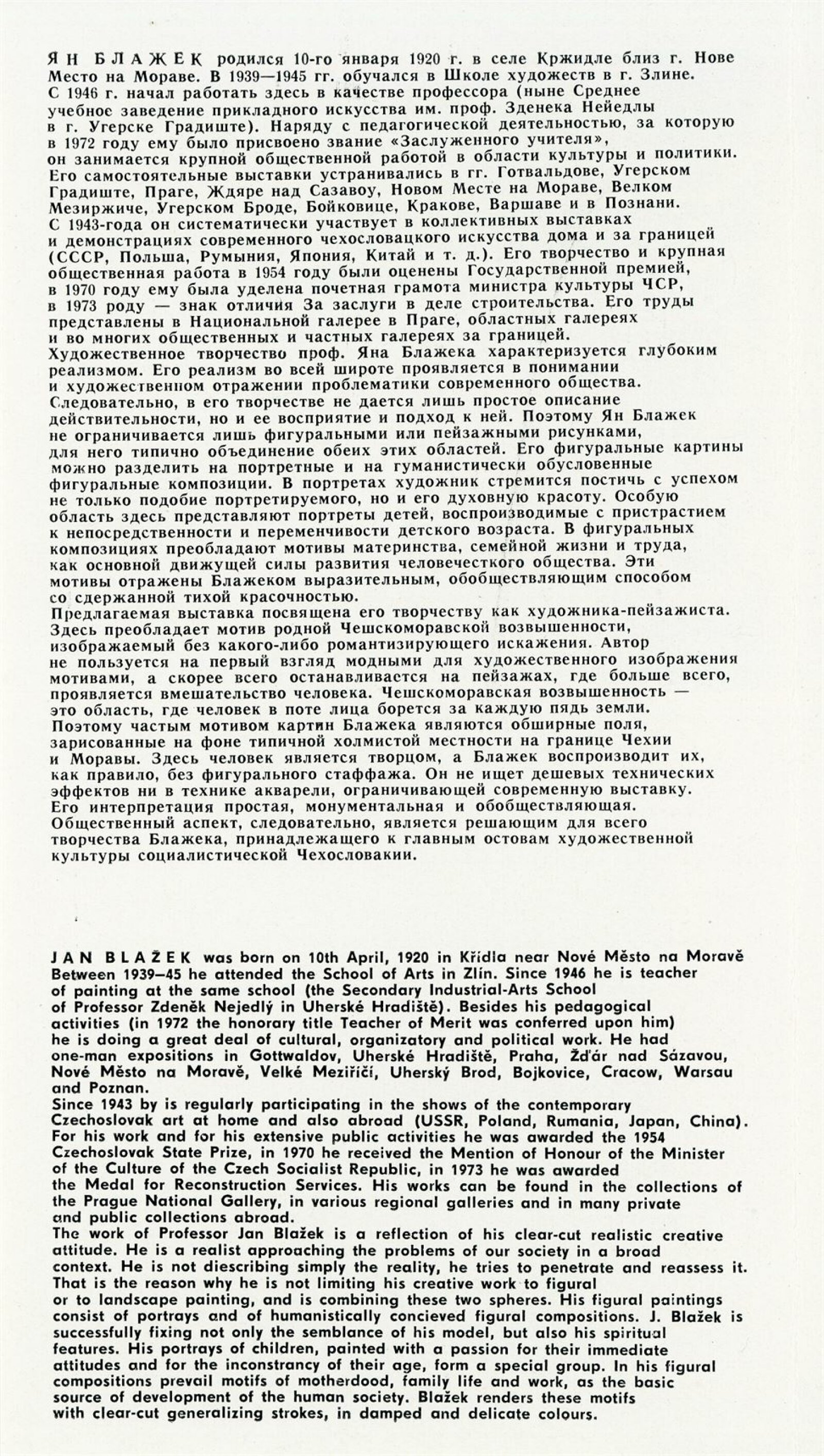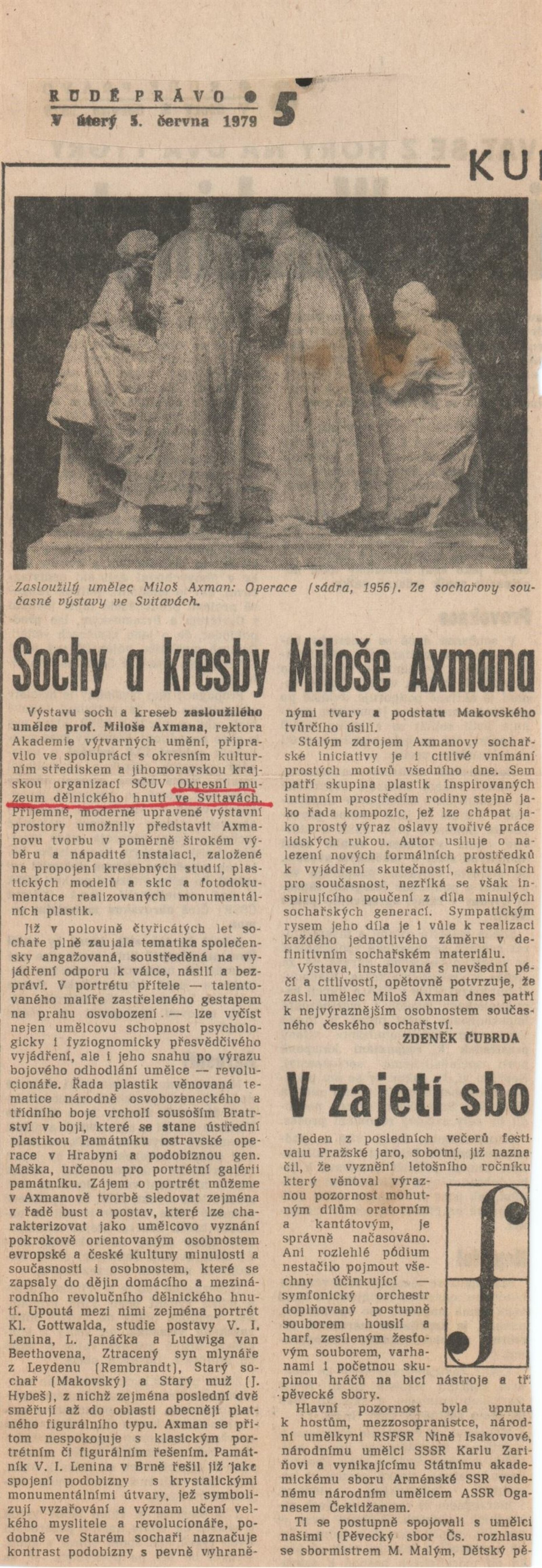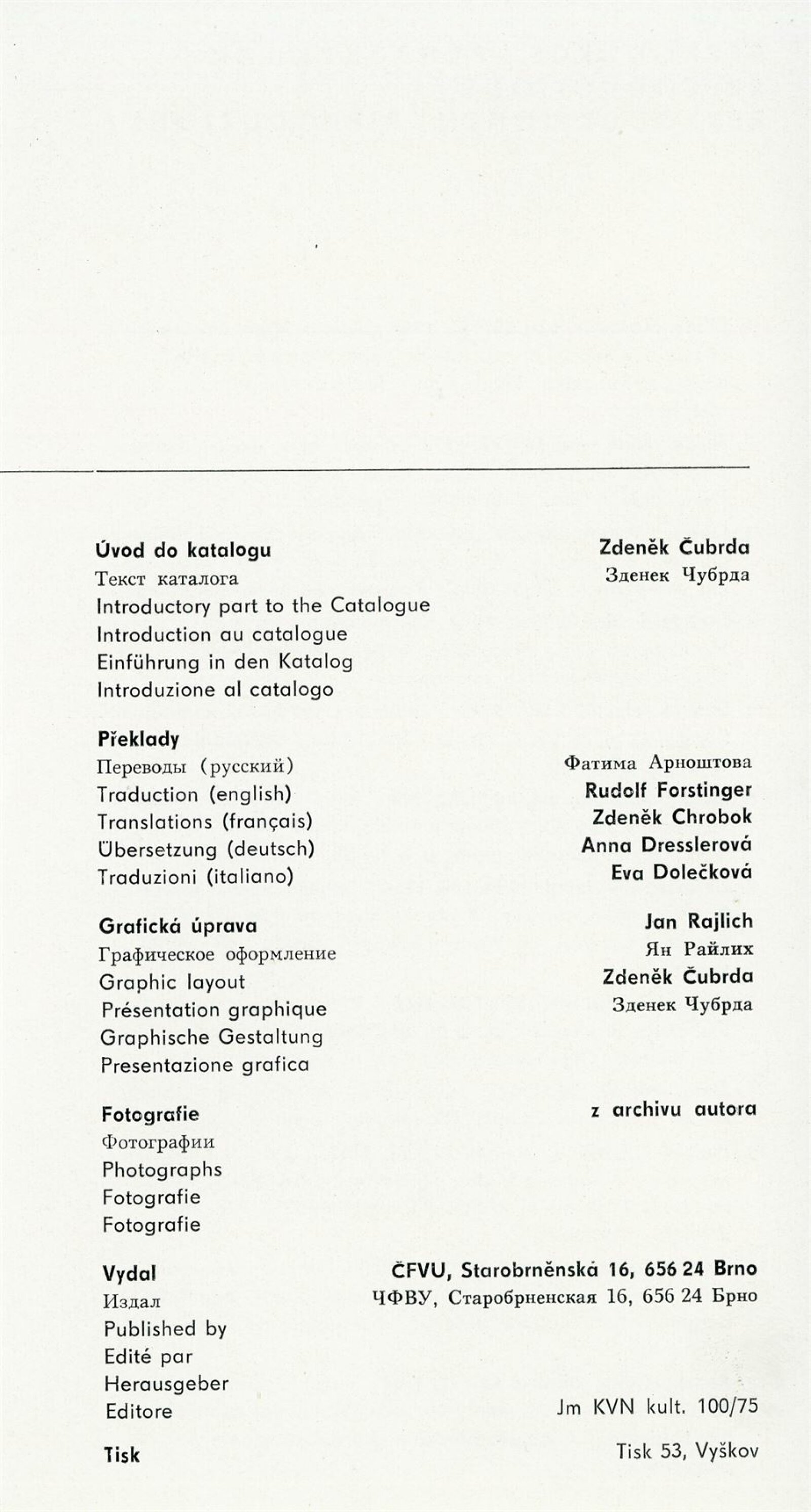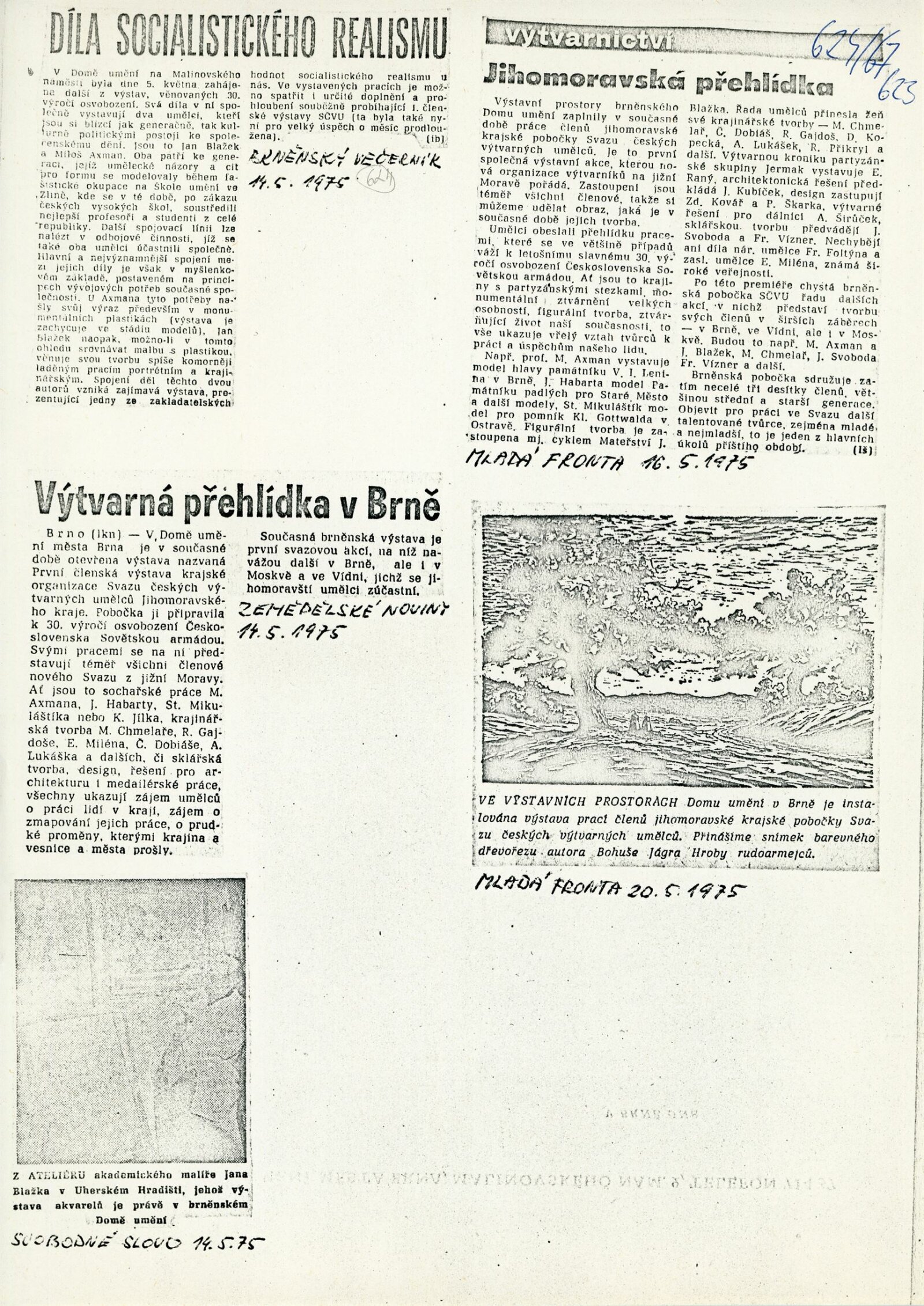 Miloš Axman. Sochy: Dům umění, 66. výstava v Galerii Jaroslava Krále, 6. 5. – 25. 5. 1975 / Text: Zdeněk Čubrda. – Brno: ČFVU, 1975. – 14 s., obr.. seznam vystavených prací 1 s., portrét, životopis, monumentální realizace, ceny, DU 624. – MZK; MG / Jan Blažek: Dům umění, 66. výstava v Galerii Jaroslava Krále, 6. 5. – 25. 5. 1975 / Text: Zdeněk Čubrda. – Brno: ČFVU, 1975. – 14 s., obr., seznam vystavených prací 1 s., portrét, životopis, ceny, DU 624. – MZK; MG