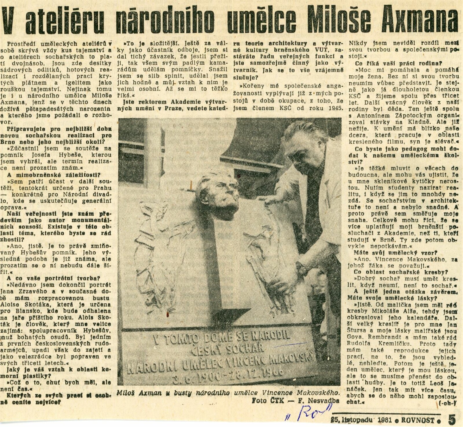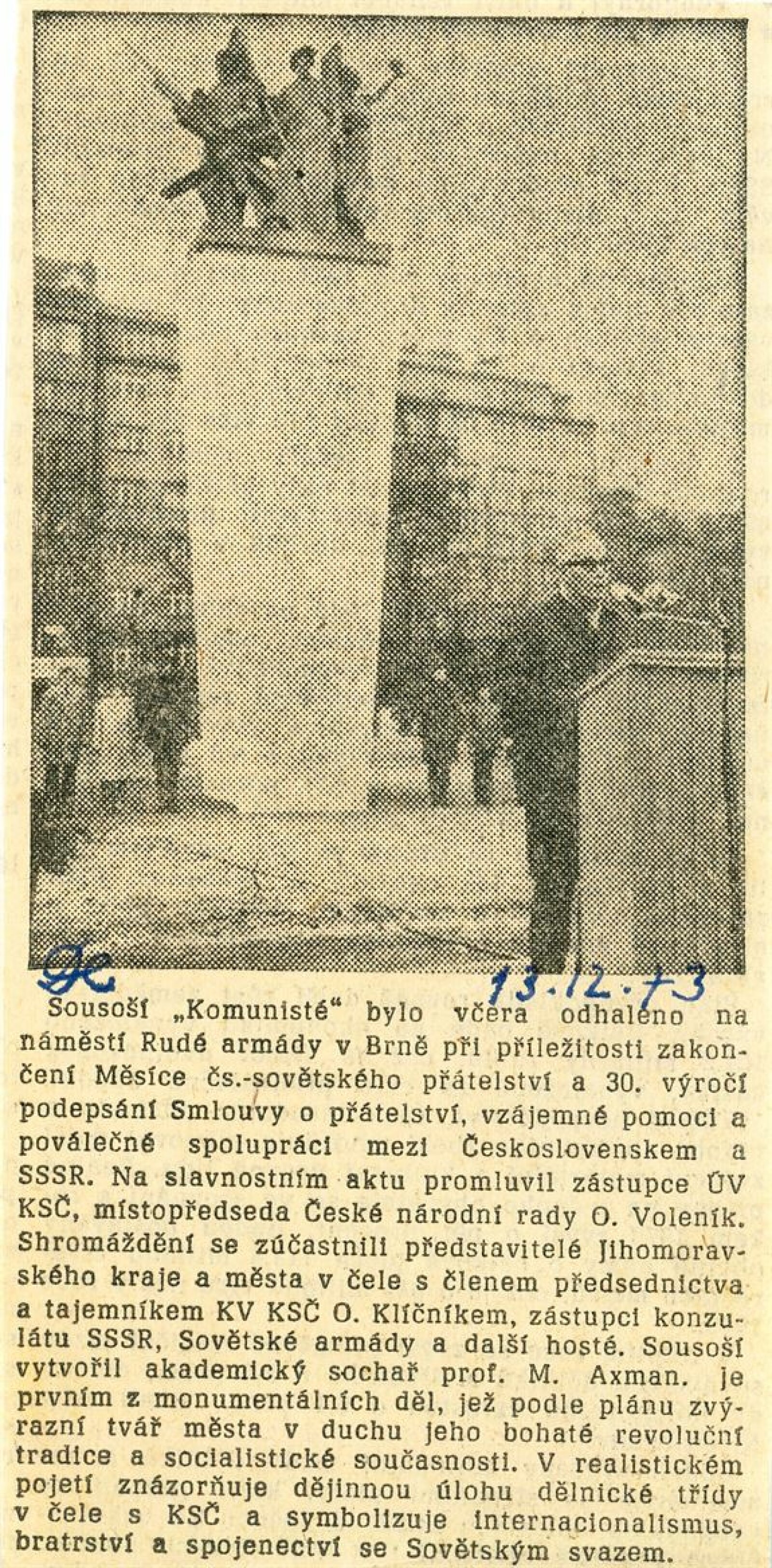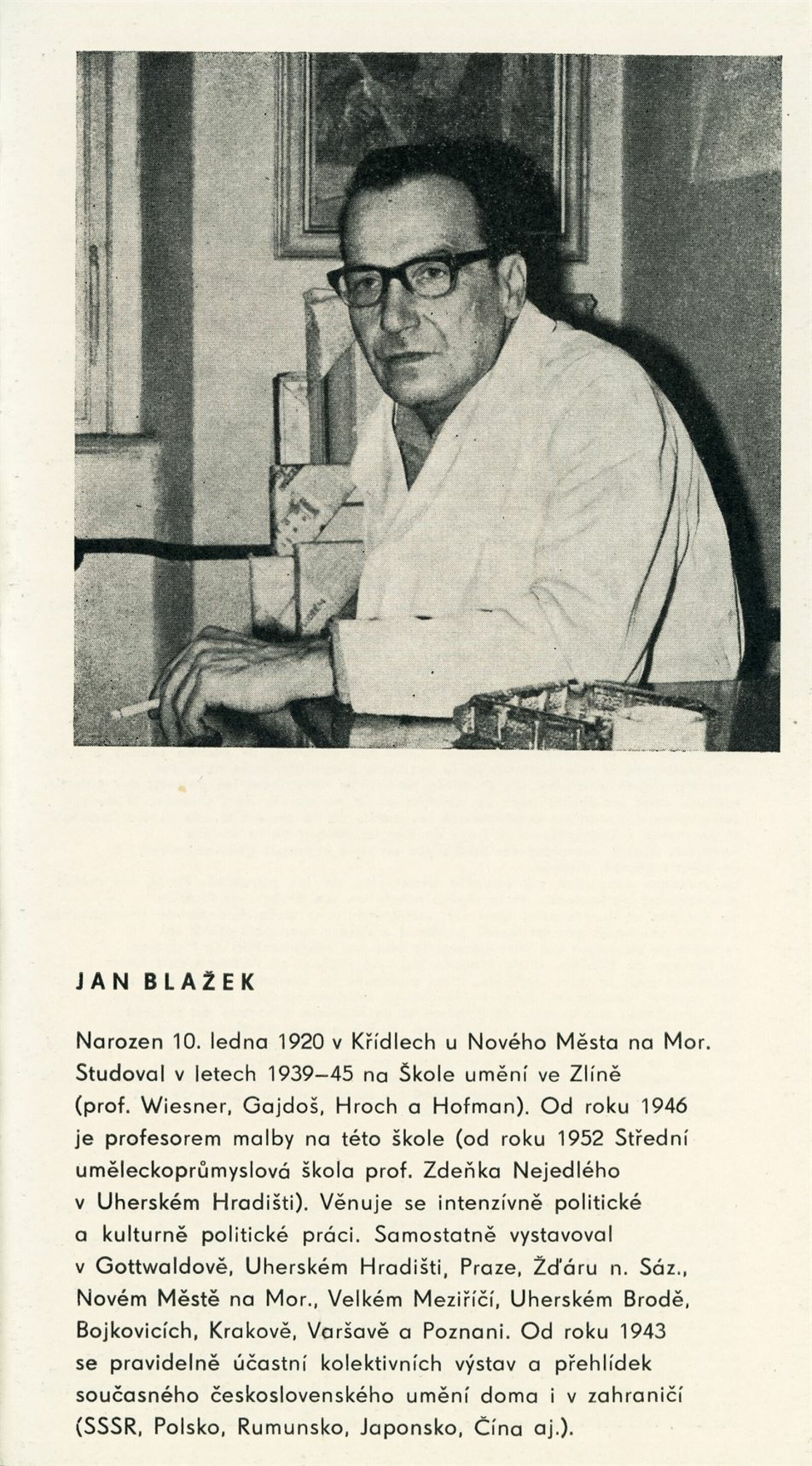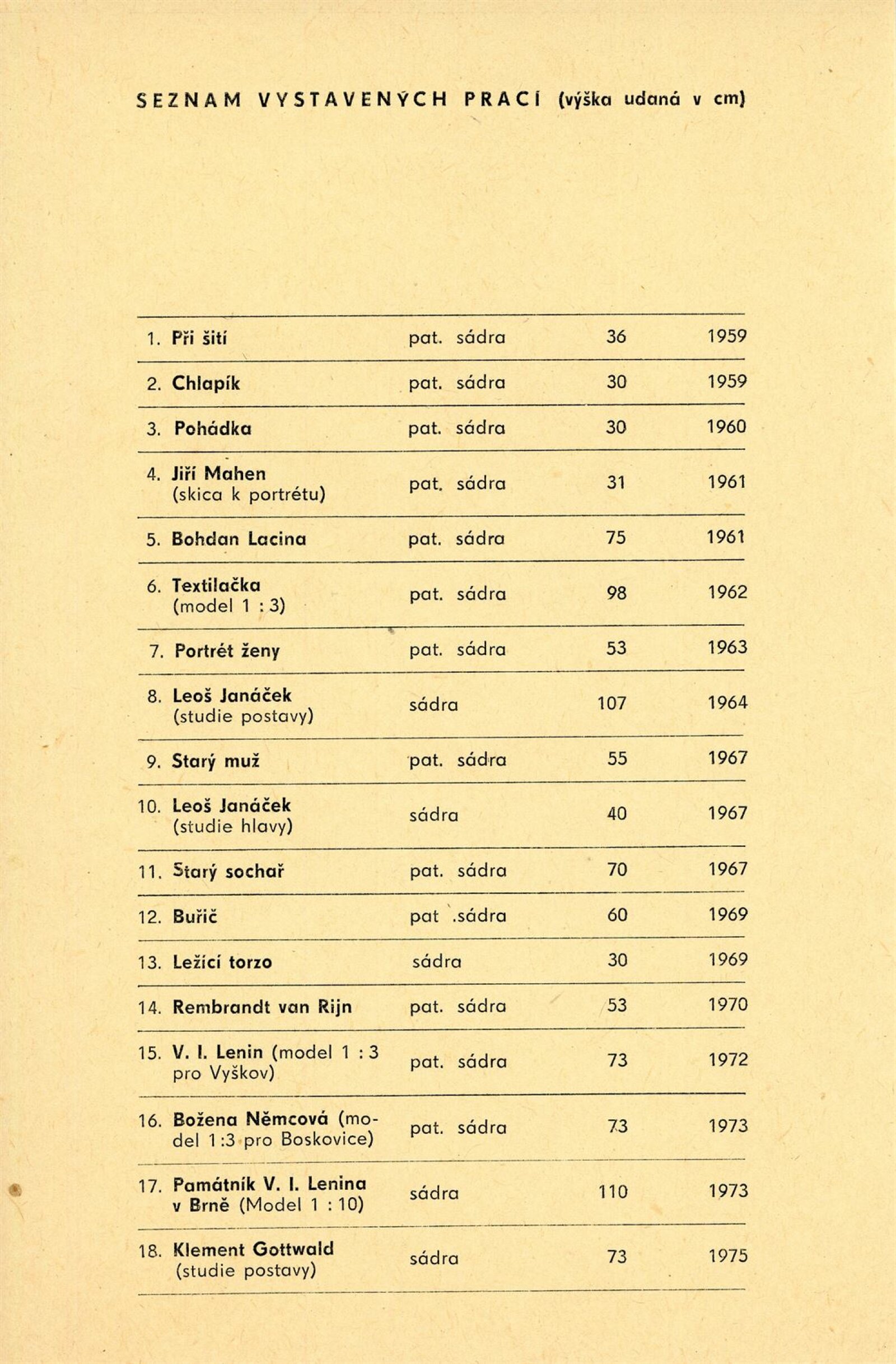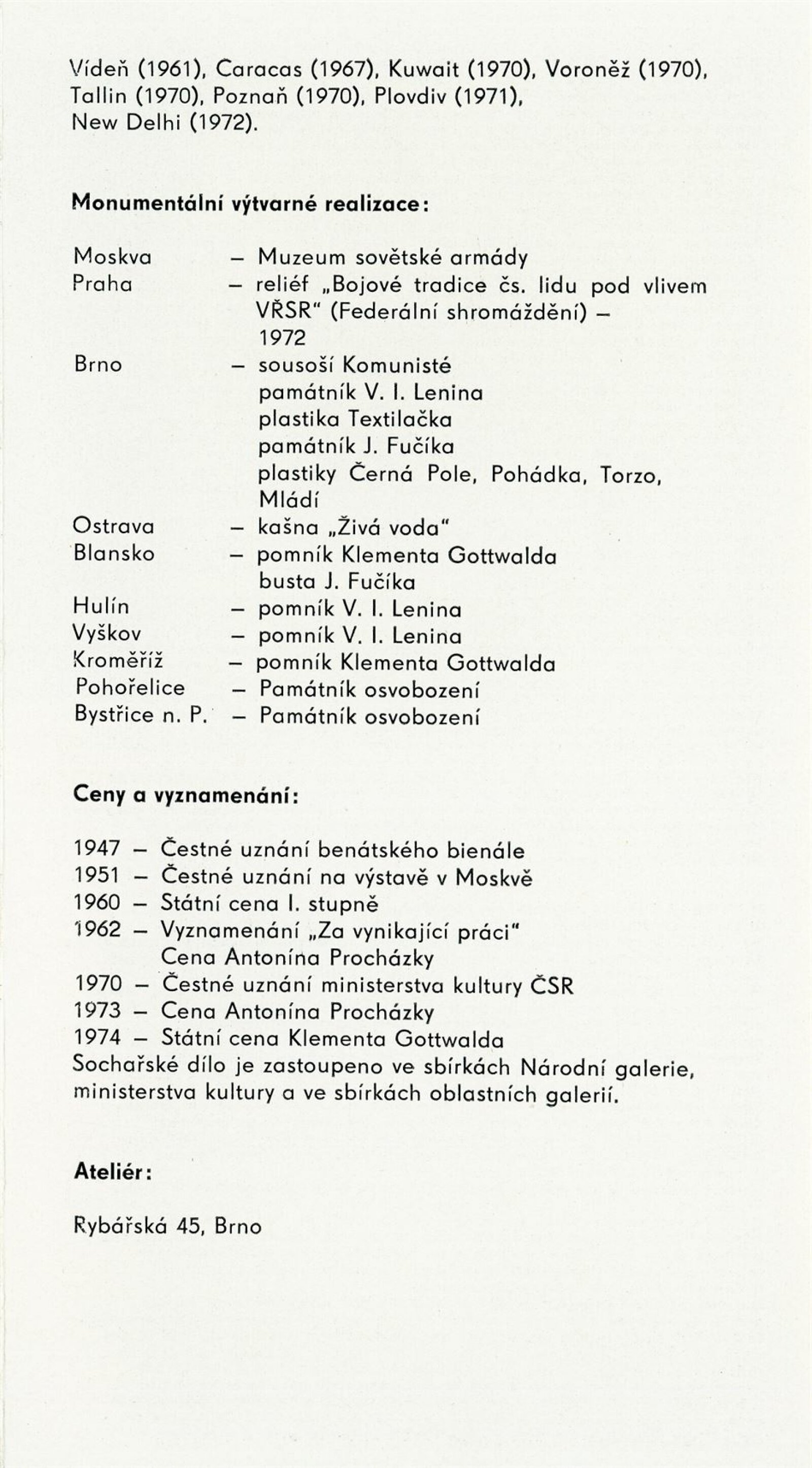 Miloš Axman. Sochy: Dům umění, 66. výstava v Galerii Jaroslava Krále, 6. 5. – 25. 5. 1975 / Text: Zdeněk Čubrda. – Brno: ČFVU, 1975. – 14 s., obr.. seznam vystavených prací 1 s., portrét, životopis, monumentální realizace, ceny, DU 624. – MZK; MG / Jan Blažek: Dům umění, 66. výstava v Galerii Jaroslava Krále, 6. 5. – 25. 5. 1975 / Text: Zdeněk Čubrda. – Brno: ČFVU, 1975. – 14 s., obr., seznam vystavených prací 1 s., portrét, životopis, ceny, DU 624. – MZK; MG