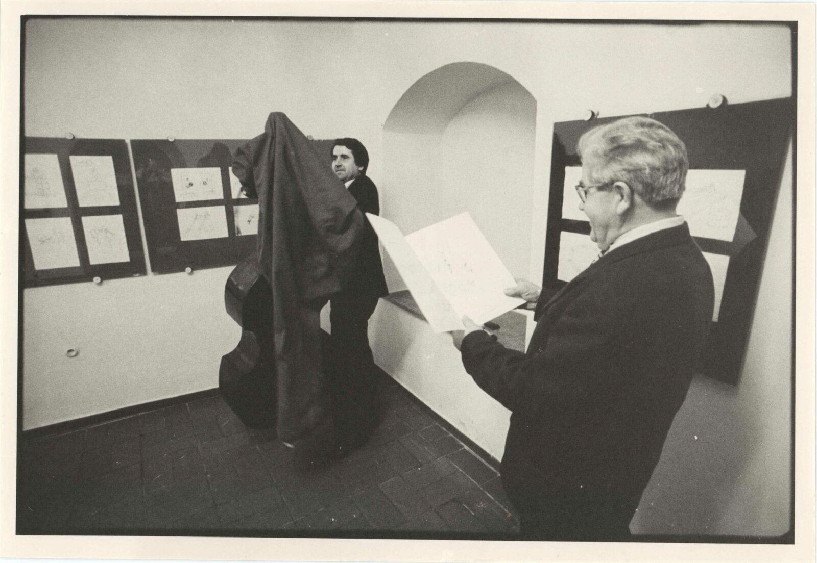 pozvánka, katalog, rozhodnutí o povolení výstavy, strojopis katalogu, info o počtu a rozměrech skel v KG, KF, l. patře, hale a kině Družba, fotografie z vernisáže, korespondence, článek o Janu Hrubém v novinách (Rovnost, č. 5, 17. října 1987)