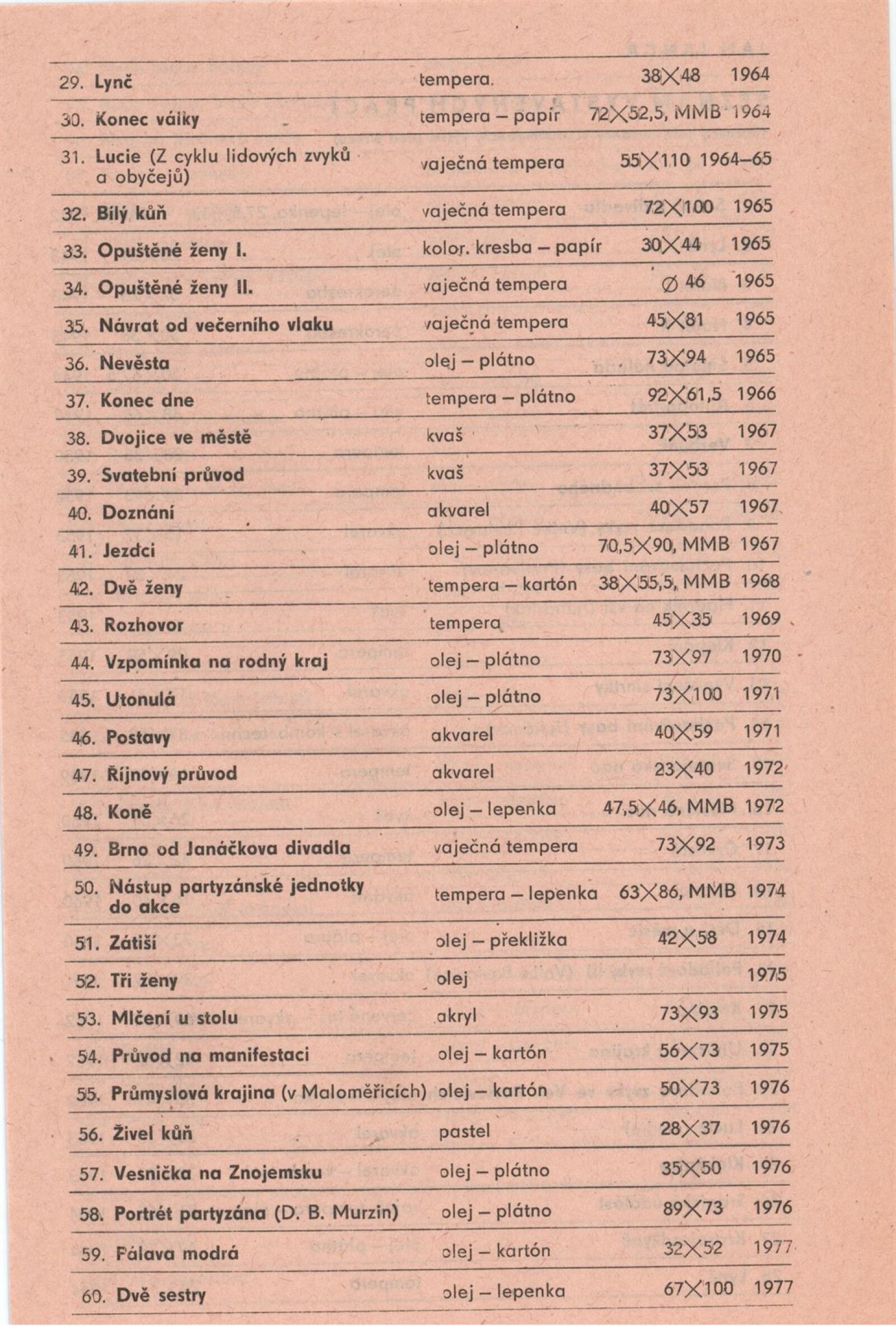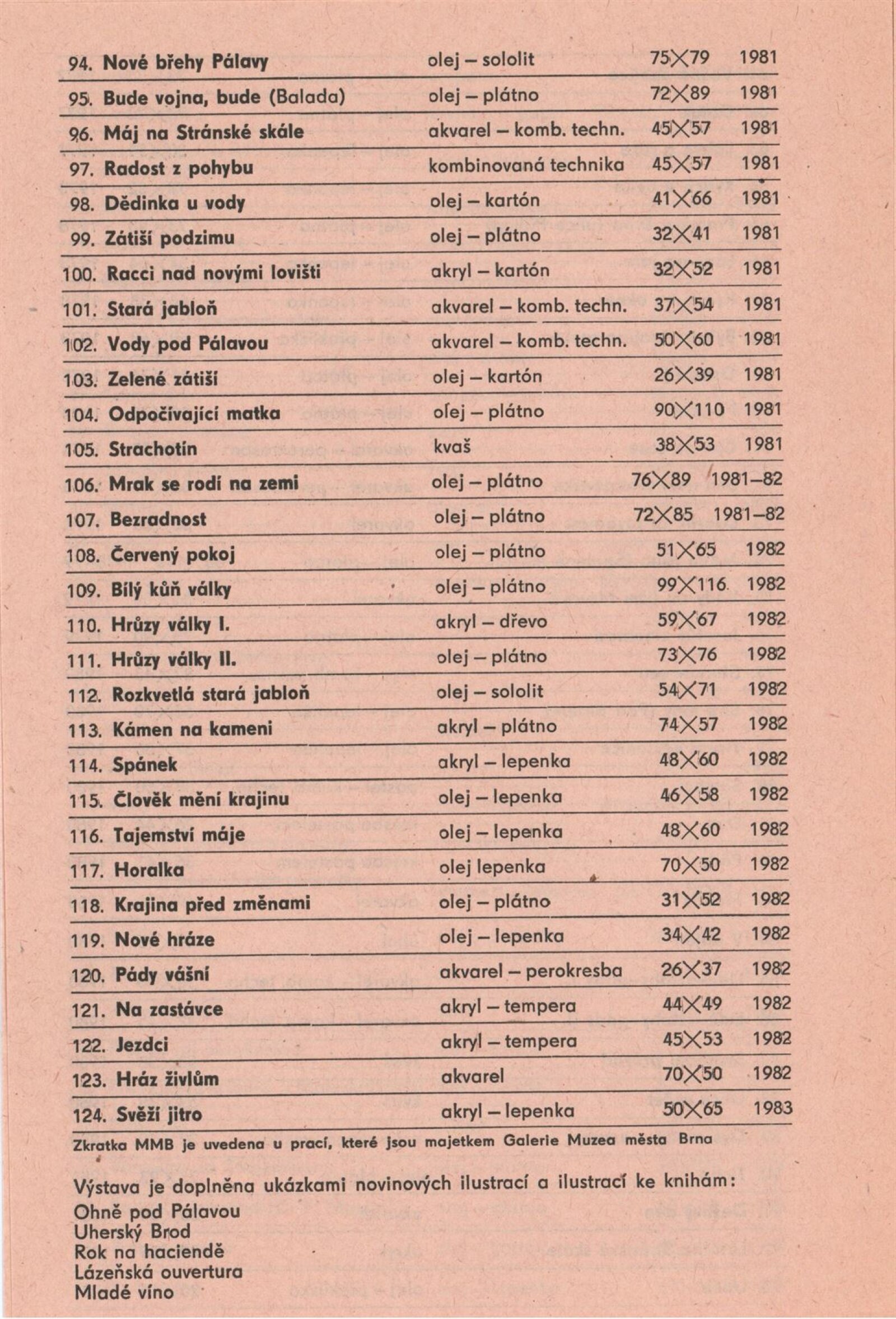 pozvánka, katalog, seznam vystavených děl, fotografie ke katalogu, žádosti o výpůjčku, smlouvy o výpůjčce a reversy, žádost o výstavní termín, recenze v tisku