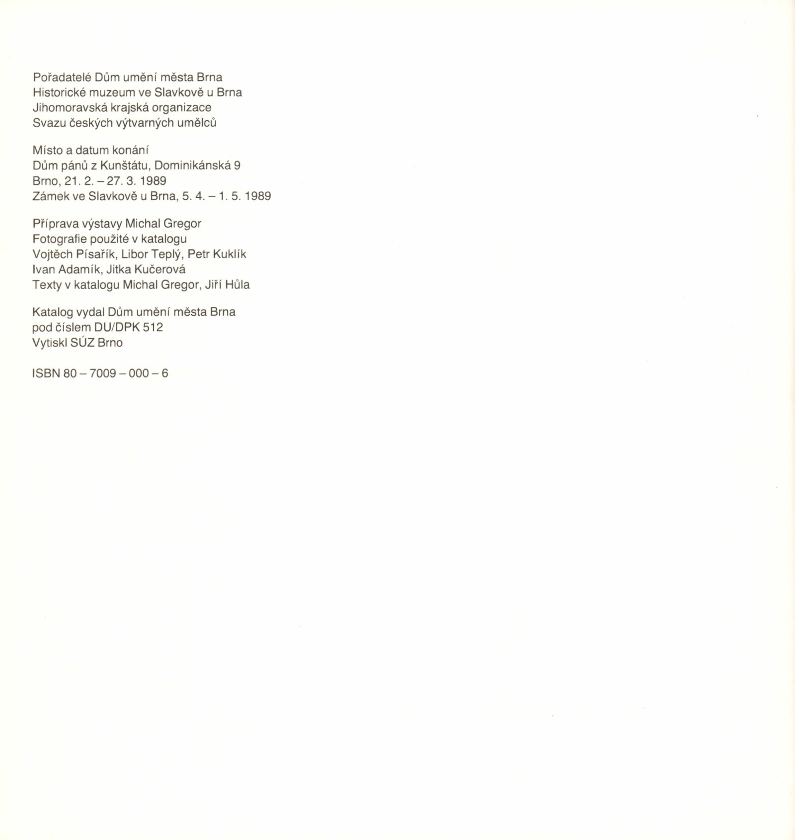 pozvánka, katalog, strojopis a podklady pro katalog, fotografie výstavy, provozní korespondence, žádost o výstavní termín, žádost a potvrzení o konání výstavy, recenze v tisku