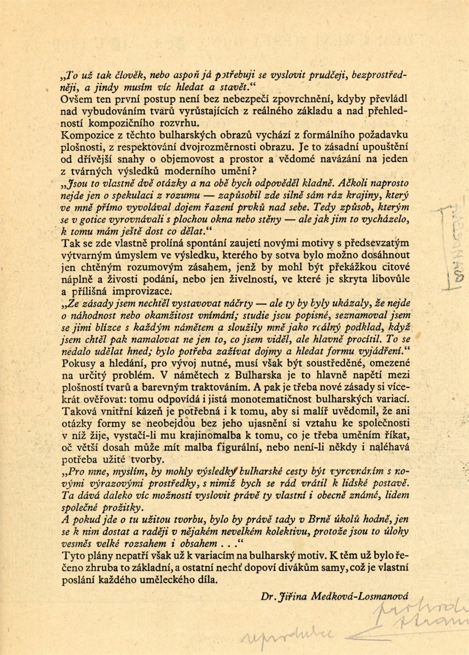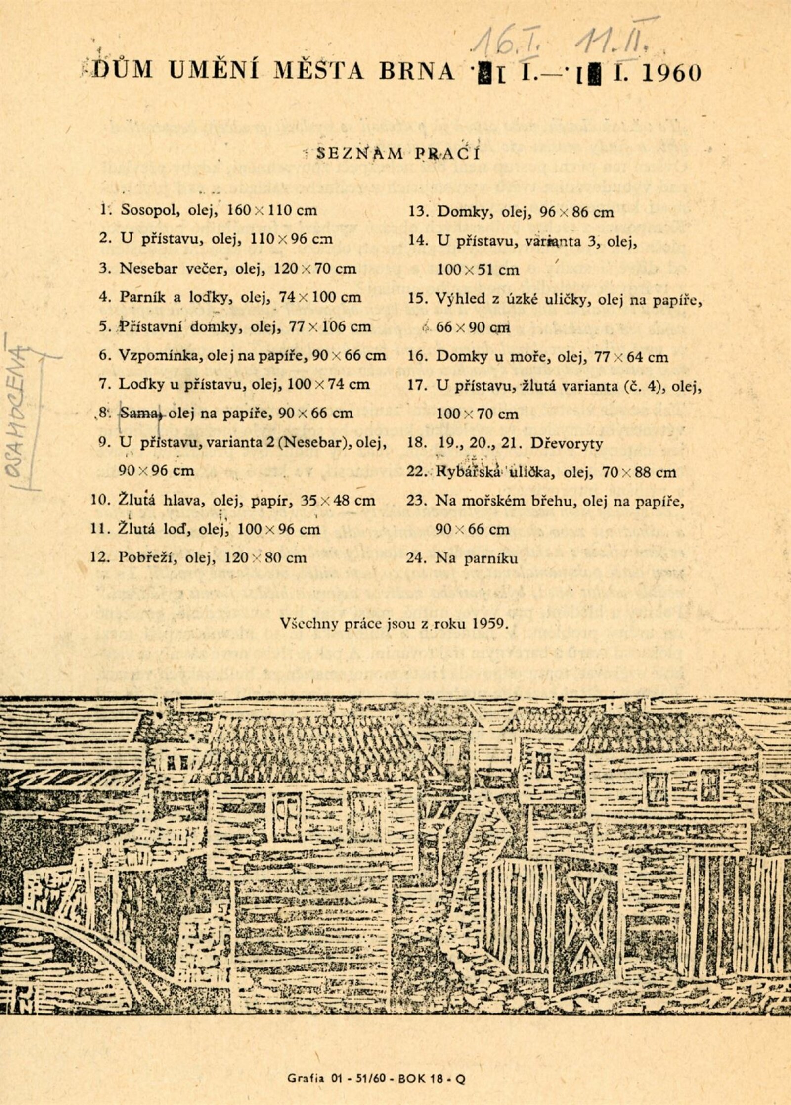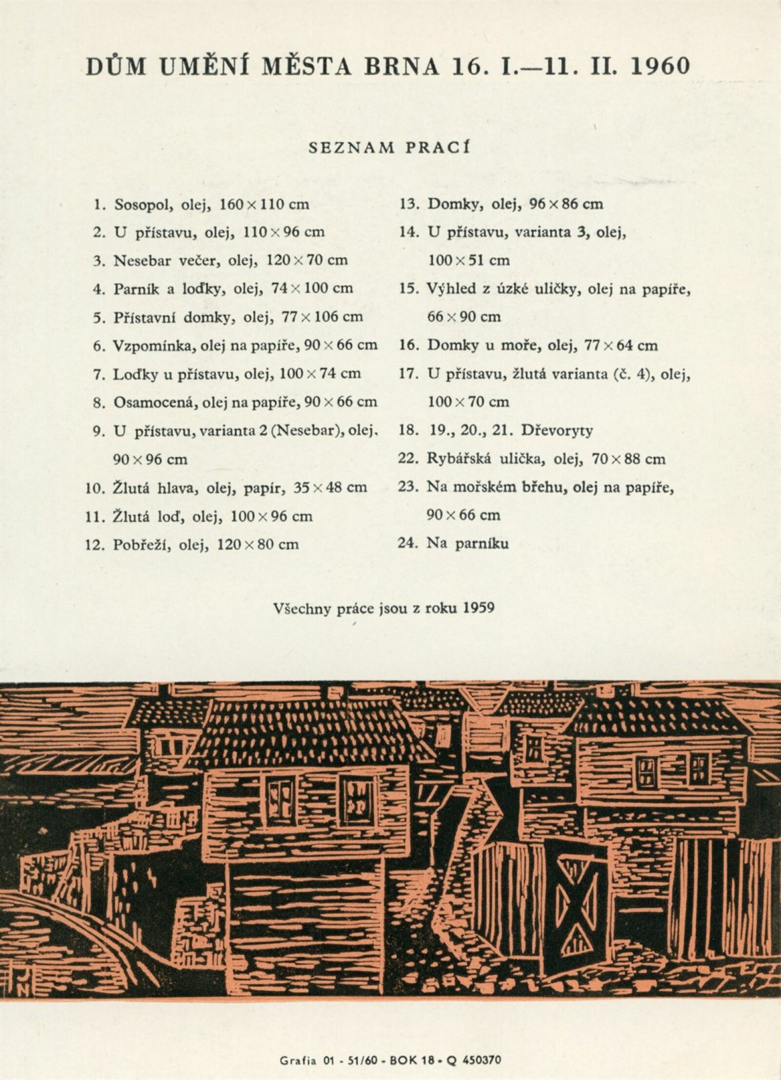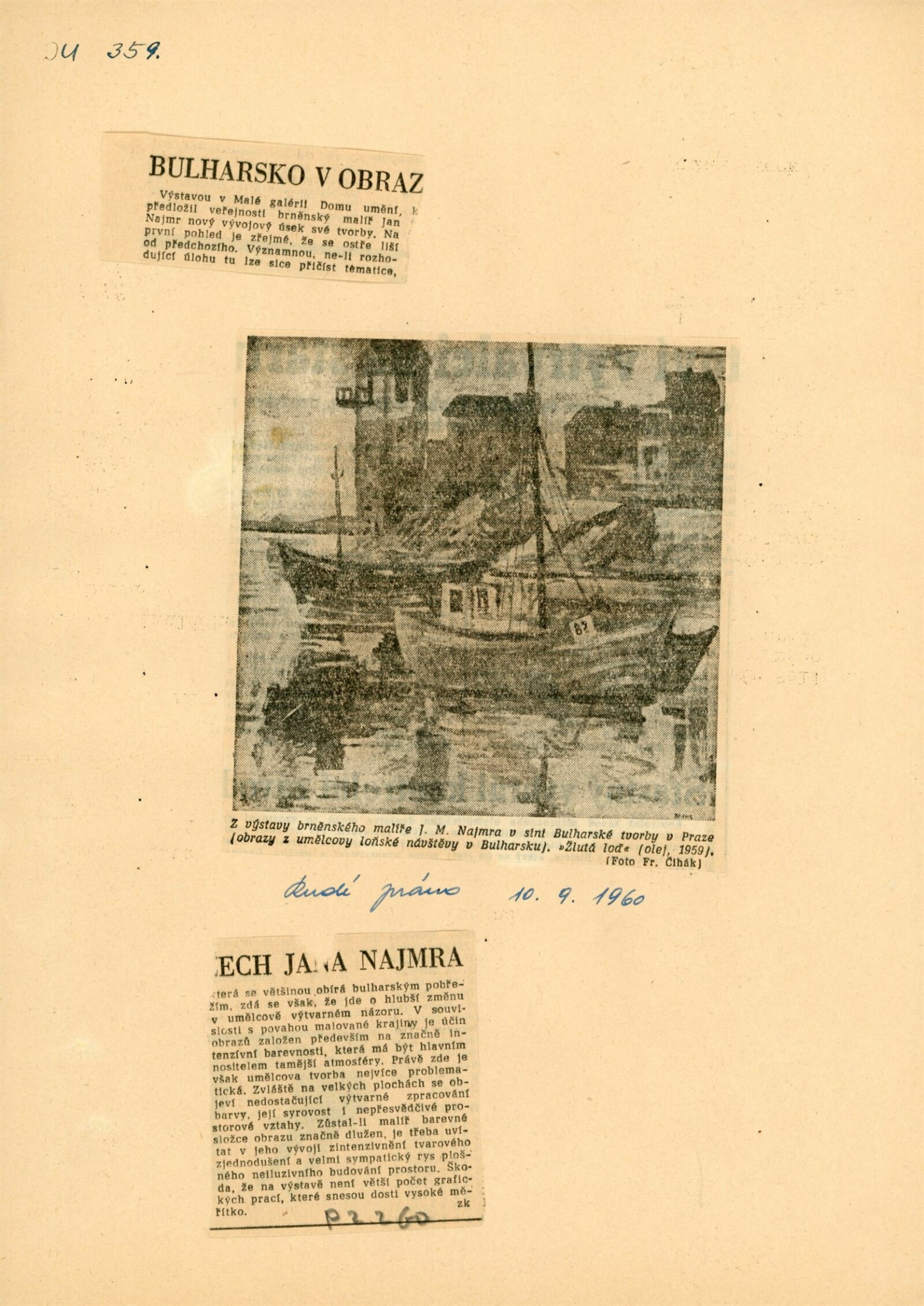 Jan M. Najmr. Variace na bulharské motivy: Dům umění města Brna, Malá galerie, 16. 1. – 11. 2. 1960 / Text: Jiřina Medková-Losmanová. – Brno: DUmB, 1960. – skládačka, 6 s., obr., DU 359. – MG; MMB