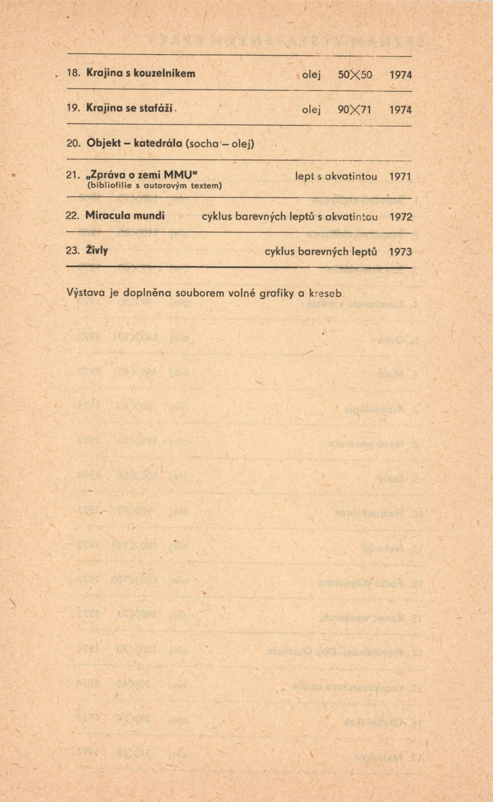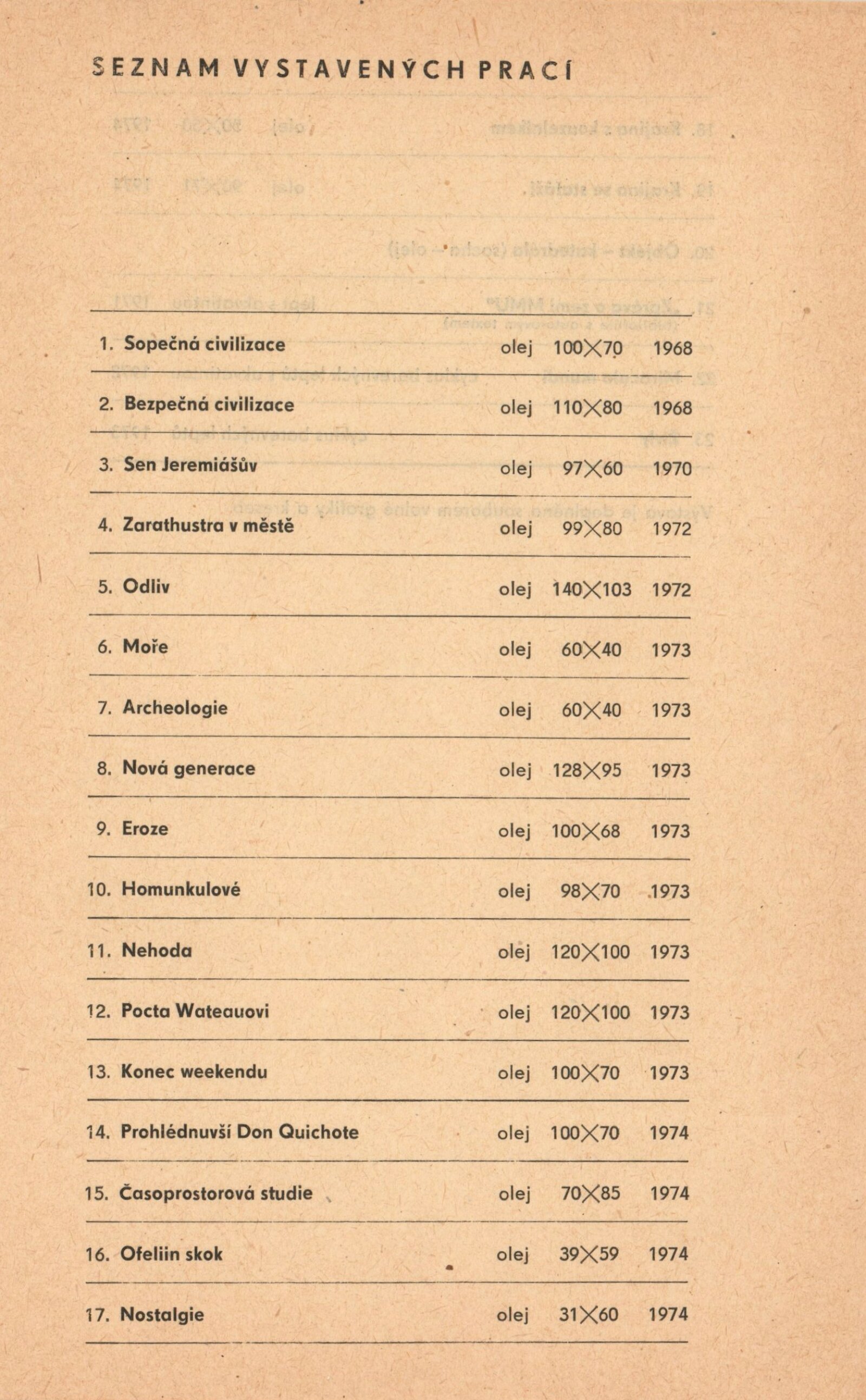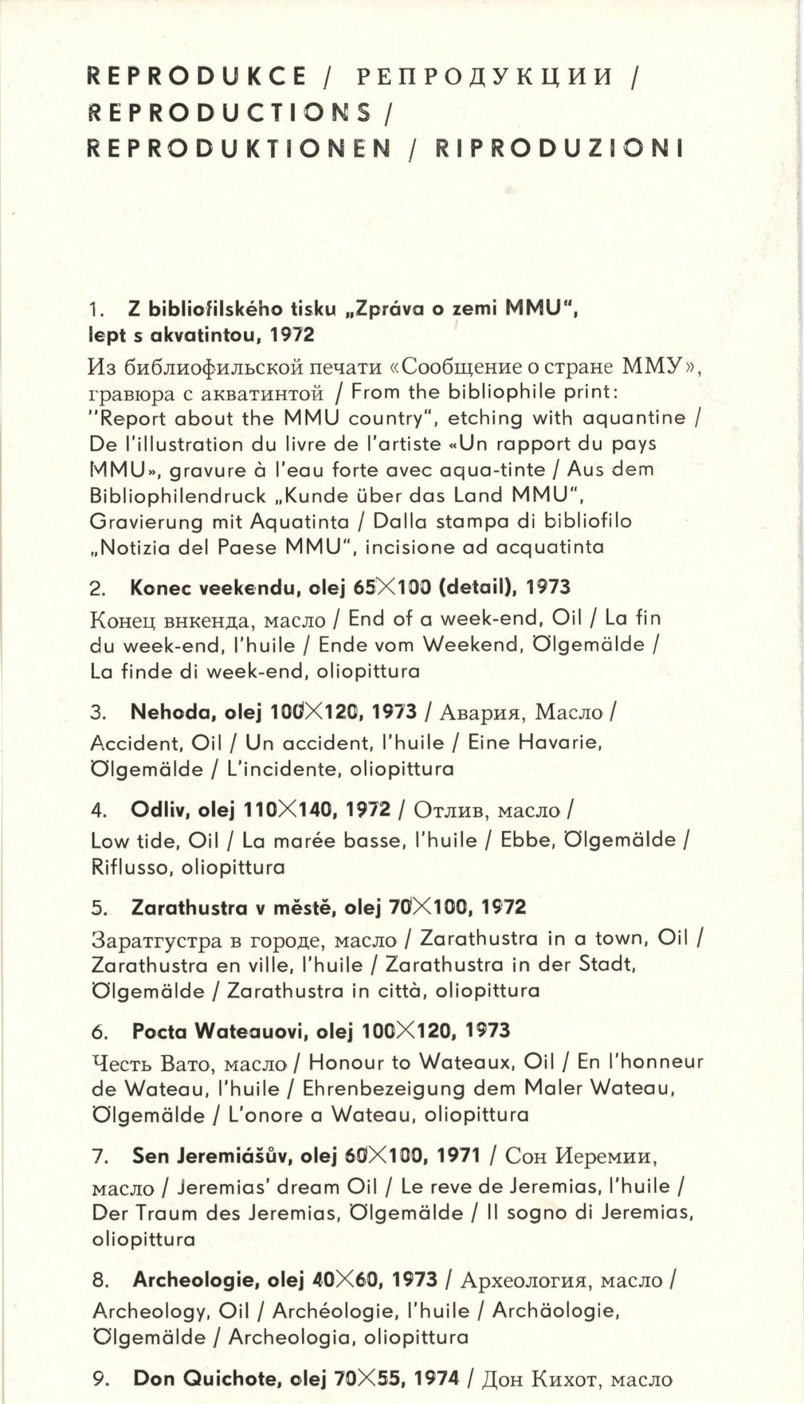 pozvánka, katalog se seznamem děl, recenze v tisku
