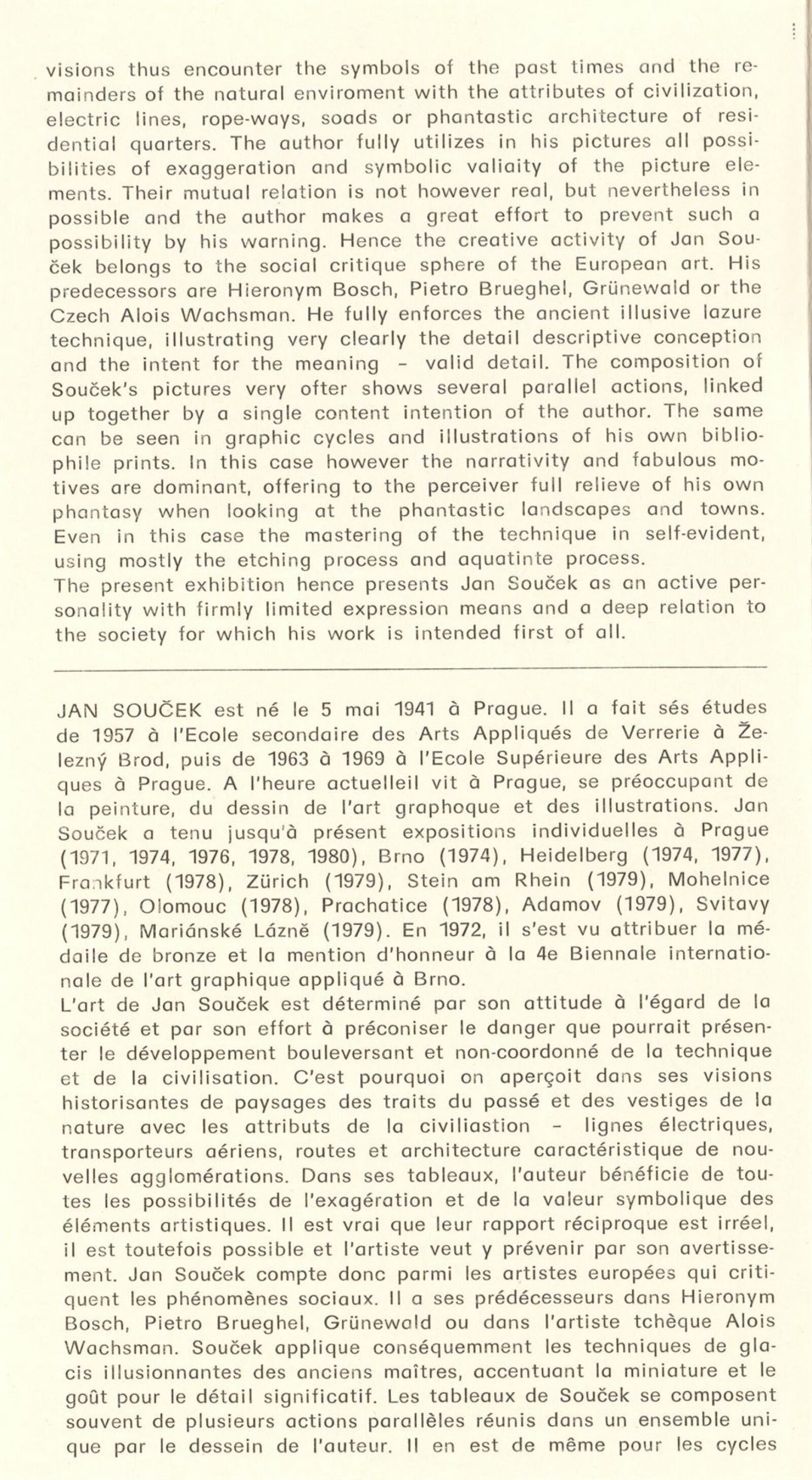 katalog, fotografie díla, recenze v tisku, pozvánka na výstavu Jana Součka v Galerii FRONTA (1980)