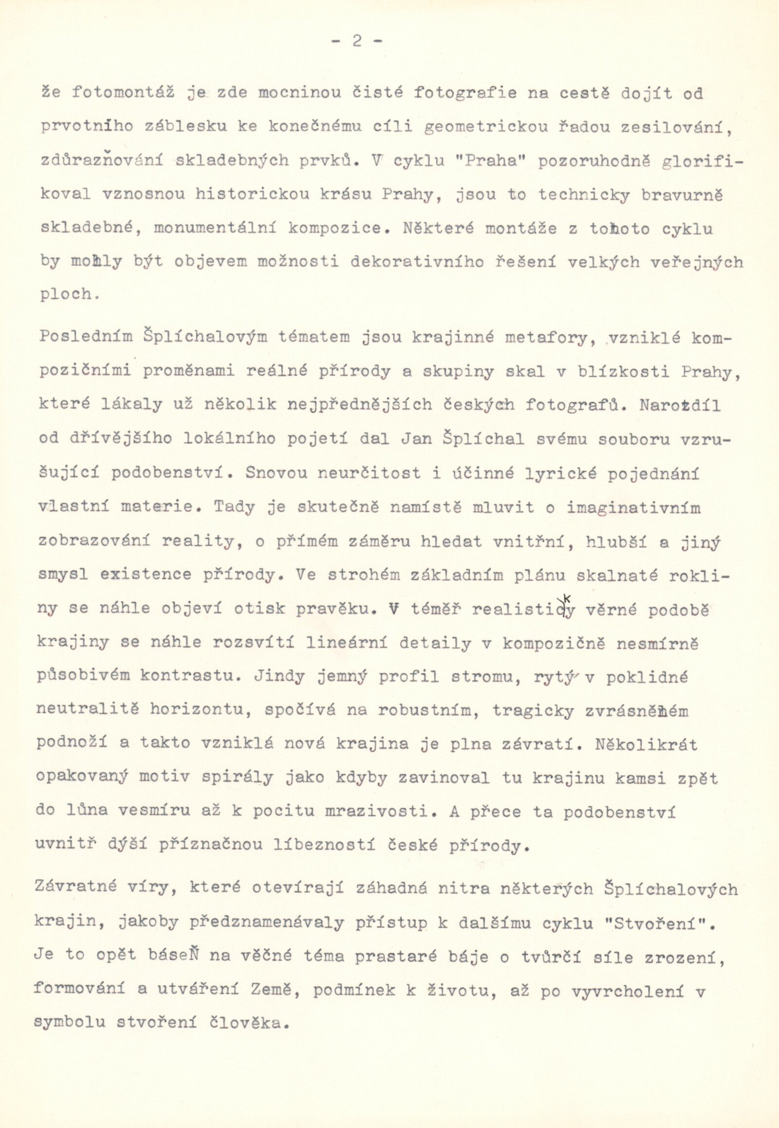 Jan Šplíchal. Fotografie: Dům umění / Dům pánů z Kunštátu, 175. výstava Kabinetu fotografie Jaromíra Funka, 22. 2. – 23. 3. 1980 / Text: Petr Tausk. – Brno: DUmB, 1980. – 9 s., obr., životní data, výstavy, DPK 732. – MZK; MG