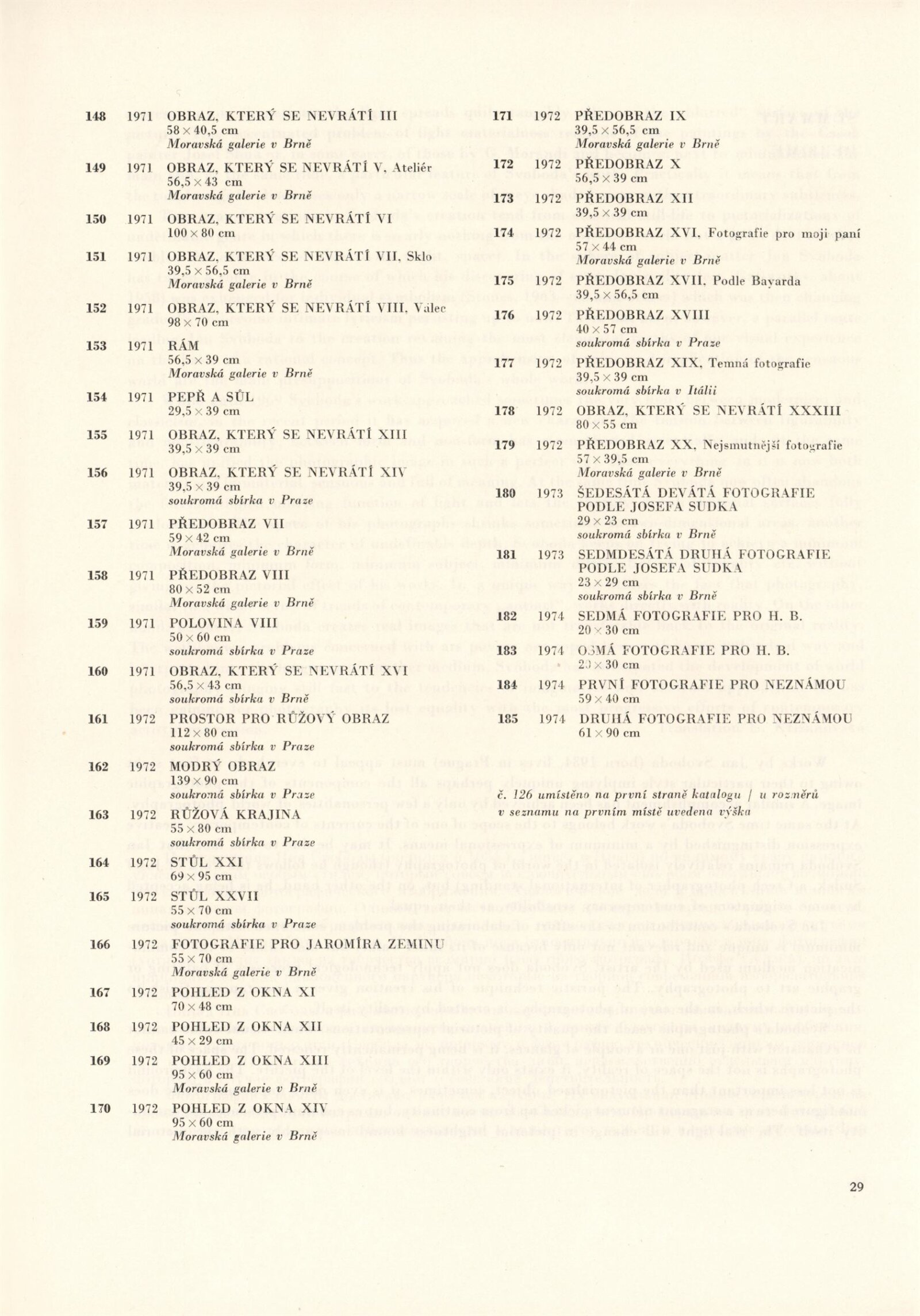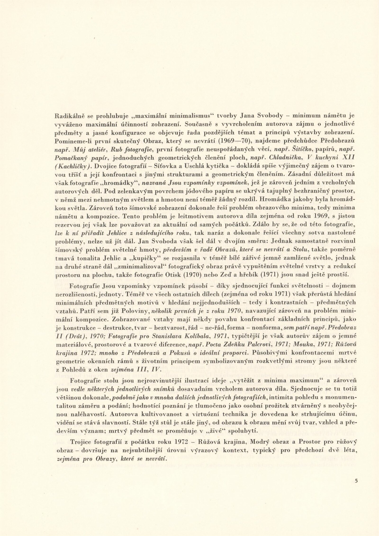 Jan Svoboda. Fotografie: Dům umění / Dům pánů z Kunštátu, 16. 2. – 16. 3. 1975 / Text: Antonín Dufek. – Brno: Moravská galerie, 1975. – 32 s., obr., životní data, bibliografie, DPK 588. – MG
