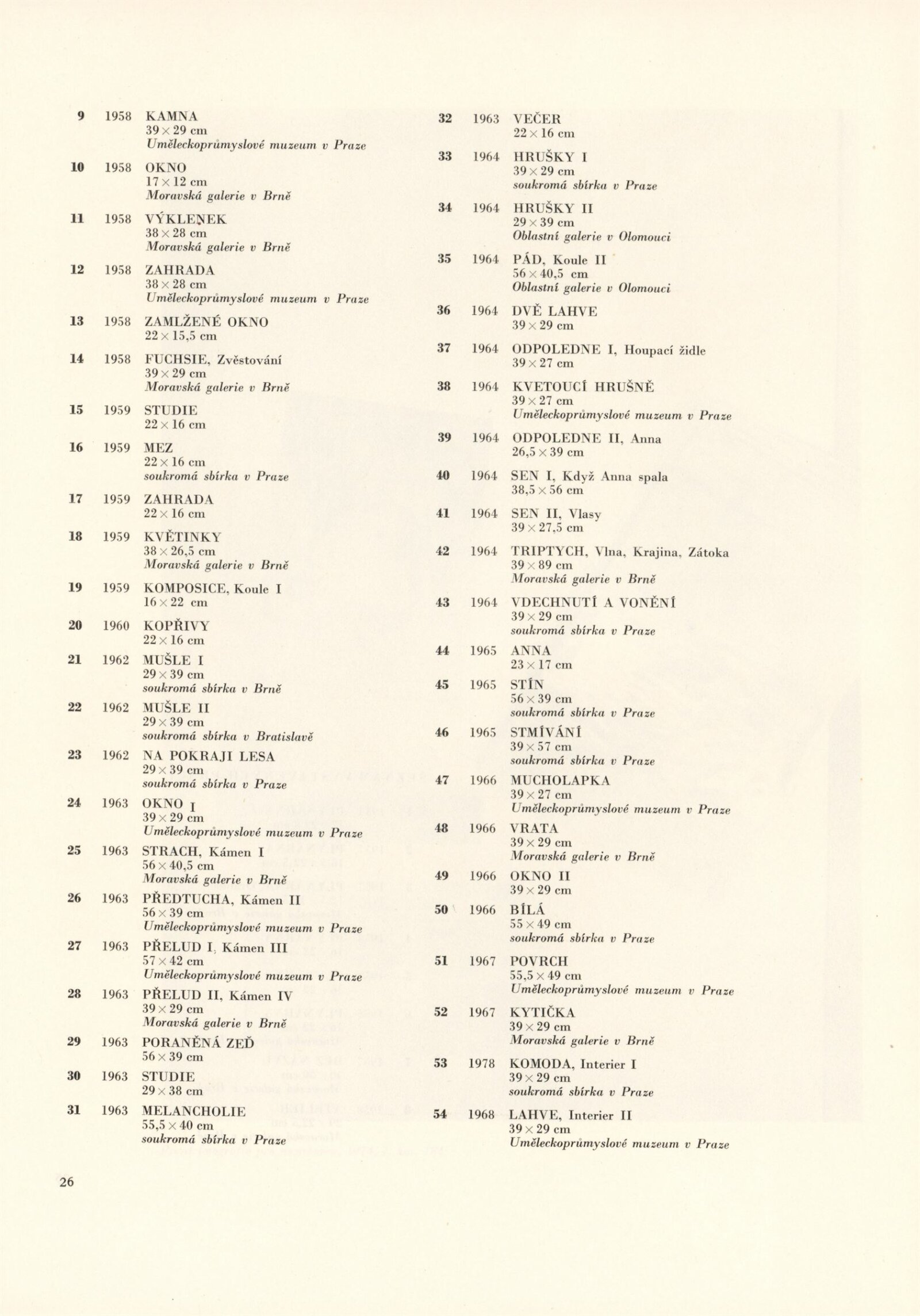 pozvánka, katalog, provozní korespondence, hlášení o vernisáži, text pro tisk, smlouva k výstavě, žádost a schválení tisku plakátu, žádost o povolení výstavy, recenze v tisku