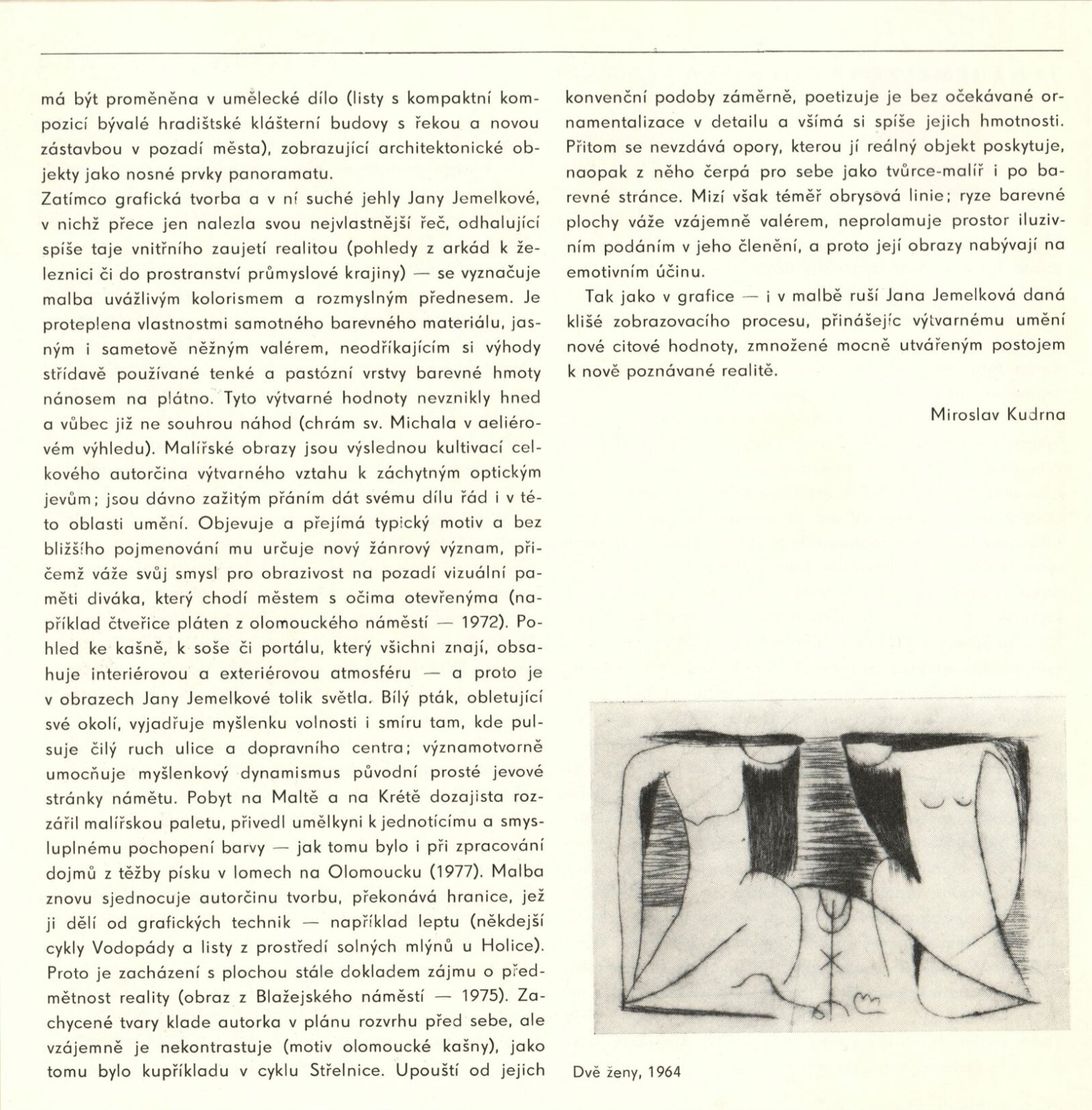 Jana Jemelková. Grafika, obrazy: Kabinet grafiky, 181. výstava, Dům pánů z Kunštátu 14. 10 – 4. 11. 1979 / Text Miroslav Kudrna. - Brno: DUmB, - 9 s., obr. Životní data, malířské a grafické cykly DPK 719; MG; MMB