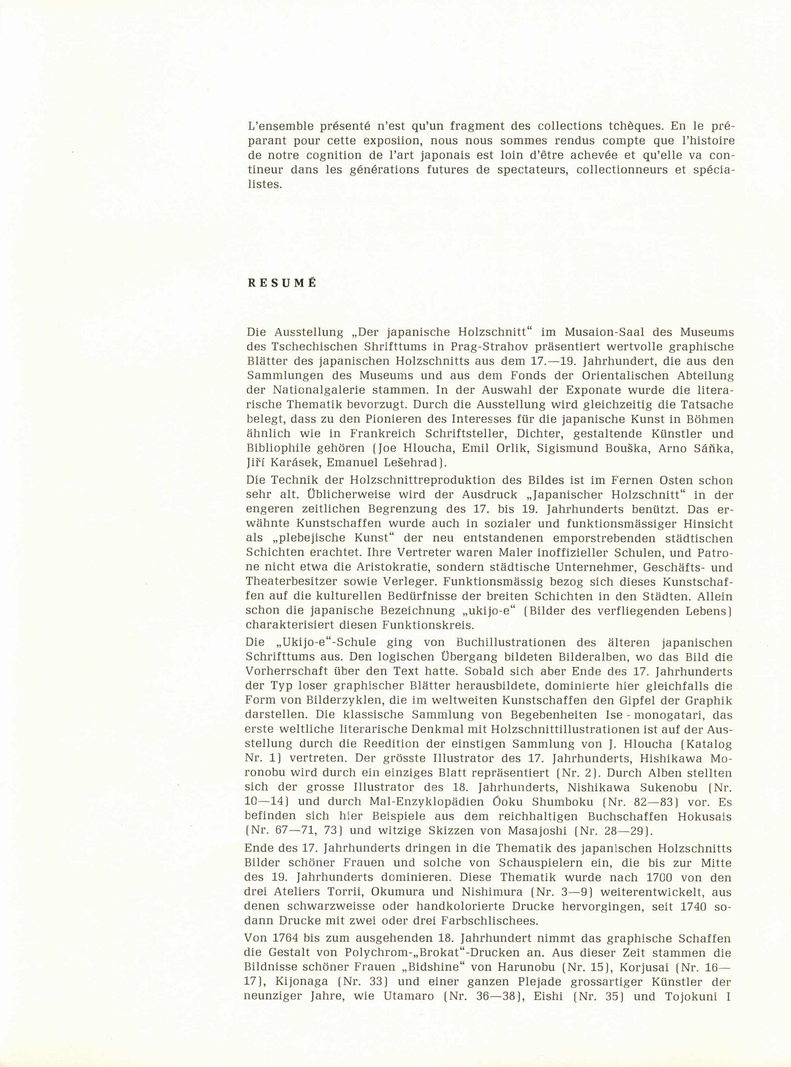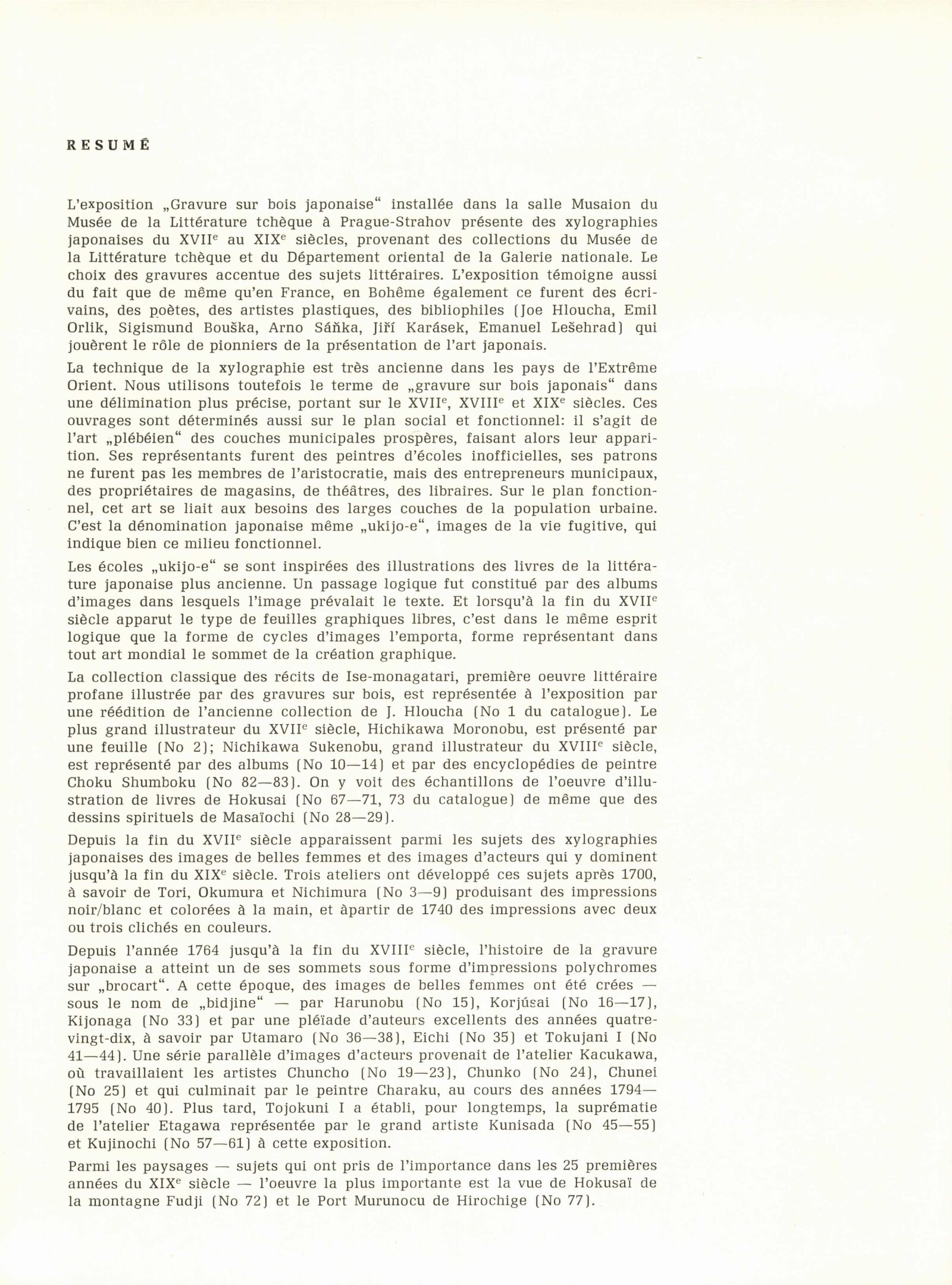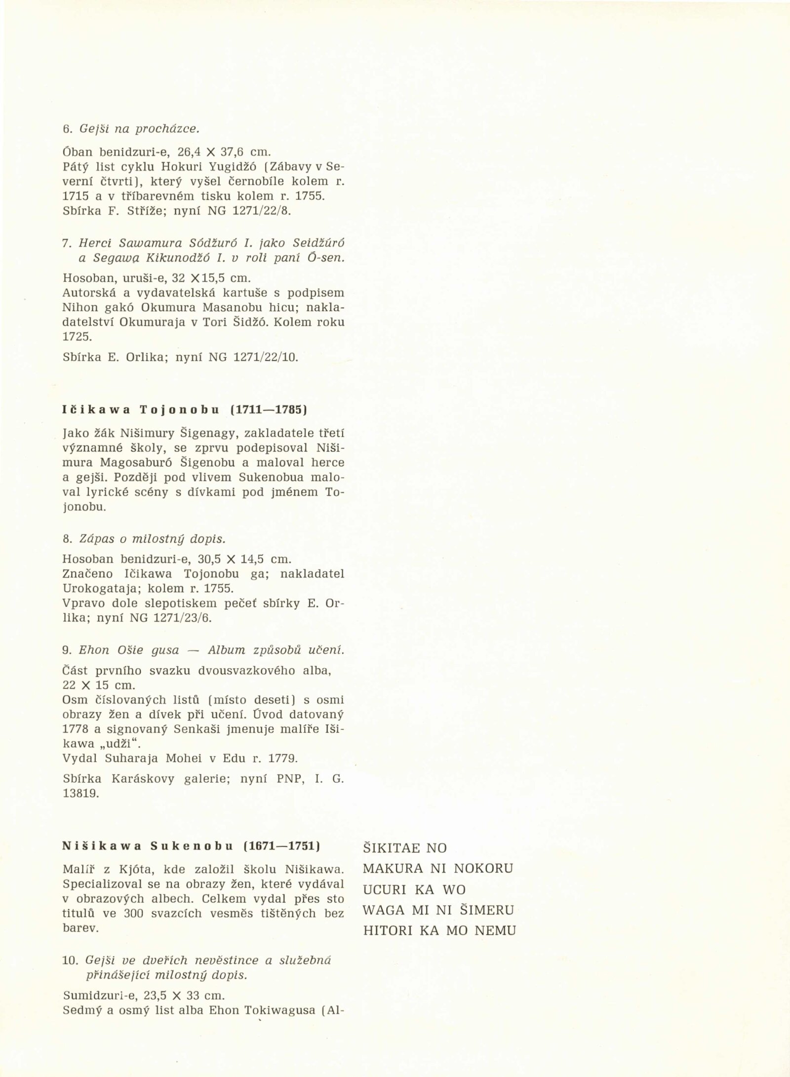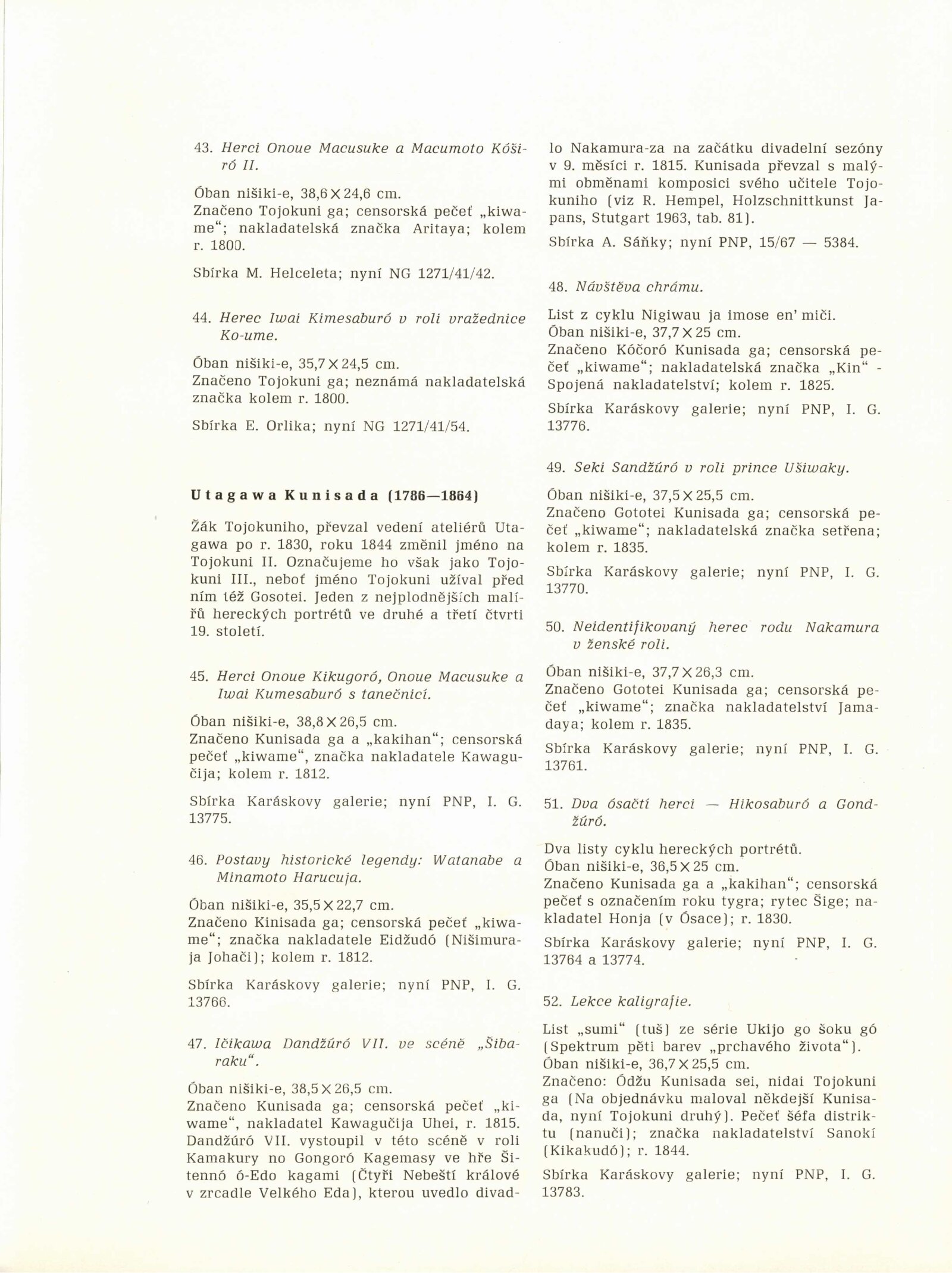 Japonské dřevořezy: Dům umění / Dům pánů z Kunštátu, 140. výstava Kabinetu grafiky, 4. 1. – 3. 3. 1974 / Převzatý katalog. Japonské dřevořezy: Památník národního písemnictví, Výstavní síň Musaion, Praha, podzim 1973 / Texty: Lubor Hájek, Helena Krejčová. – Praha: Památník národního písemnictví, 1973. – 60 s., obr., odborné popisy, DPK 559