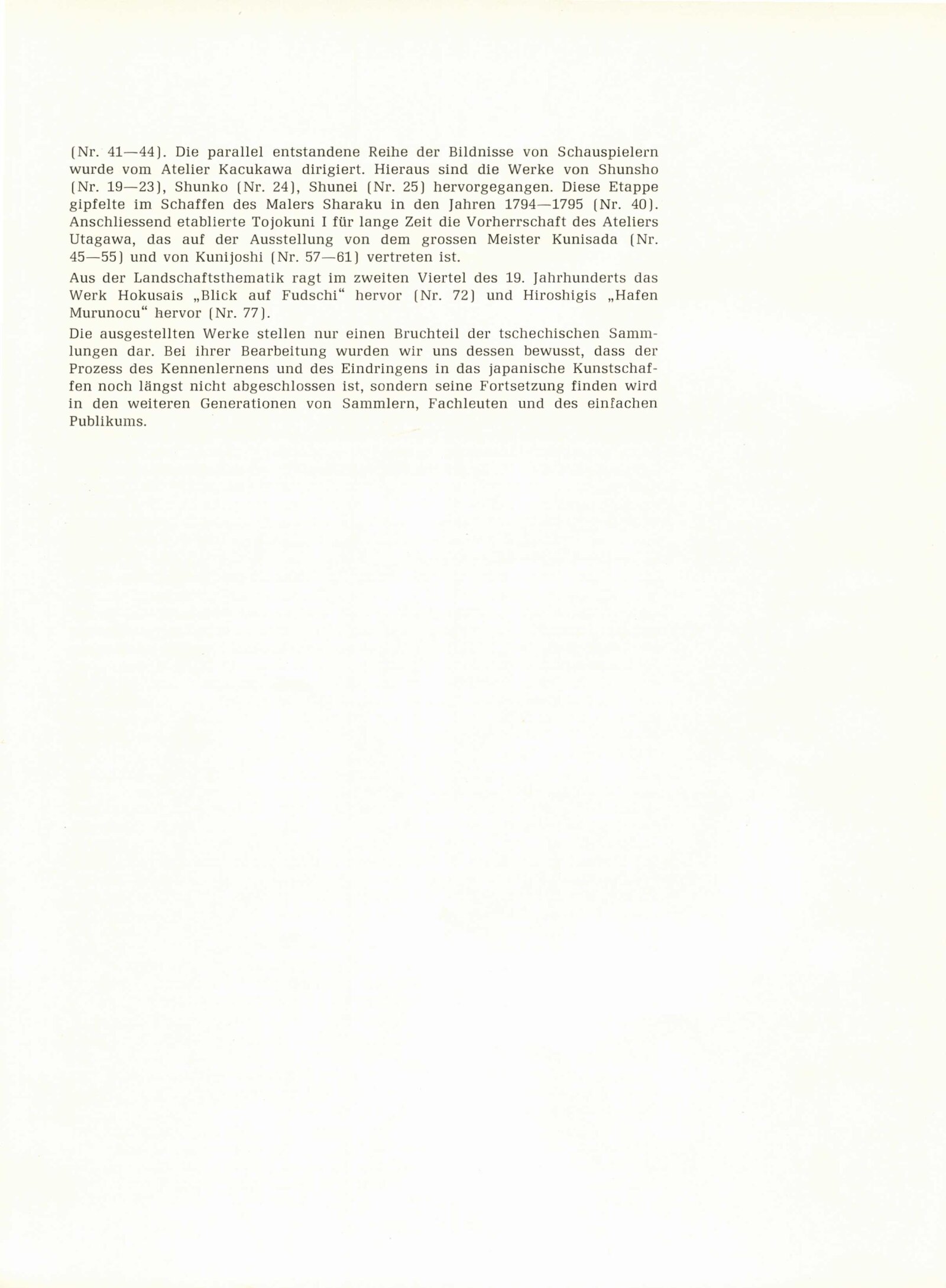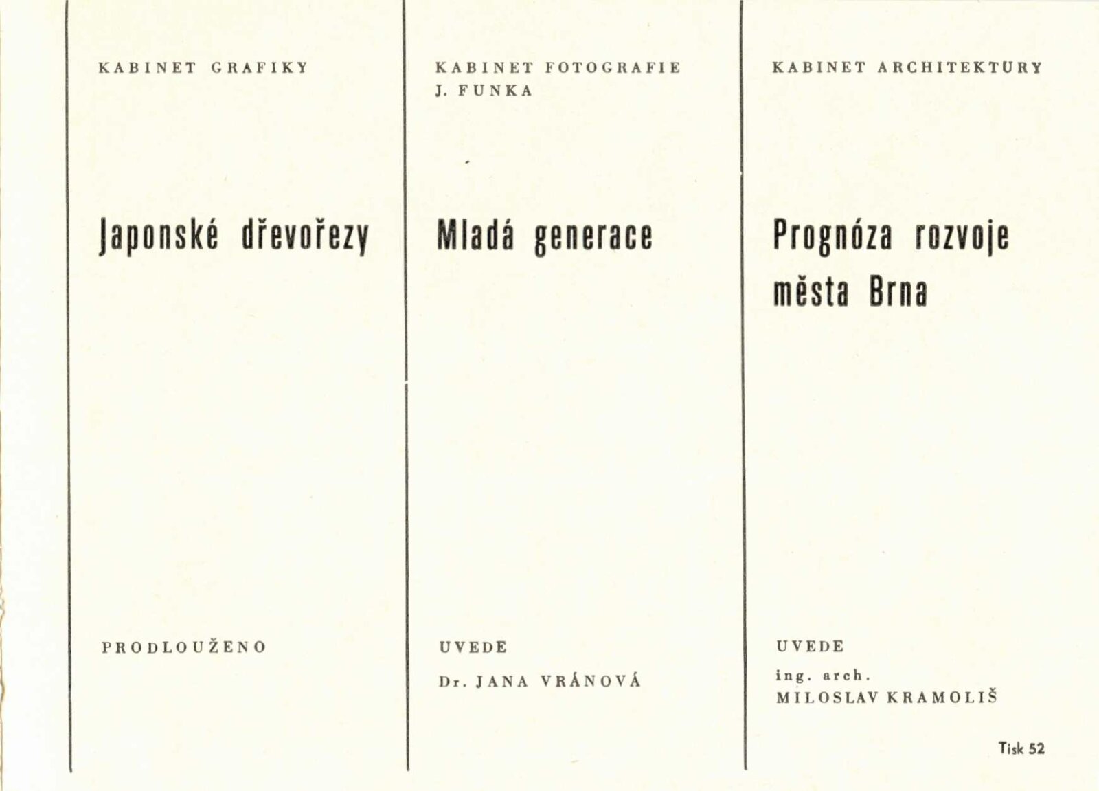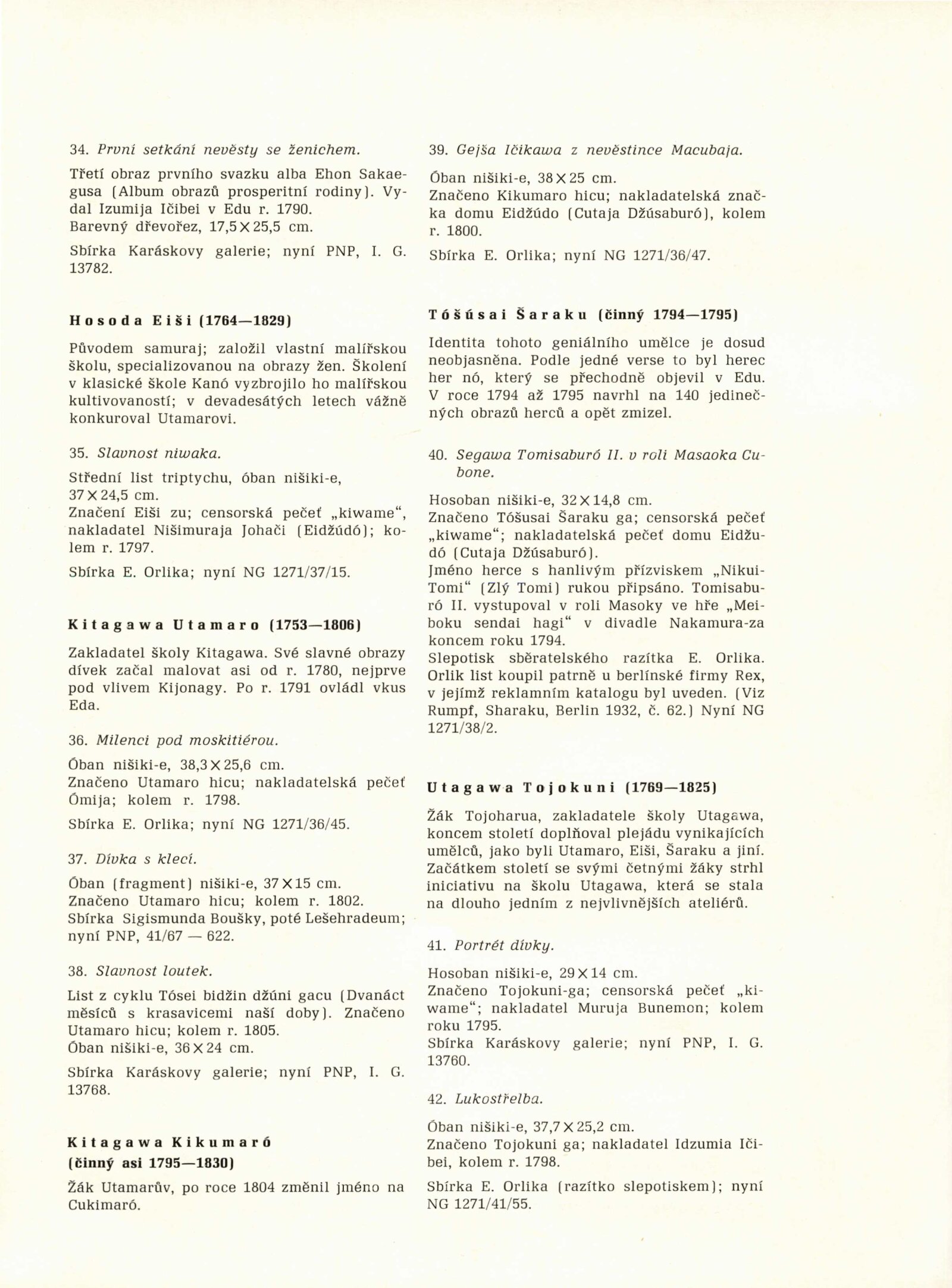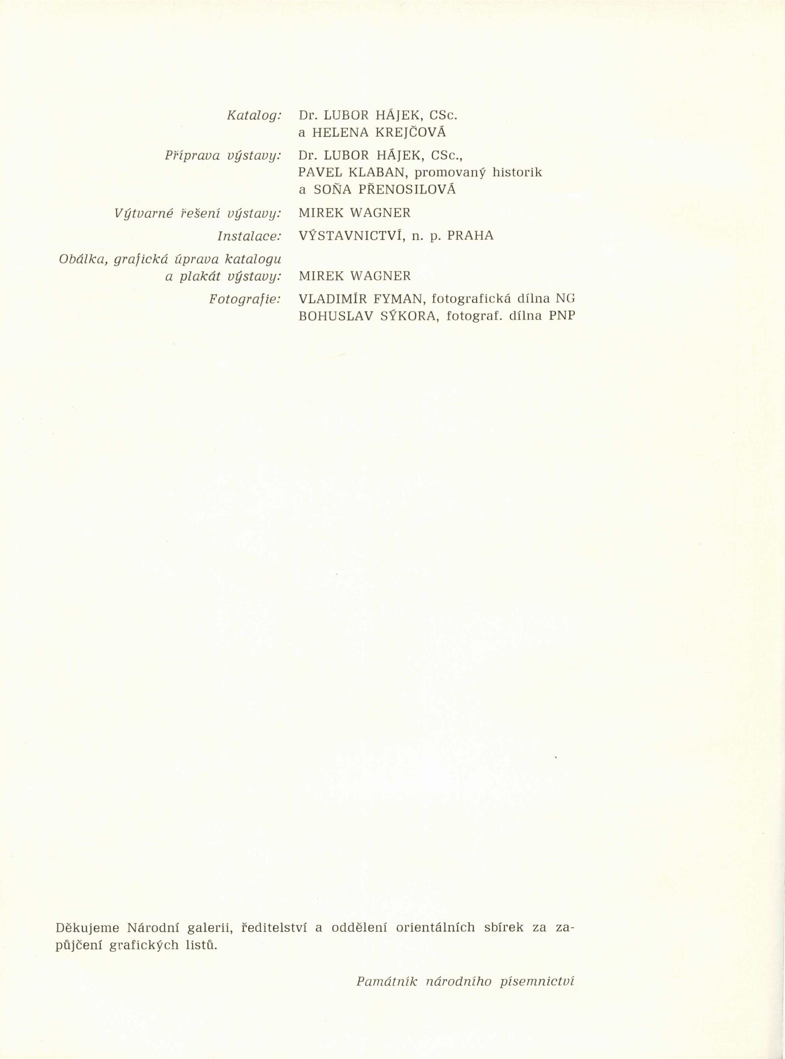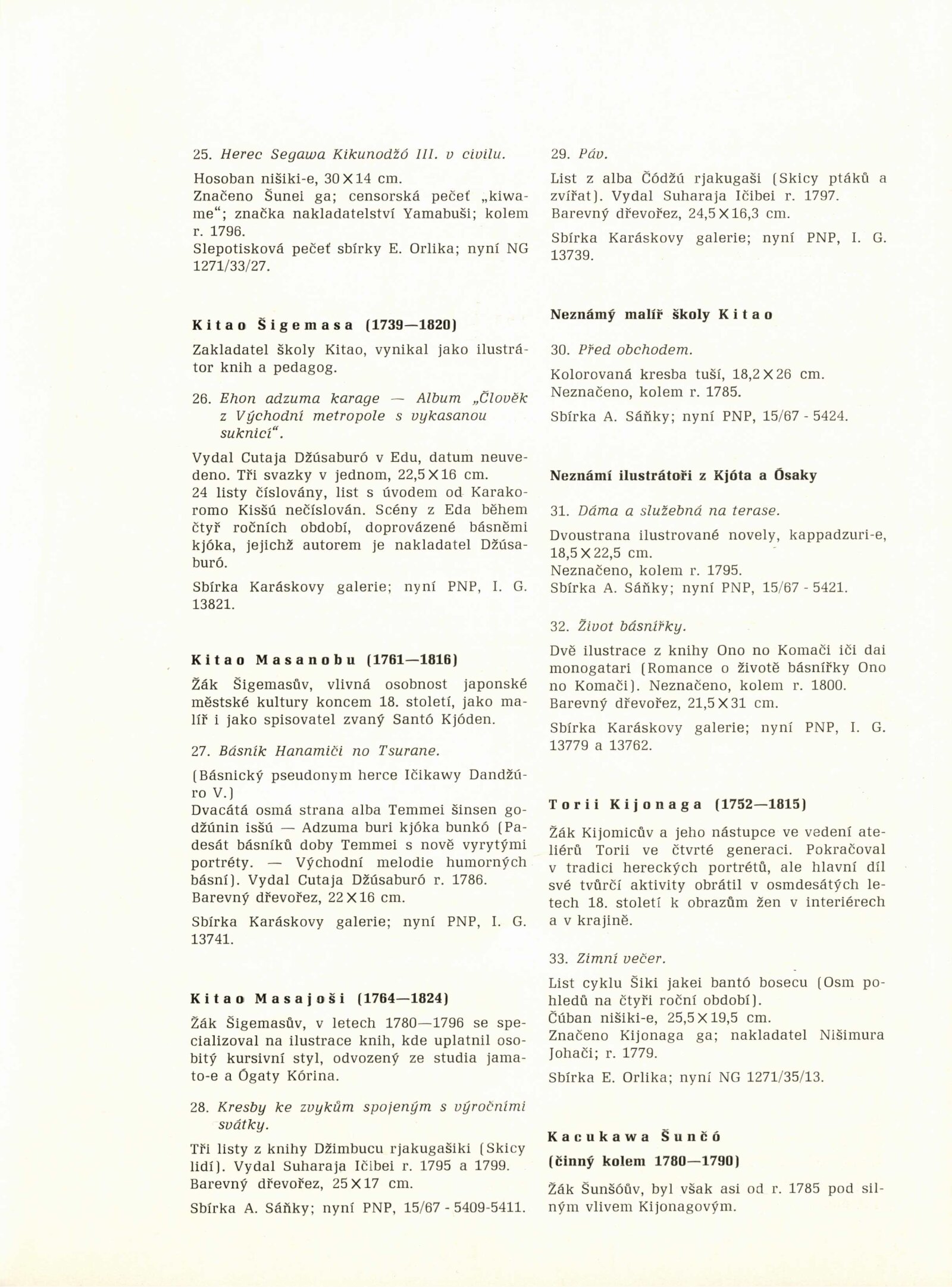 Japonské dřevořezy: Dům umění / Dům pánů z Kunštátu, 140. výstava Kabinetu grafiky, 4. 1. – 3. 3. 1974 / Převzatý katalog. Japonské dřevořezy: Památník národního písemnictví, Výstavní síň Musaion, Praha, podzim 1973 / Texty: Lubor Hájek, Helena Krejčová. – Praha: Památník národního písemnictví, 1973. – 60 s., obr., odborné popisy, DPK 559