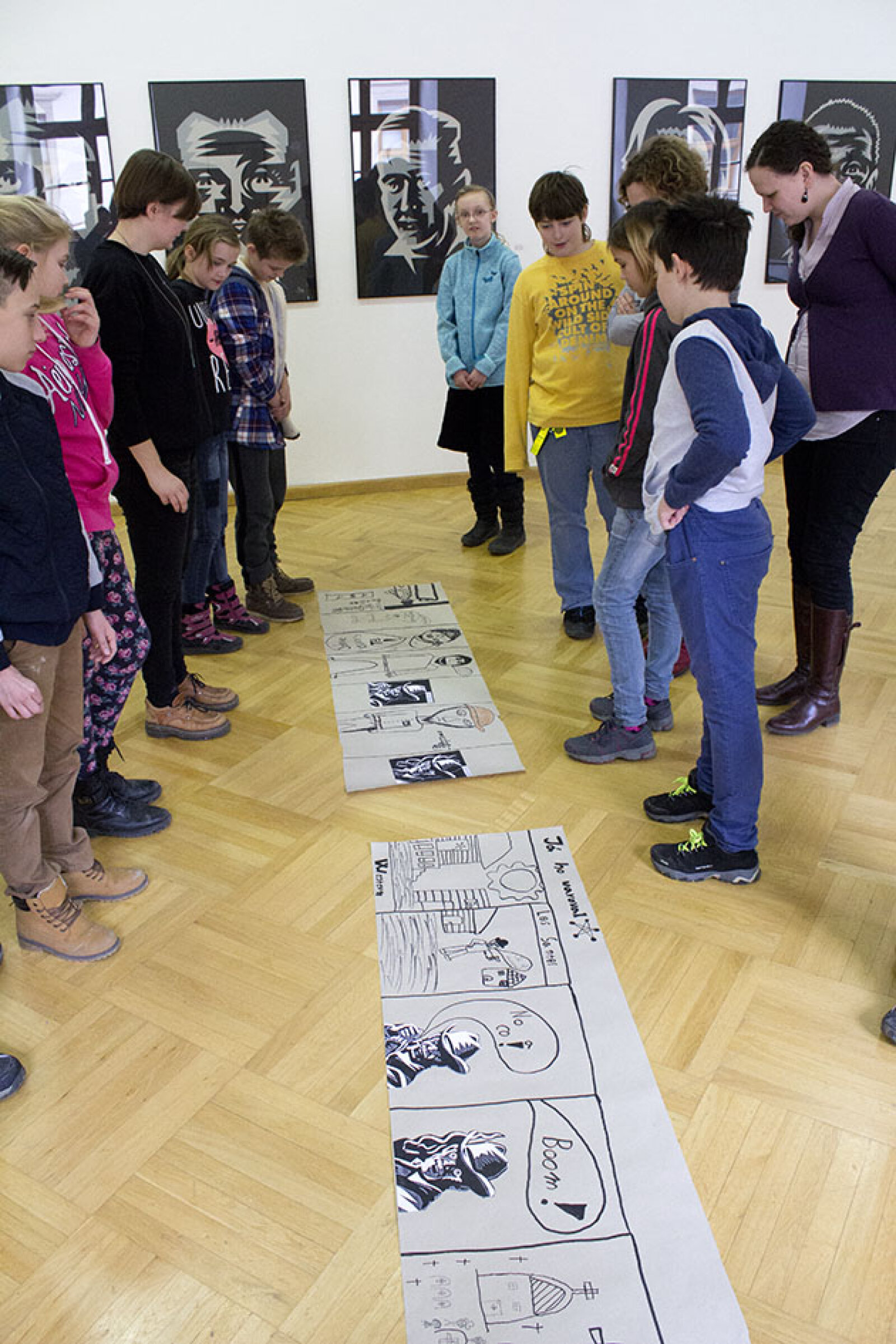 Na velký pruh balicího papíru budeme společně doplňovat chybějící fragmenty naznačeného komiksového příběhu.